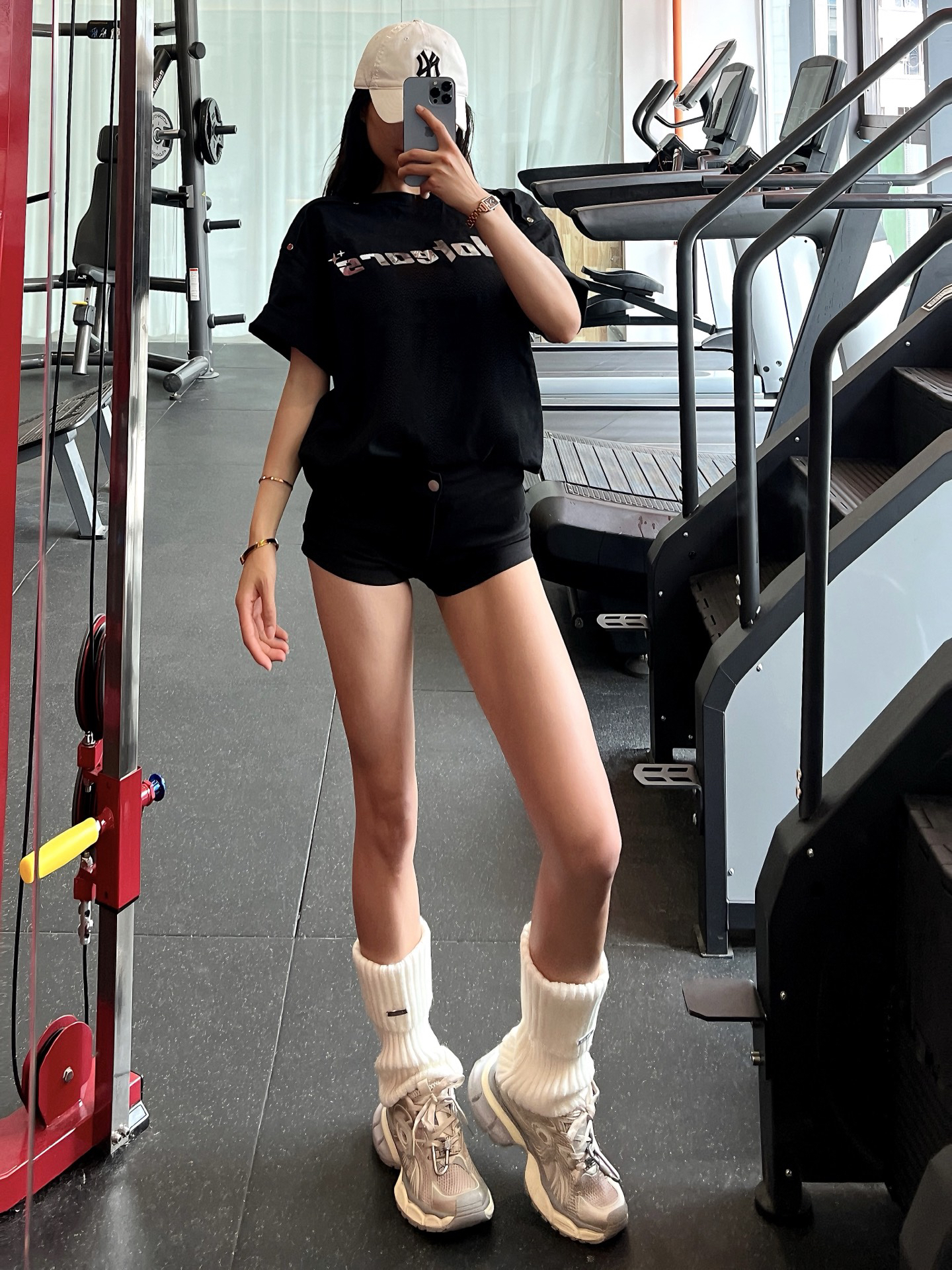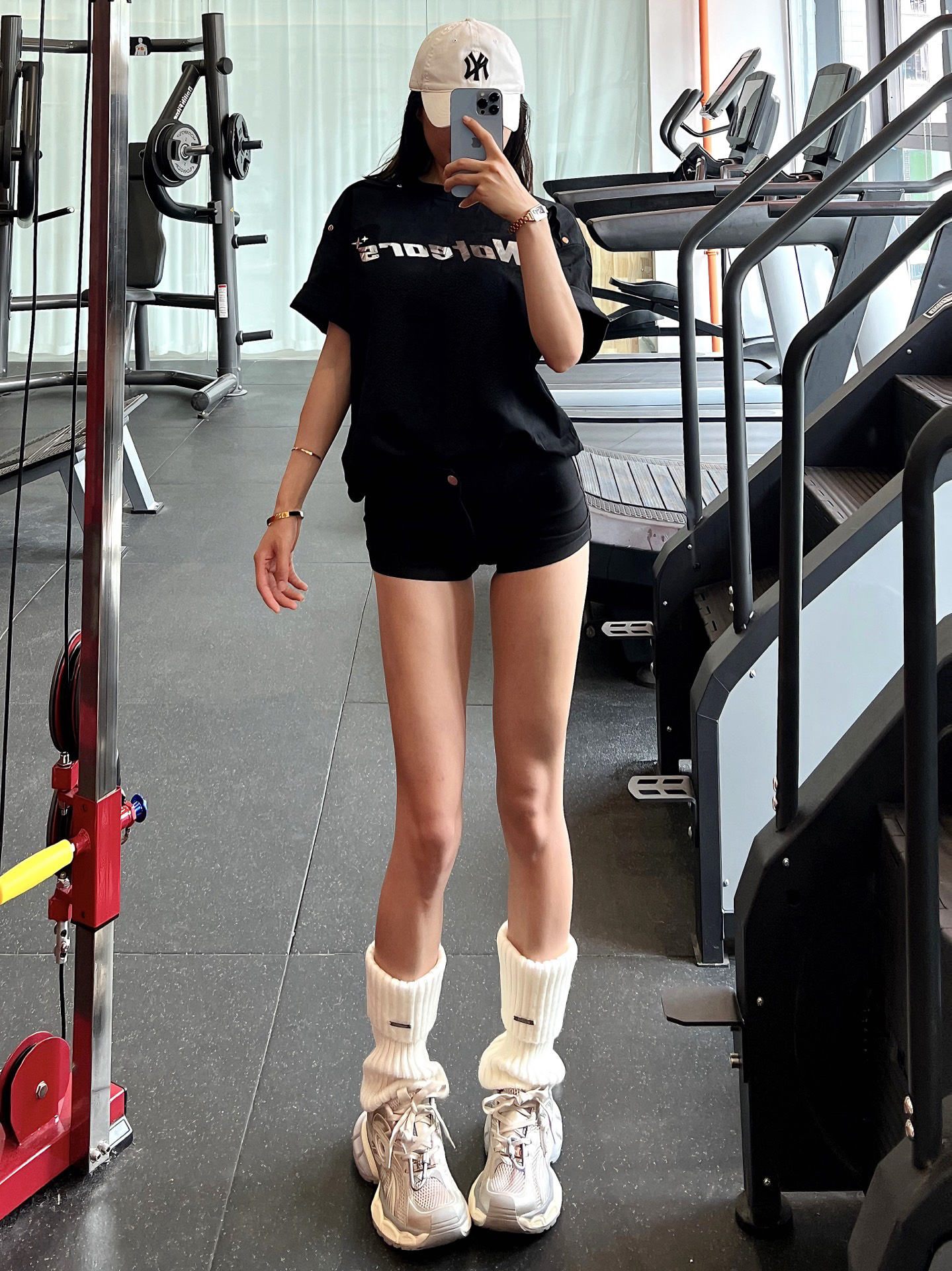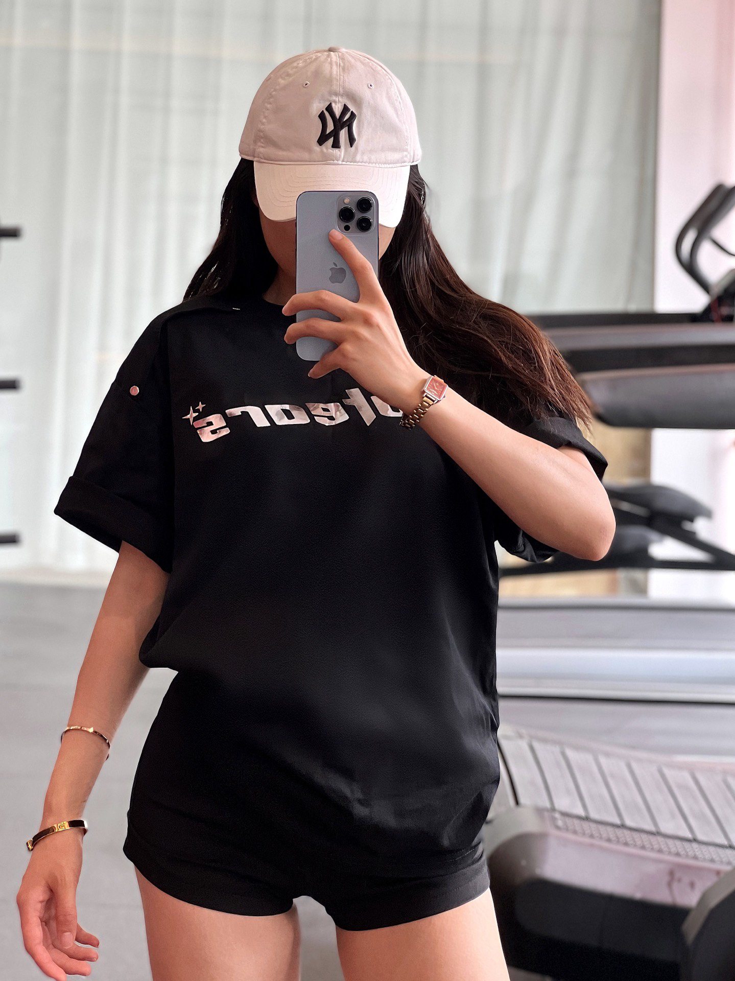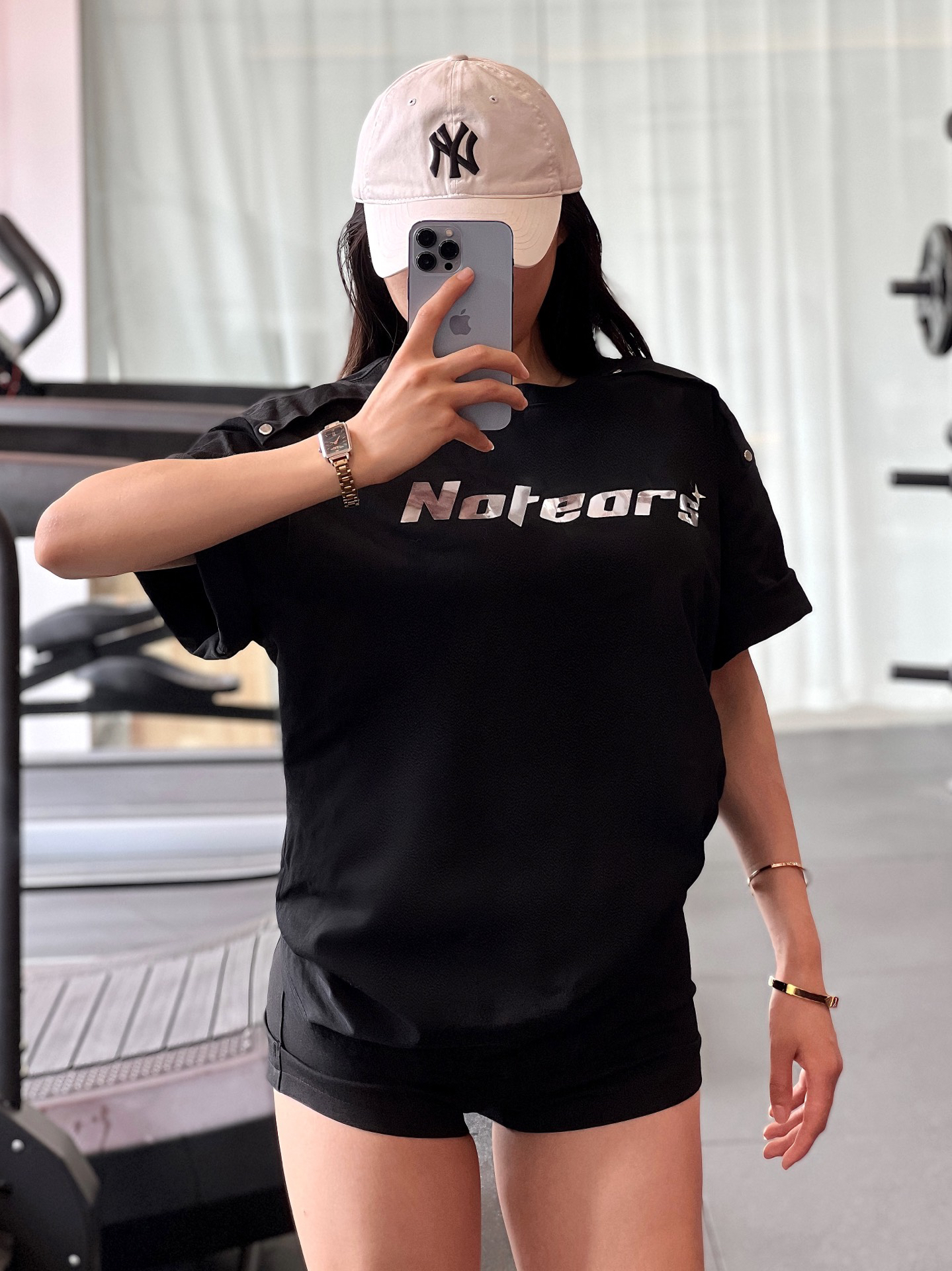 来啦~小宝们 是以前133斤啦! 👕是 #No Tears 家的 尺码推荐➡️163 88➡️L码(上身宽松) 纯黑➕亮片银色大logo字母设计,尊嘟很好看!! 上身很🆒~ 版型宽松,因为夏天到啦,喜欢下半身失踪穿搭的宝宝们,可以选大一码哦,插肩设计不会显胖 面料纯棉,柔软舒适透气,夏天出汗不闷 男女同款的一件大T,设计感独特,拿来当情侣装没毛病