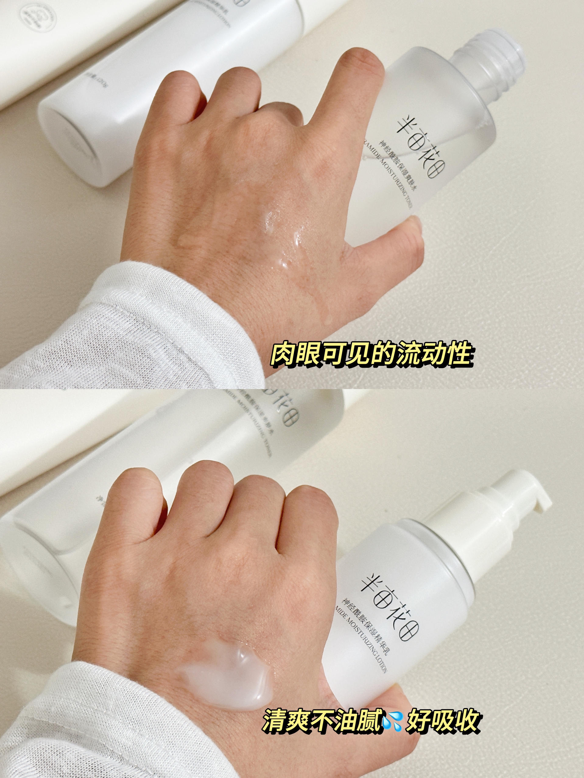 友友们! 该说不说 ..国货真的首选! 质地是水润清爽挂的 轻薄不厚重 💦吸收的也快 怪不得..妹妹说这肤感满分💯 经常夜间护肤会拿水湿敷 直接给皮肤喝饱水 水当当的~ 另外乳液涂厚涂 一点没有黏腻感.爱辽