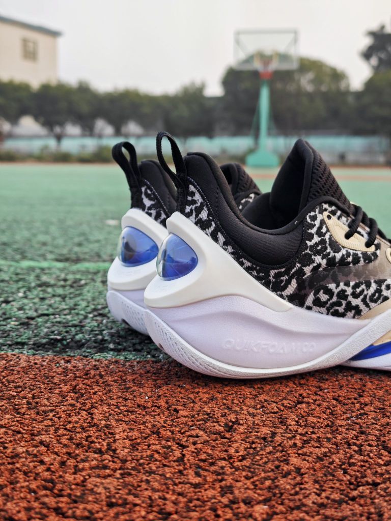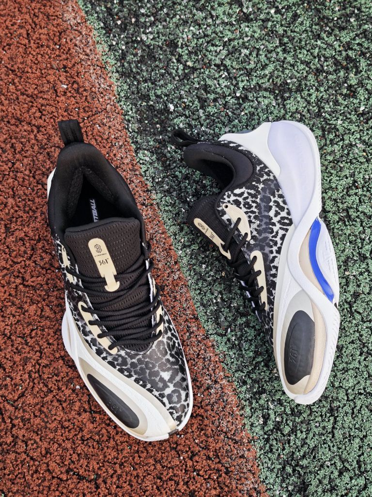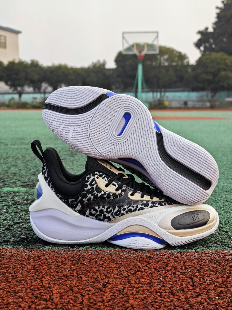 361°狂飙篮球鞋,豹纹配色,狂飙之前3610丁威迪也有上脚过 定位后卫鞋,但这个重量有点超重了,实测43码460克 中底Q弹超科技,ARCHCOLK足弓锁定,搭配橡胶大底 后跟大眼睛tpu很帅气,豹纹配色骚气,圆形鞋带不太行 颜值拉满,二张不到的价格拿下,打打水泥地养身球还是挺不错的