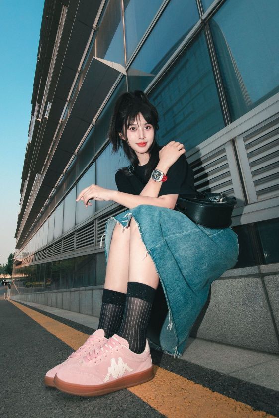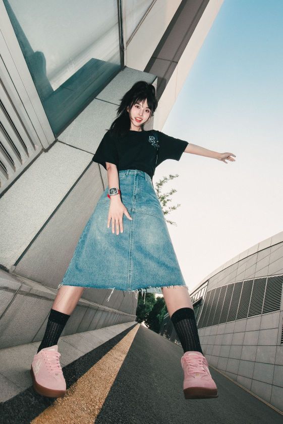 攒下出门的小幸福 用穿搭定格时尚啦 - 夏日标配的美式T恤 潮流设计感印花+半身牛仔裙 简单搭配双粉色德训鞋增加街潮感 干干净净的就很出圈~ - 超吸睛的撞色腕表 酒桶造型的设计很有个性 加上镂空的表盘 立体层次感直接拉满啦! - 手表:格雅 上衣:GDRX 鞋子:Kappa