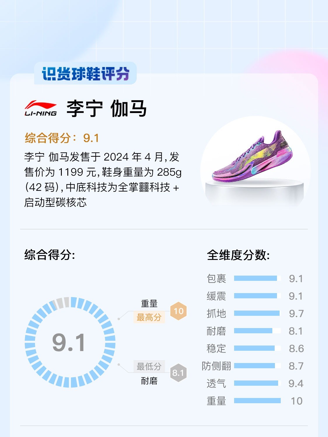 【识货球鞋评分-李宁 伽马】,由用户 识货球鞋君 分享,来自上海。这是一篇来自识货社区的真实用户分享笔记。