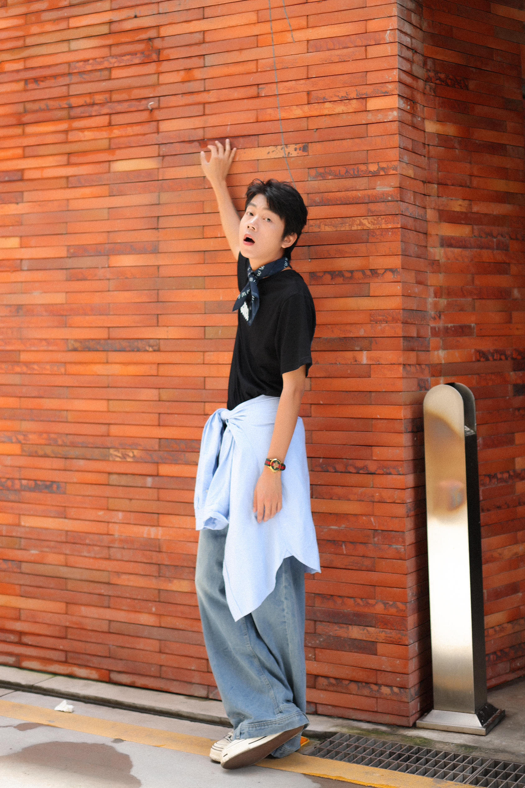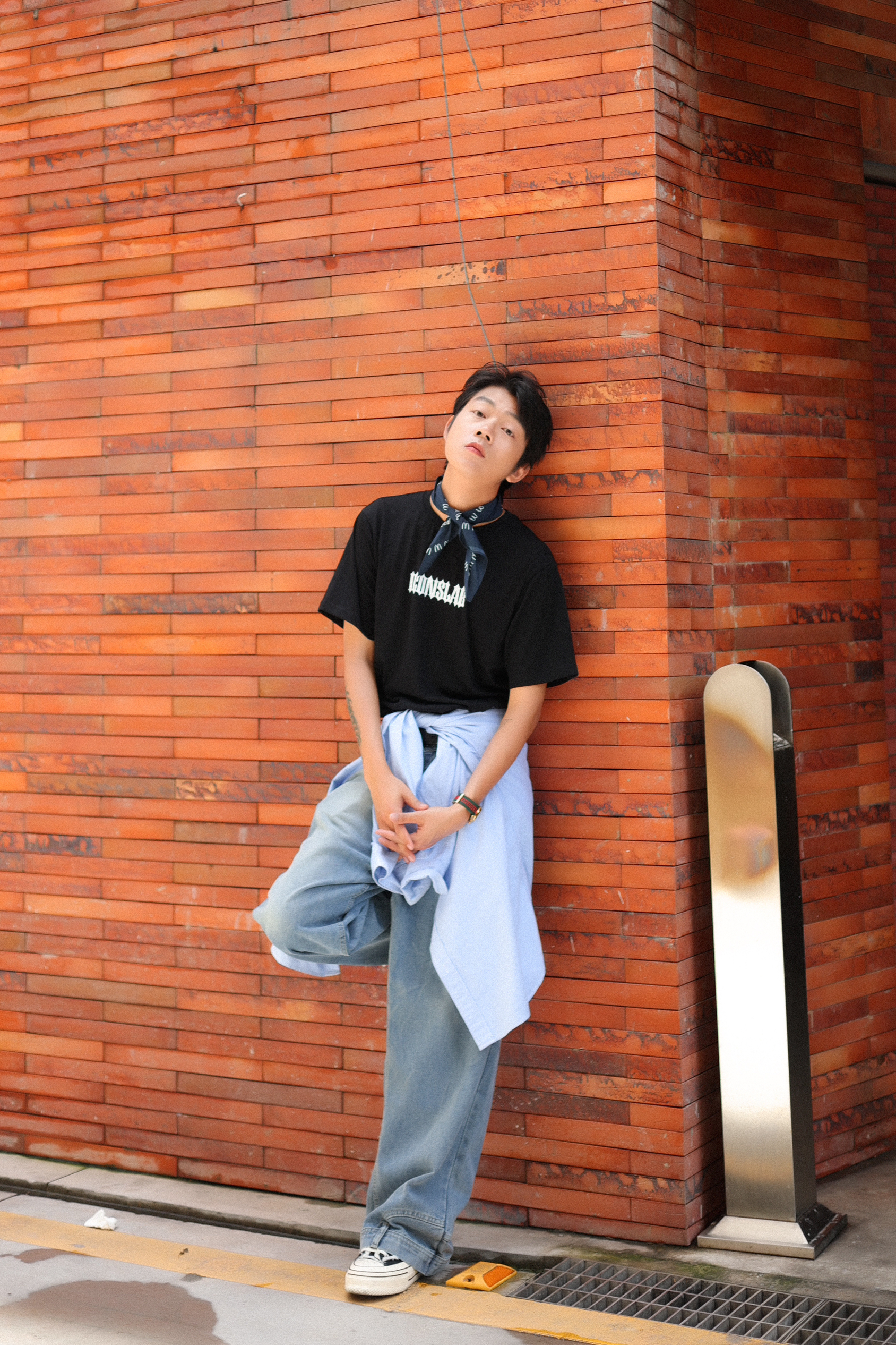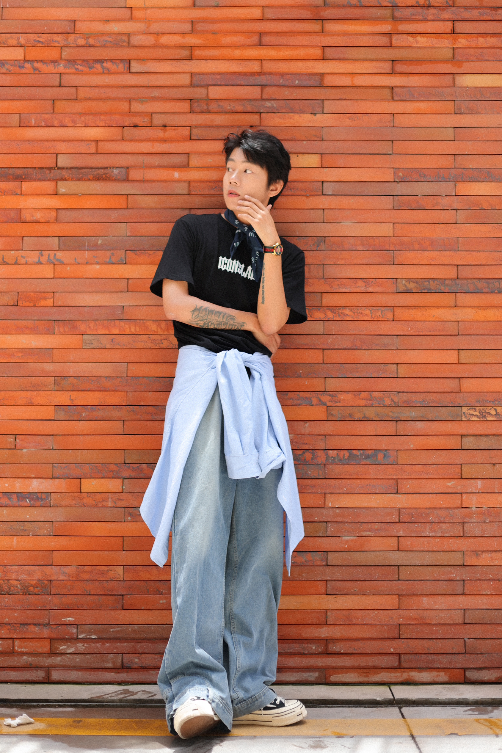 经典T恤+牛仔裤 是夏天的万能组合搭配 - 就爱这种黑色重磅T恤的搭配 夏天穿很舒服也很百搭 而且上面设计的字母圈挺有特色的 出门穿着够有个性! - 搭配的话记得试试叠穿 在腰部叠个衬衫 增加下层次感 这样ootd看起来会更有街潮氛围哦 -
