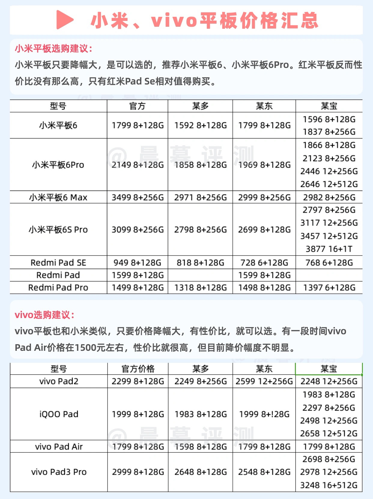 【618各品牌平板电脑底价汇总!纯干货🔥】,由用户 晨暮评测 分享,来自浙江。这是一篇来自识货社区的真实用户分享笔记。