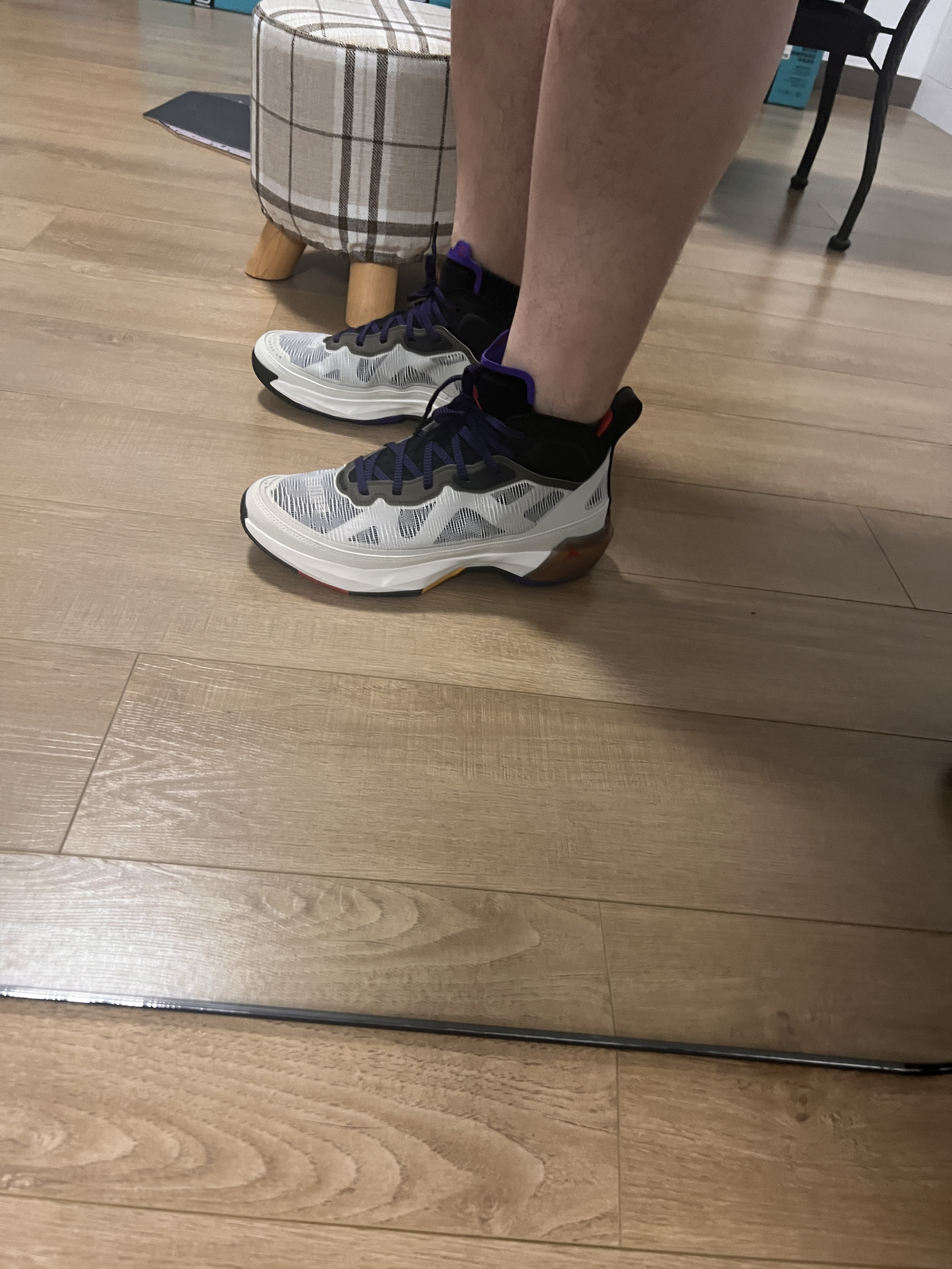 👟球鞋名称:aj37首发色 📌是否偏码【偏大/不偏码/偏小】:偏大 ⛹️性能打分(每项满分均为10): 包裹:7 缓震:10 抓地:7 耐磨:9 稳定:8 防侧翻:7 透气:10 重量:8 📖总结评价:国内版建议买小半码,推荐宽脚高脚背正常足弓的大体重选手。如果想要更好的包裹选择低帮版本。