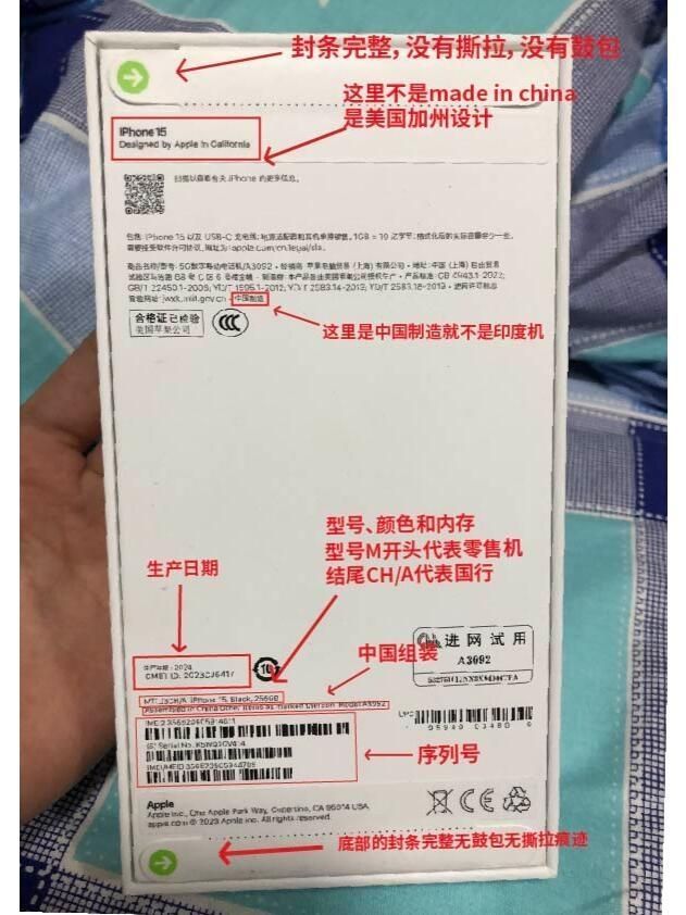 1.手机刚刚到手,一定不要着急开箱,建议全程录制开箱视频,避免纠纷 2.检查快递手机外包装有没有破损或者被打开现象 (1)手机外包装有破损可以拒收 (2)核对包装盒信息是否一致(型号、颜色、内存) (3)根据p1检查封条是否完整,有无撕拉和鼓包现象 3.检查是否是全新零售机 ①开头字母 (1)m-零售机 (2)cn-官换机 (3)f-官翻机 (4)p-定制机 (5)3a-展示机 ②生产地 (1)C...