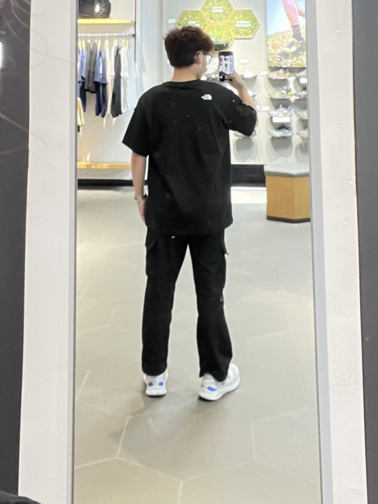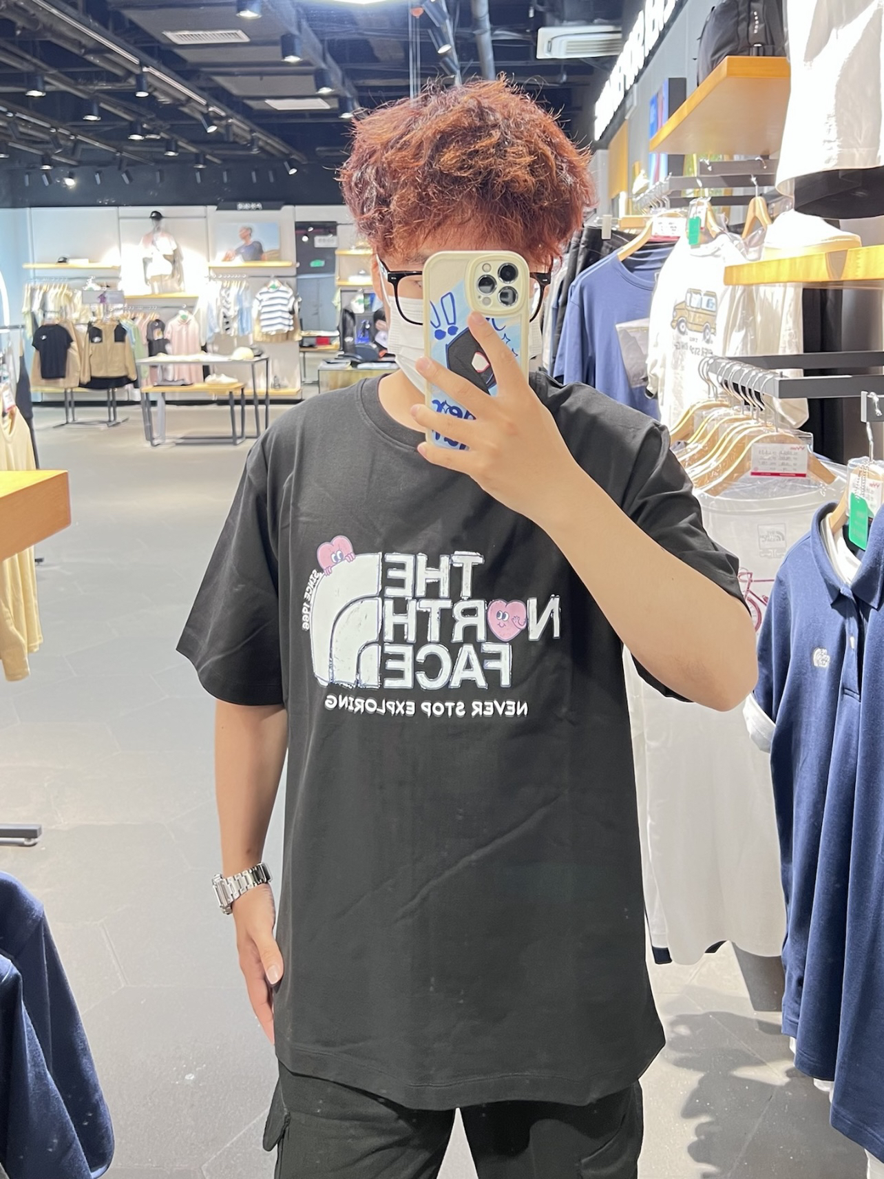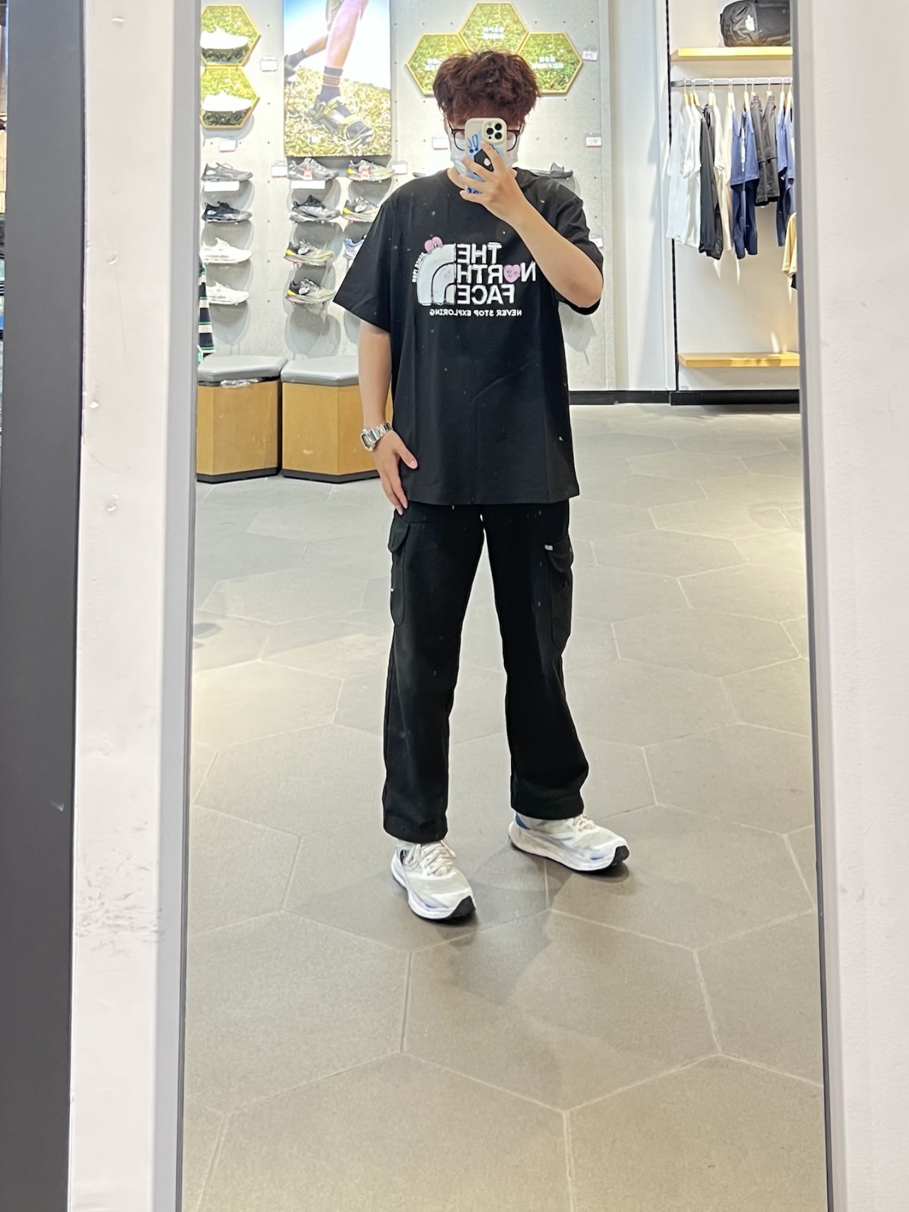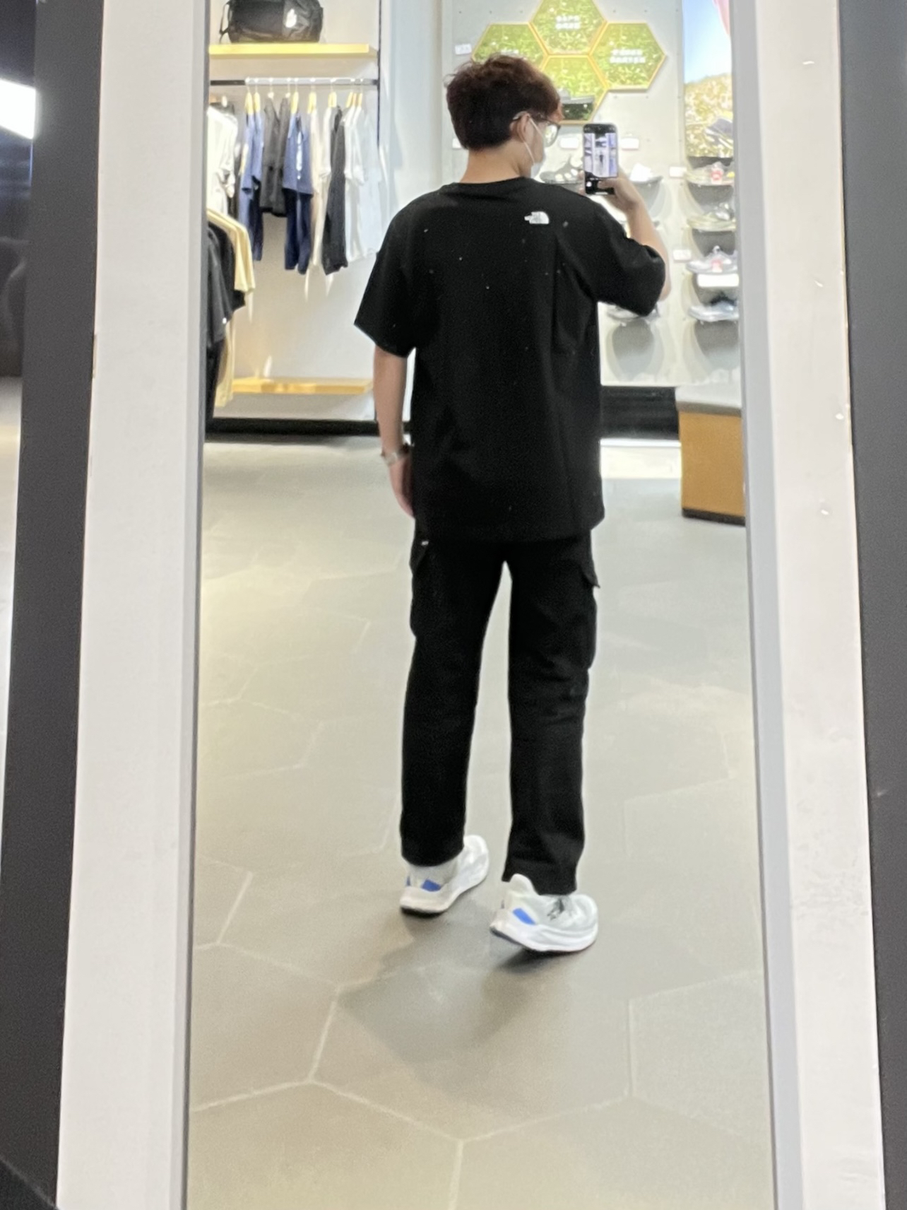 今日份穿搭分享🎉 THE NORTH FACE北面爱心短袖 哇咔咔咱就是说终于穿上北面短袖啦 咱们熬夜选的爱心短袖很爱很喜欢🉑️ 黑色超显瘦有没有看到啊哈哈哈哈 白色logo➕可爱卡通的❤️有点小童趣 背后就一个简单小logo略显低调 版型很宽松上身效果超级超级棒嘿嘿 搭配一条黑色工装裤和白色运动鞋OK啦 👔 THE NORTH FACE 👖 黑色工装裤 👟 白色运动鞋 🙋♂️ 170/120...
