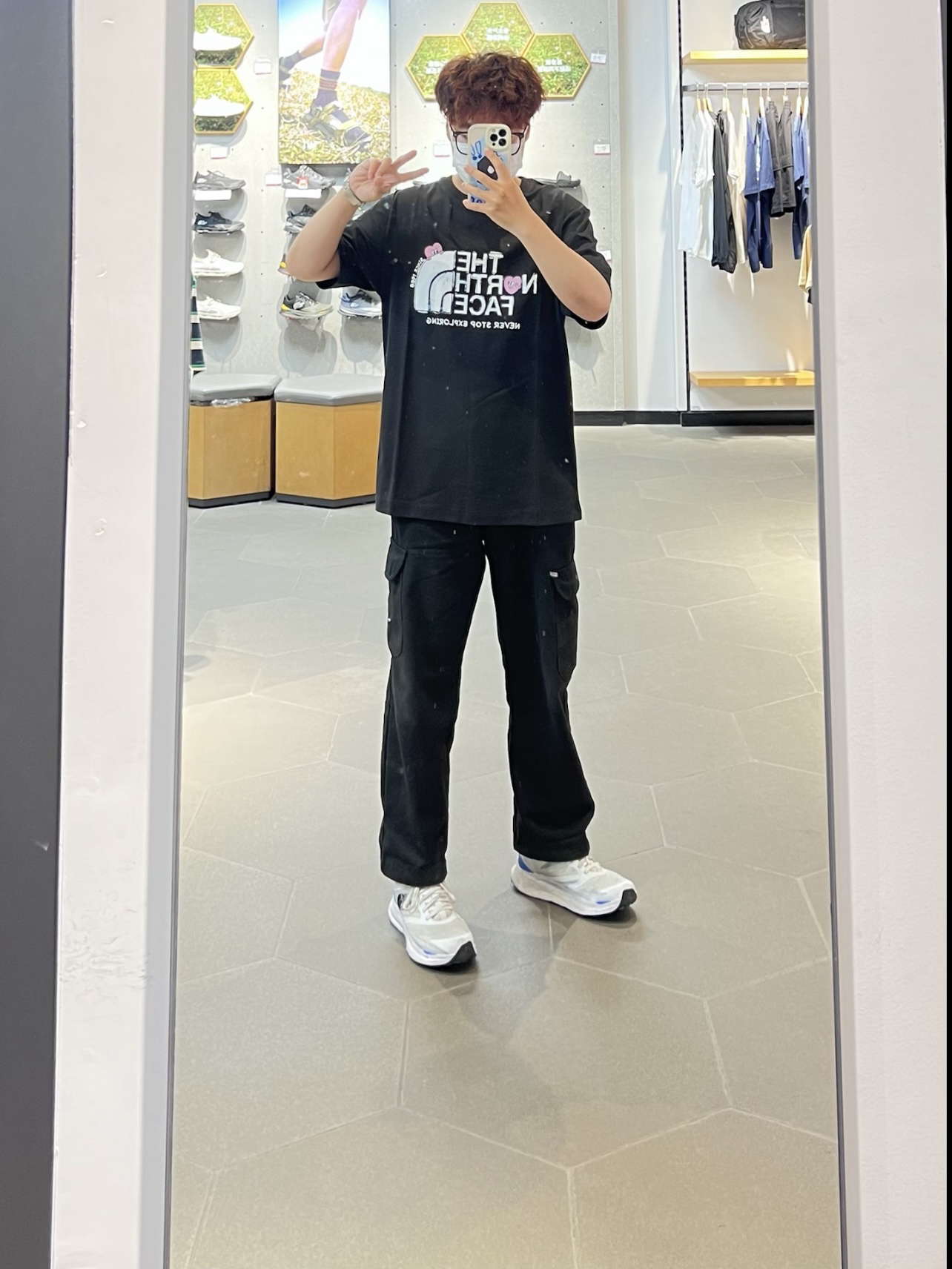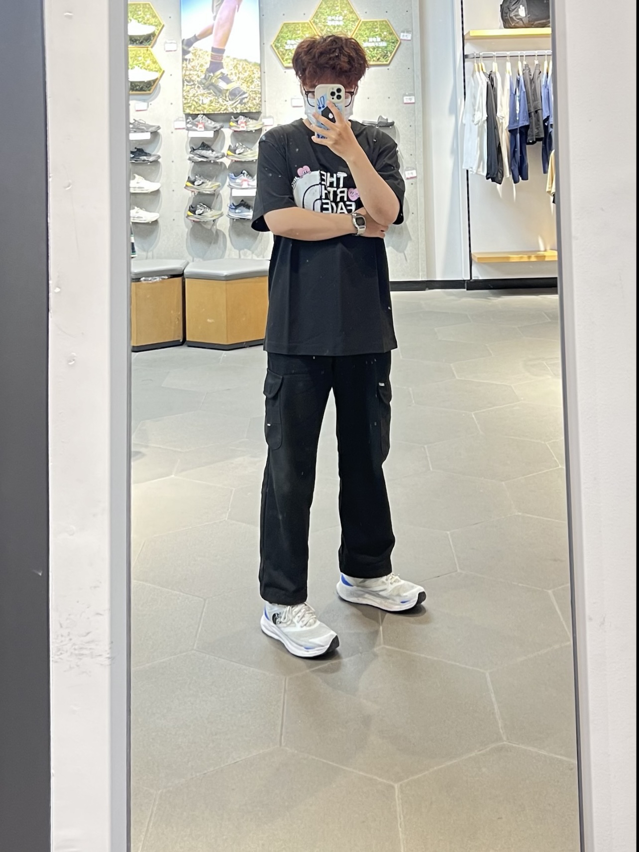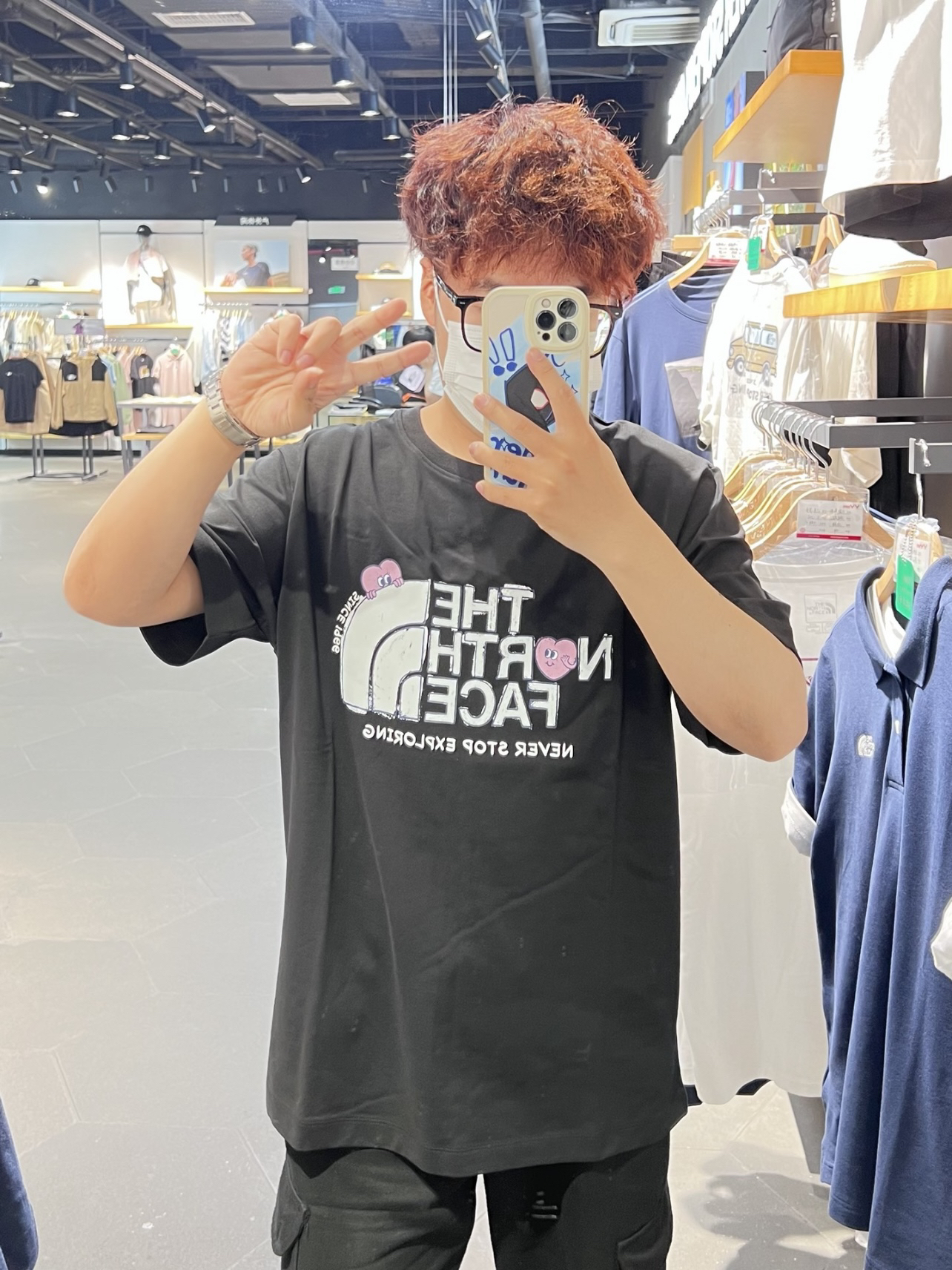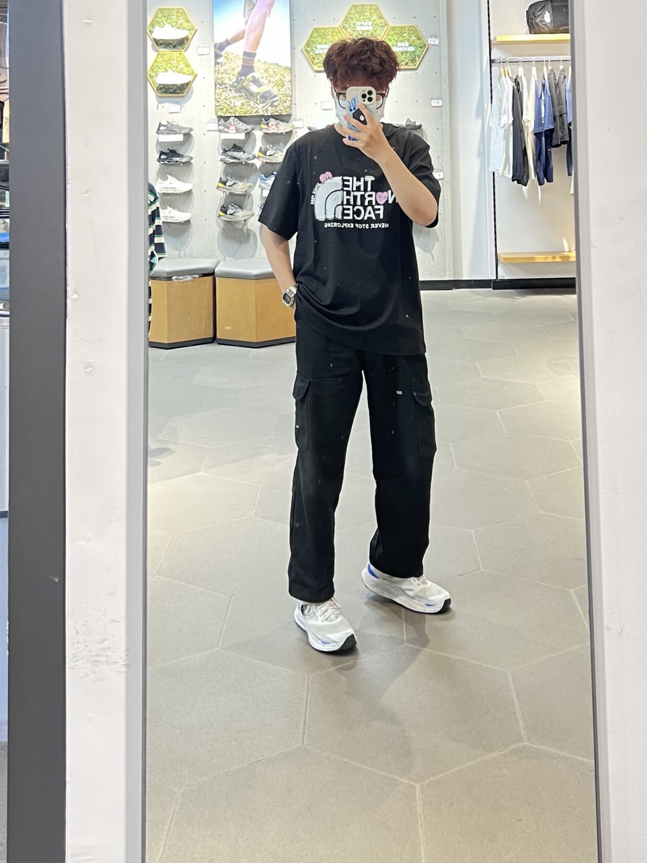 今日份穿搭分享🎉 THE NORTH FACE北面爱心短袖 哇咔咔咱就是说终于穿上北面短袖啦 咱们熬夜选的爱心短袖很爱很喜欢🉑️ 黑色超显瘦有没有看到啊哈哈哈哈 白色logo➕可爱卡通的❤️有点小童趣 背后就一个简单小logo略显低调 版型很宽松上身效果超级超级棒嘿嘿 搭配一条黑色工装裤和白色运动鞋OK啦 👔 THE NORTH FACE 👖 黑色工装裤 👟 白色运动鞋 🙋♂️ 170/120...