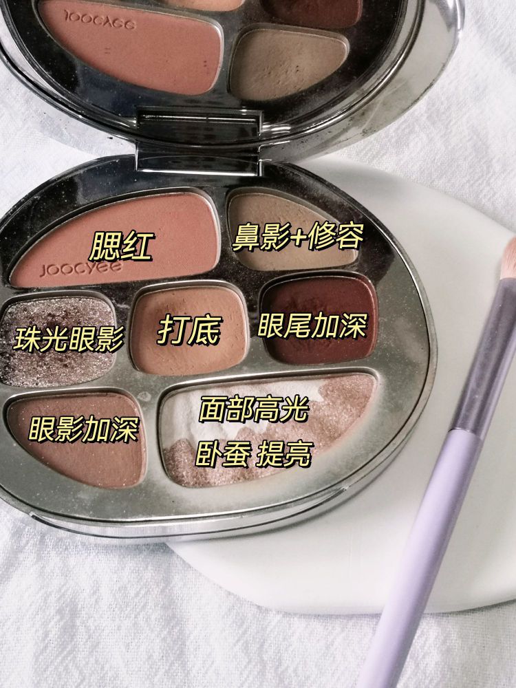 酵色眼影琥珀盘,一盘化全妆 性价比也太高了 眼影、腮红、高光都能化 上脸显色度也很高 是低饱和的质感 粉质细腻,也很丝滑