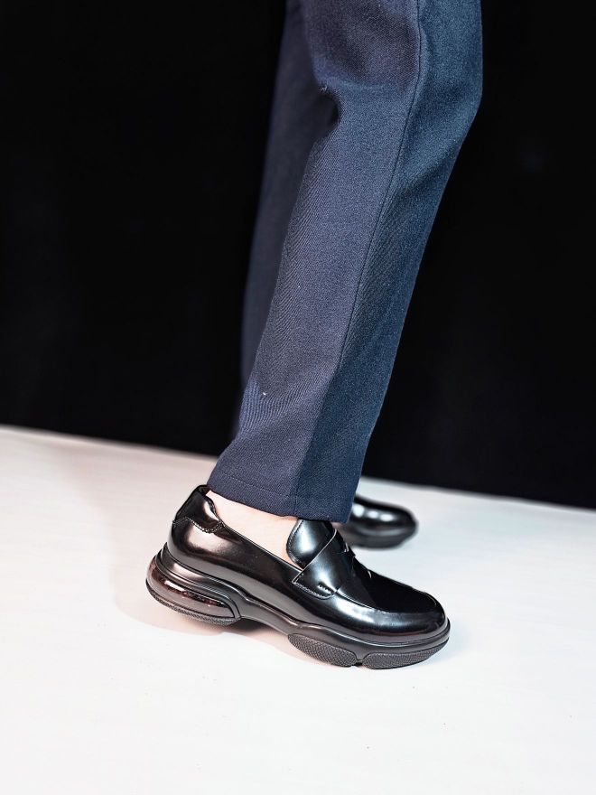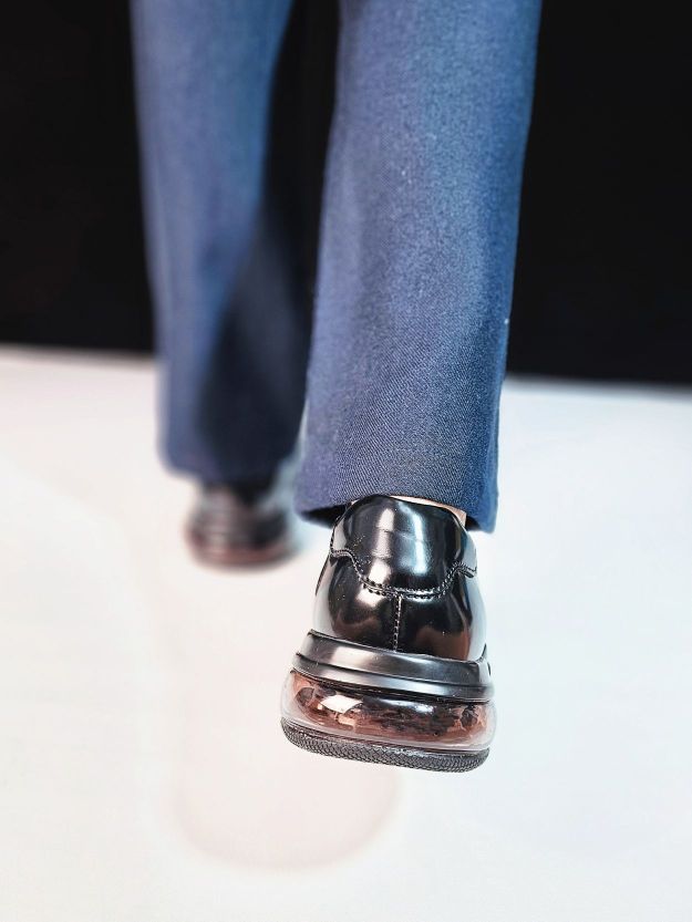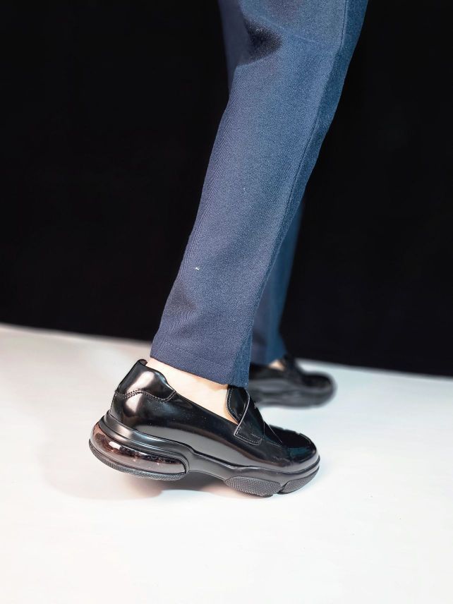 这也太酷了吧!锃光瓦亮的皮鞋,还能带气垫? 这双夏利豪皮鞋的鞋面的皮质好棒的说,锃光瓦亮,好有型好有质感,鞋型还蛮年轻的,不是很正统的那种皮鞋造型,很显年轻,搭配西裤、休闲裤、牛仔裤都可以,商务和休闲穿都没问题哟! 后跟竟然还有透明气垫,脚感软软的很舒服,久站长时间走路不累脚,小哥哥们肯定会喜欢的啦!
