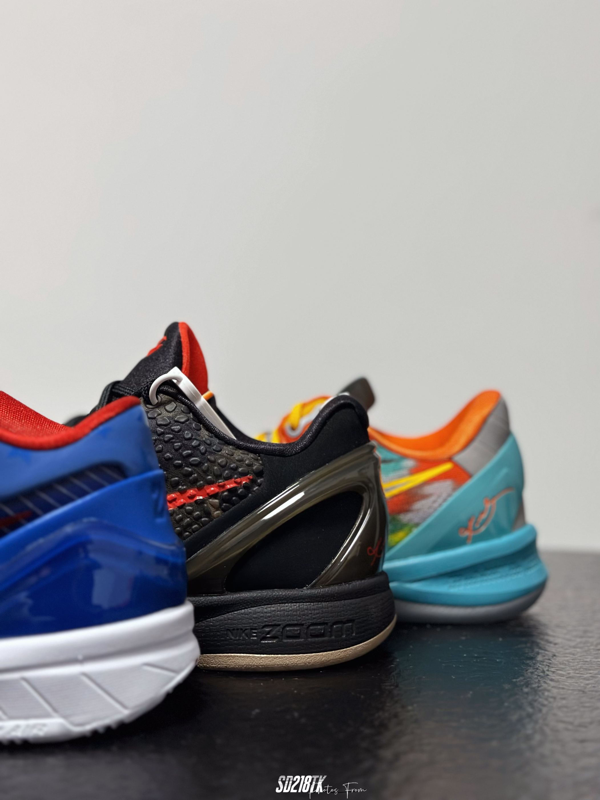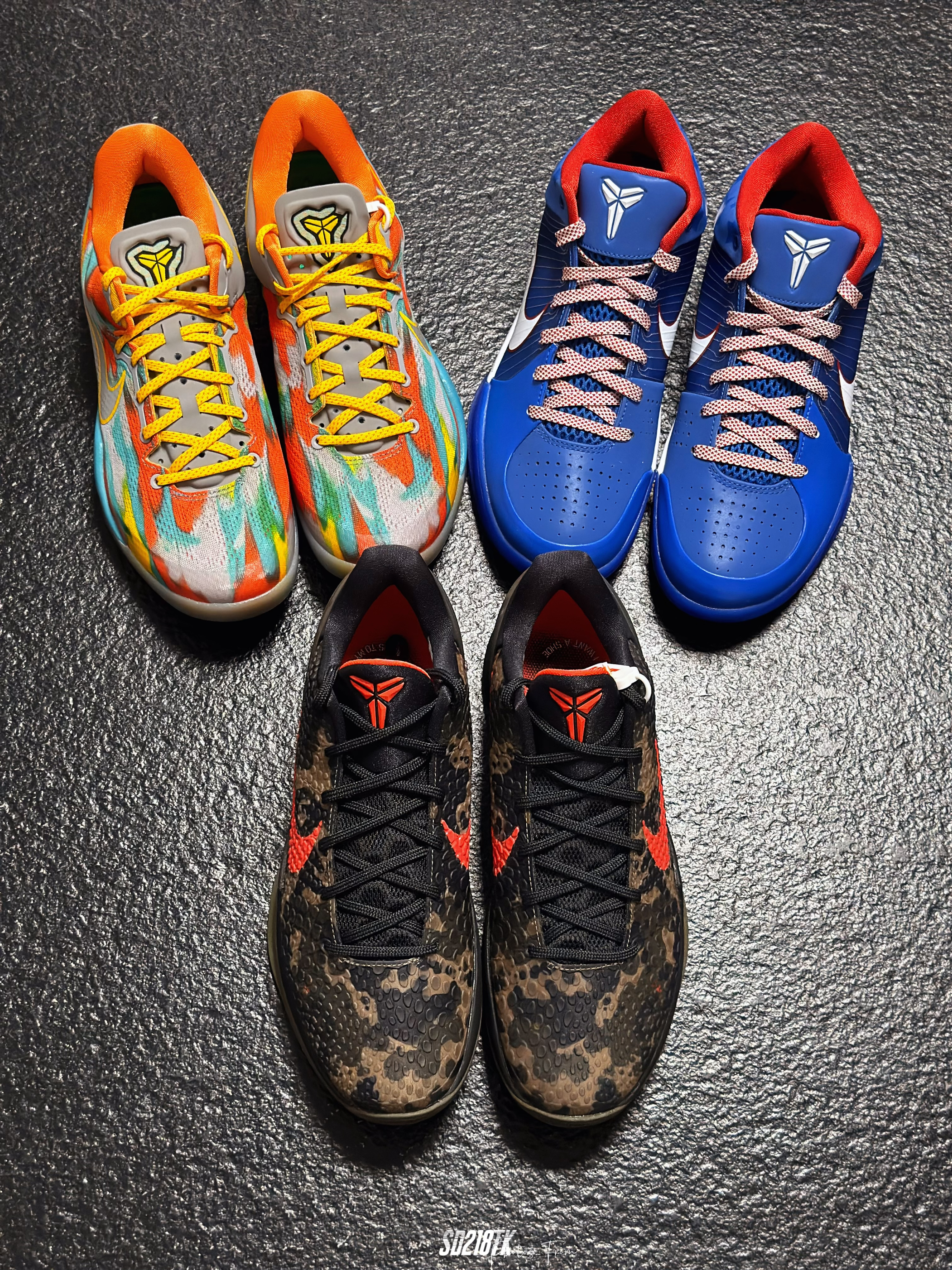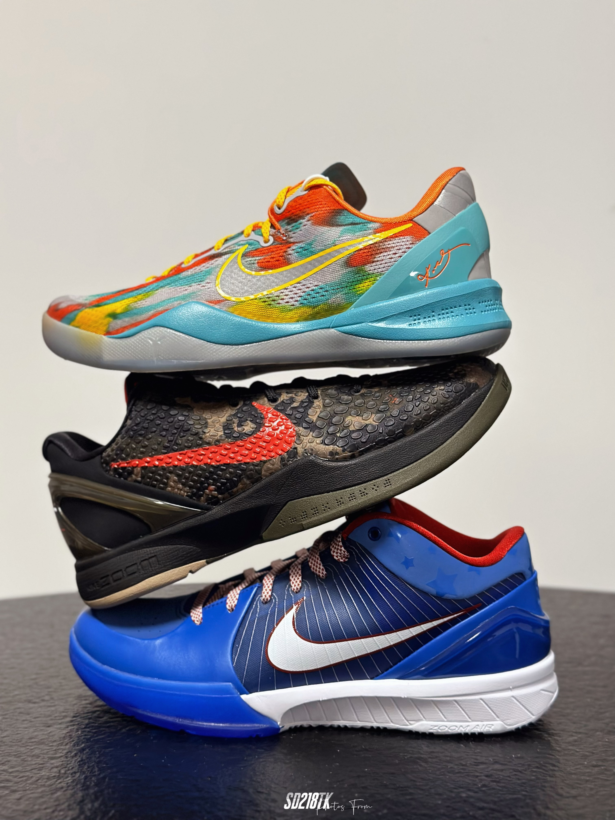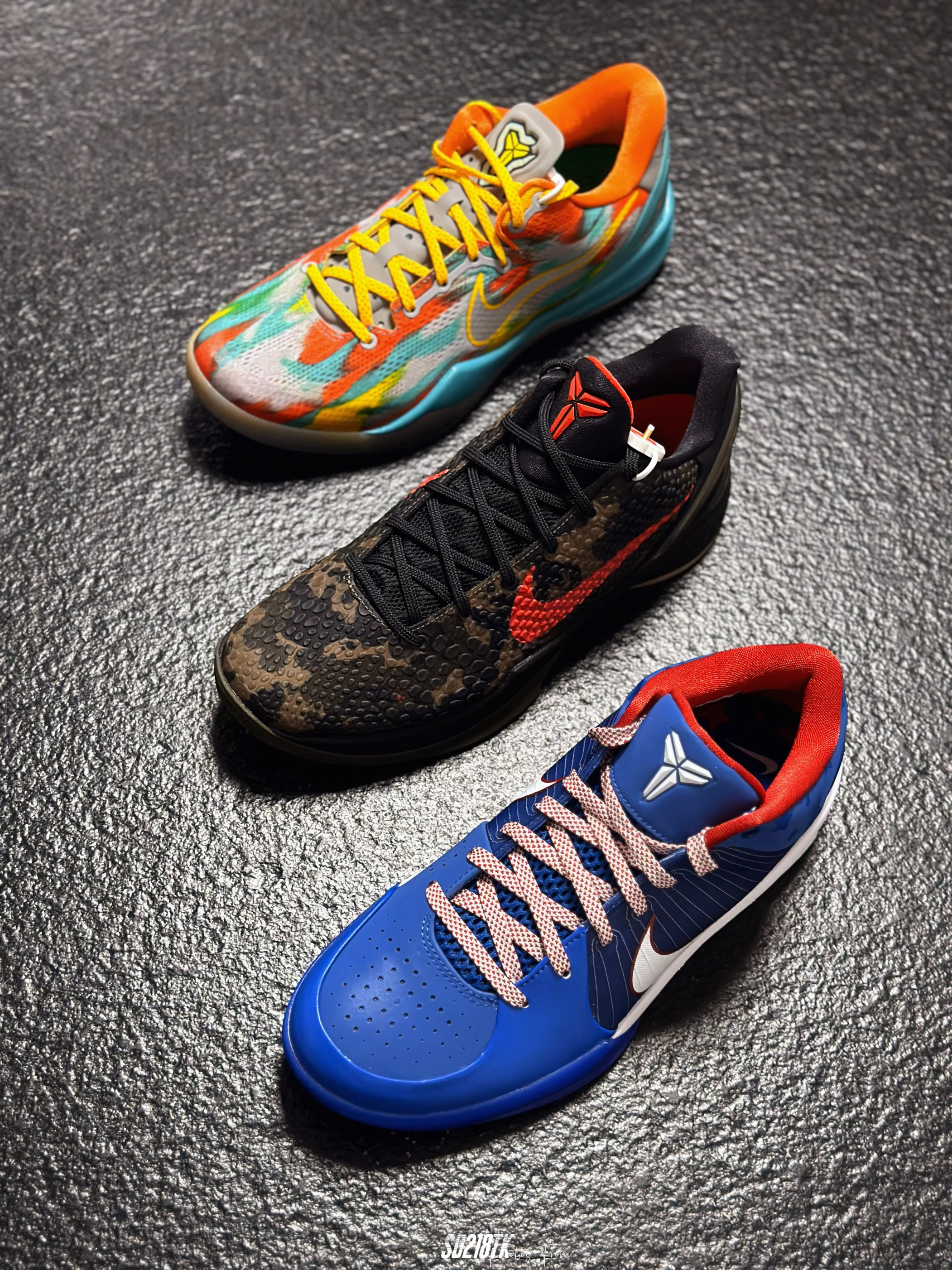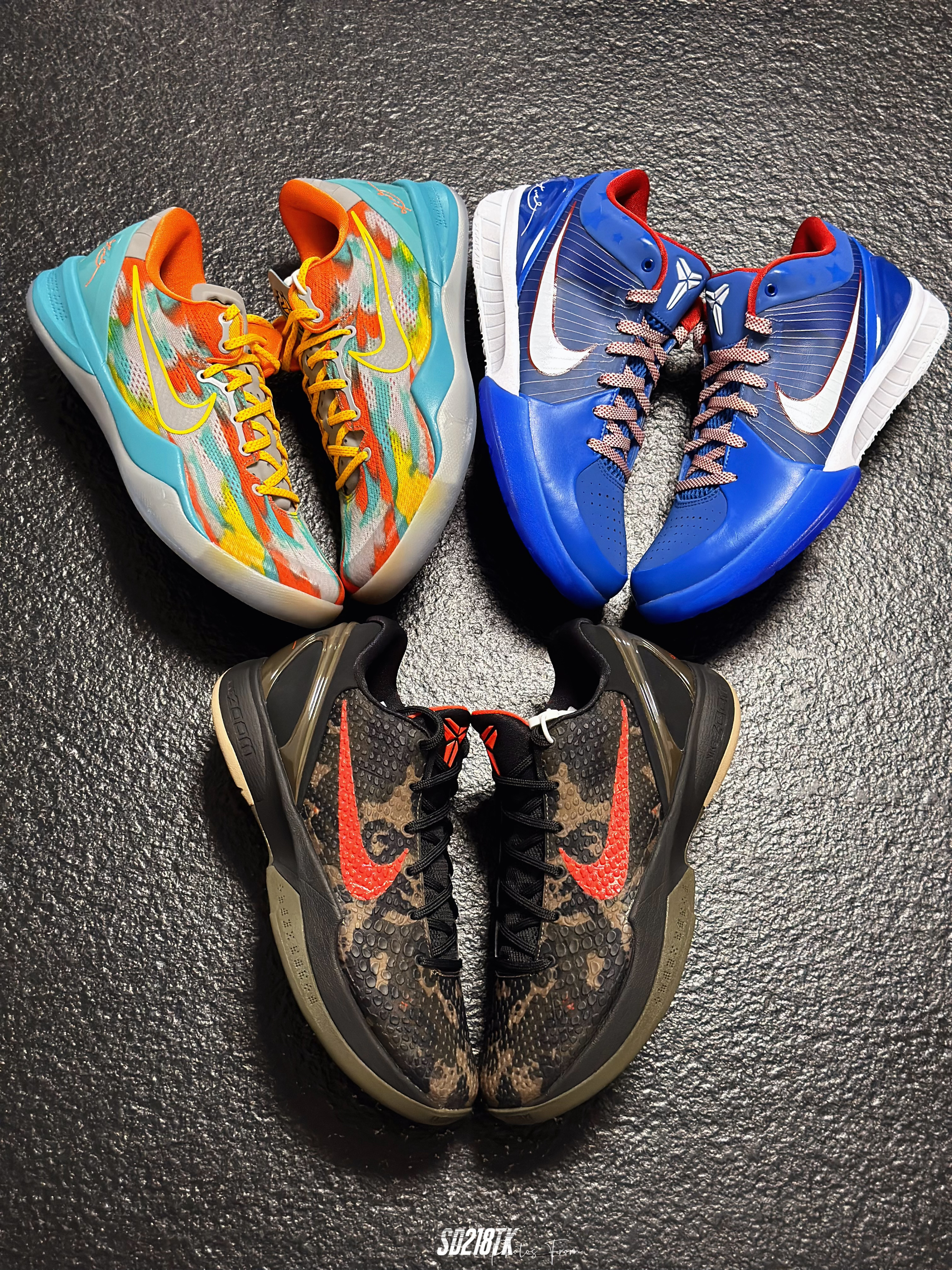 最近在整理家里的球鞋,打算给自己的收藏拍一拍合辑,2024年入了三双科比的复刻球鞋,zk8 venice beach、zk4 philly、zk6 italian camo,整体都是经典的配色复刻,都是非常具有特色的配色,三双的材质都不太一样,质感不用多说,真的美如画,尤其放在一起太喜欢了。