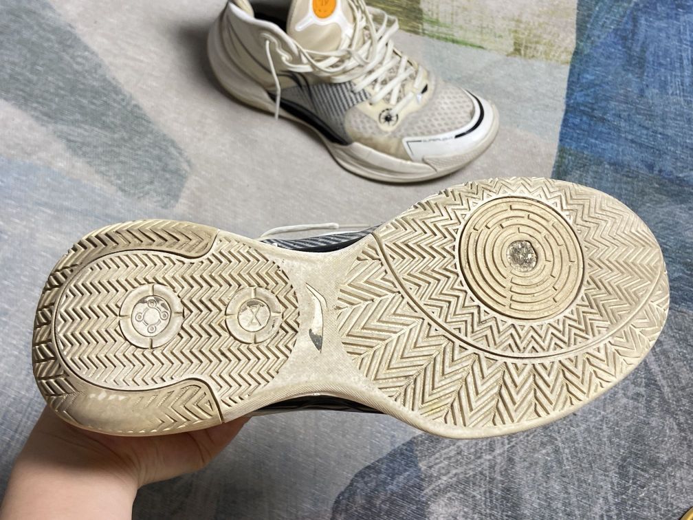 不确定这款鞋现在李宁还在卖没有啊,我甚至记得当初型号不是这个,不过当初是老婆帮我下单的,购于去年618的样子,目前使用应该接近200小时,我只在打球的时候穿它。 这鞋子很轻,甚至比板鞋还轻,底很薄,基本没弹性,但是有缓震,因为脚掌中间足弓那有架空层。 如果你是那种蹦的高又喜欢蹦的人,我不建议购买,因为我基本是地板流,突破或者无球跑动比较多,所以我觉得其缓震对我来说是够了。 然后防侧翻没问题,鞋子包...