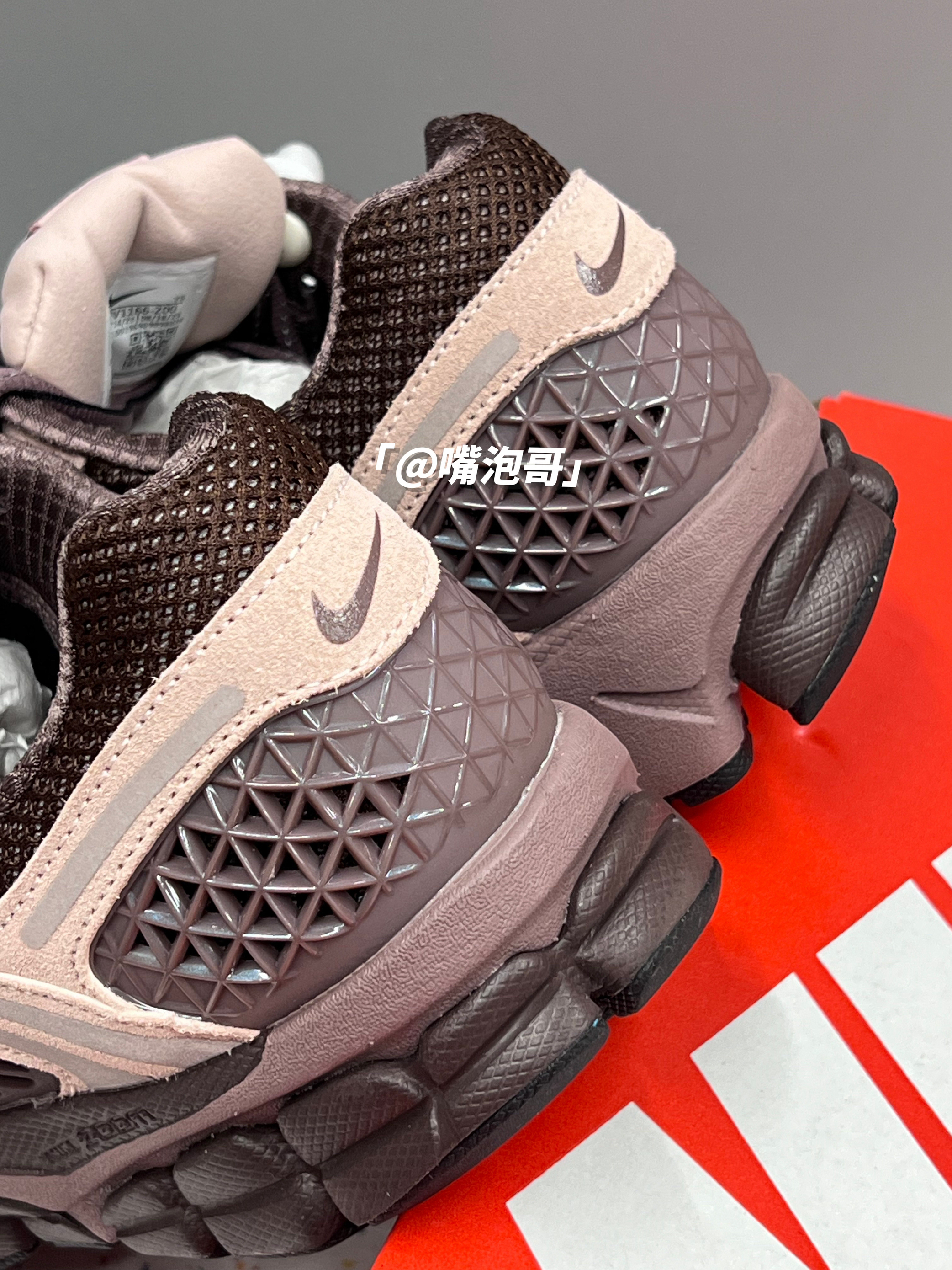 👟:Air Zoom Vomero 5 咖啡色 简介: 鞋款是一双低帮的运动休闲鞋,整双鞋子的外观配色选用了咖啡色与黑色的组合,整体看着还是蛮有复古感的,穿搭起来还算是比较得容易,织物网布鞋面搭配上柔软的中底双缓震,使鞋子有着良好的上脚感受,日常当做通勤鞋也是不错的选择。 细节: 鞋面采用了复合织物网布与皮革叠加而成,使鞋子有着良好的透气性,鞋身两侧加入了软质橡胶材料,提升了侧向支撑性...