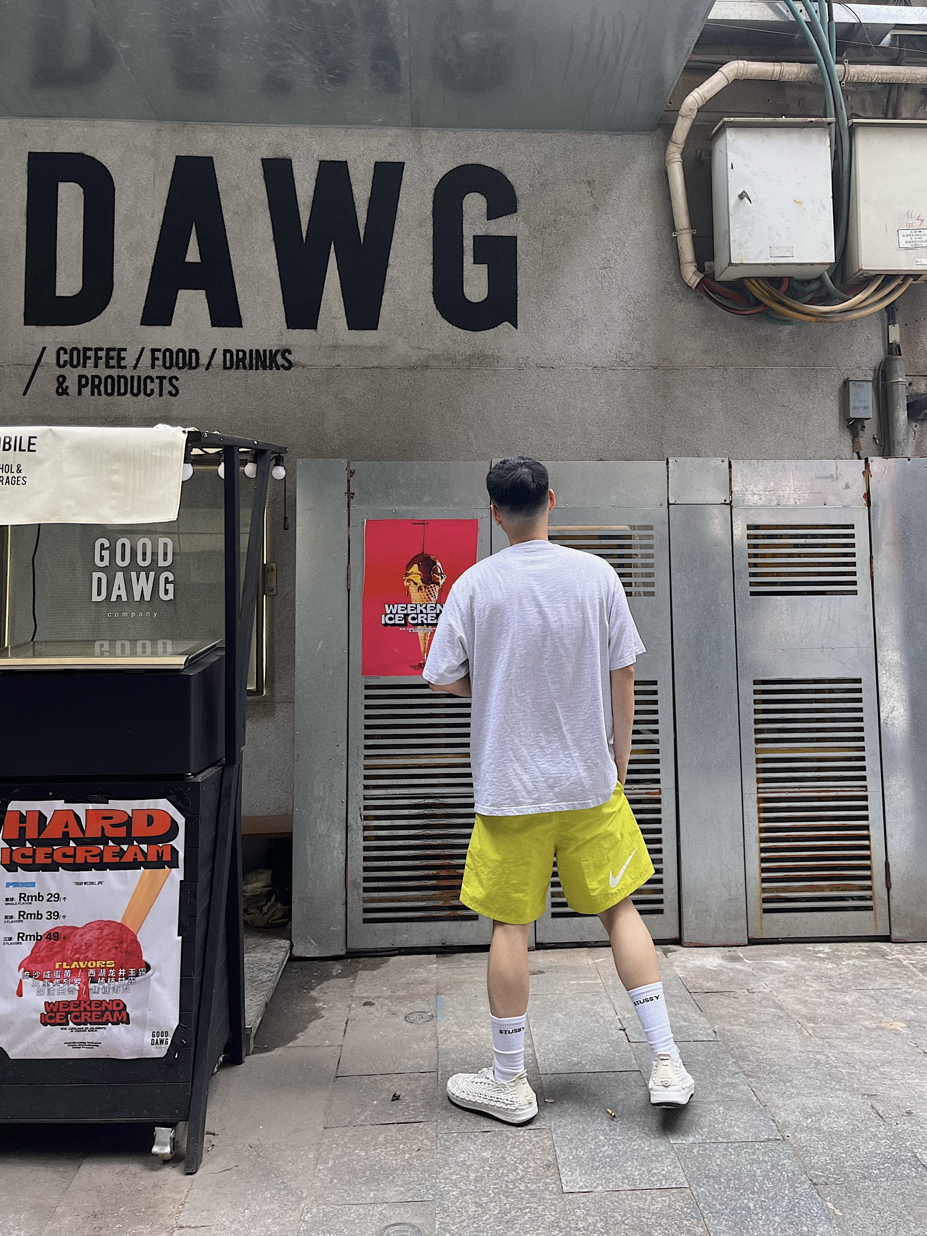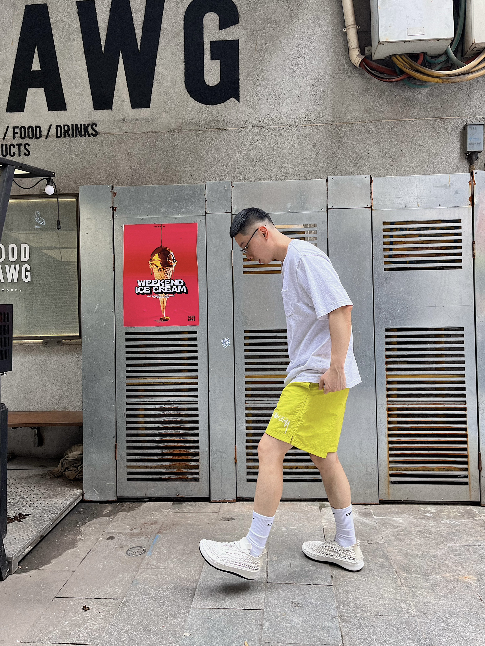 夏天穿搭颜色搭配出彩挺重要的~ 比如🩳来个绿色,清凉感十足hhh 配了双夏天必备溯溪👟,到处都在透气凉爽 👕supreme ss24 pocket tee 🩳nike x stussy 👟nike acg