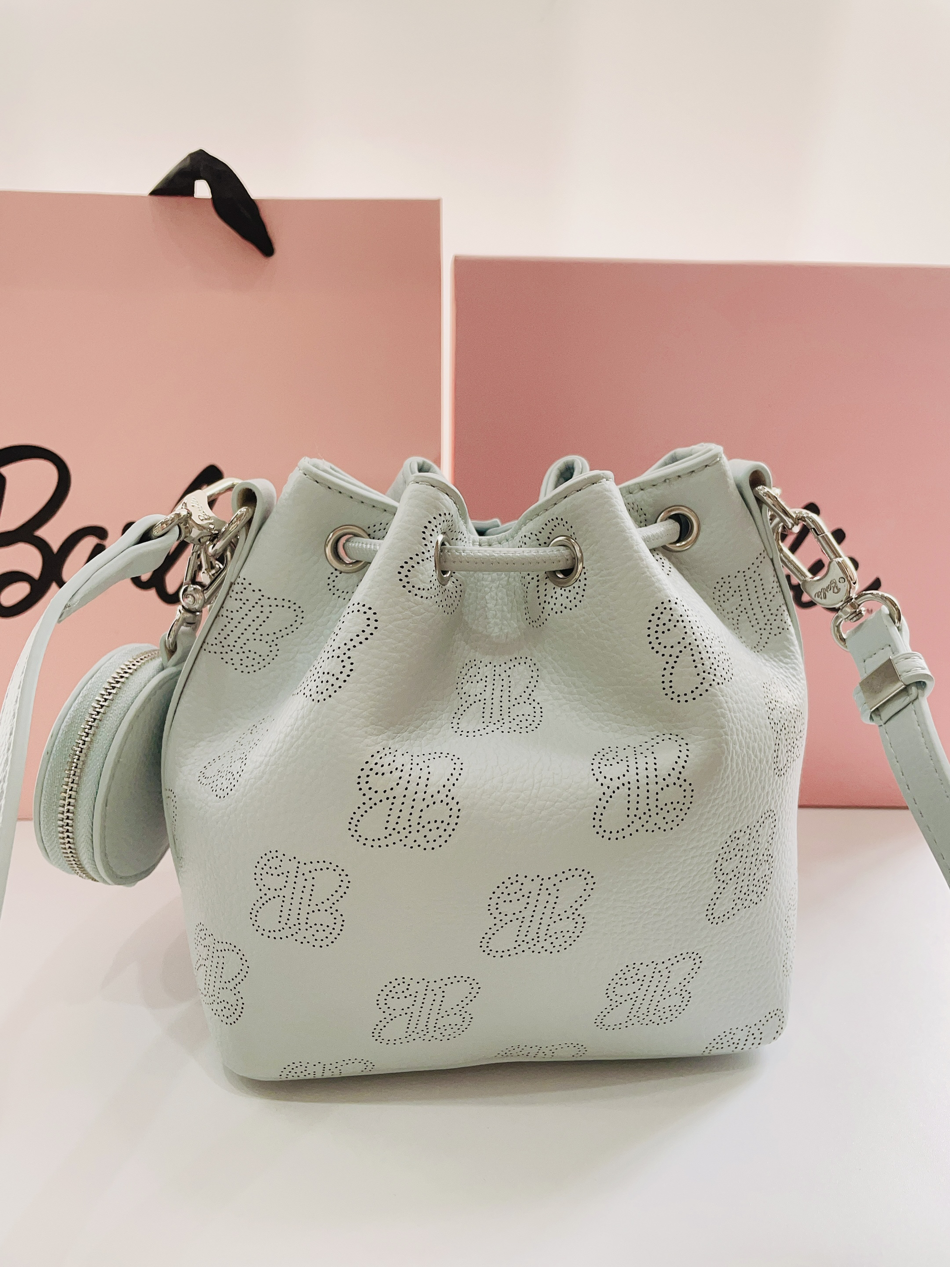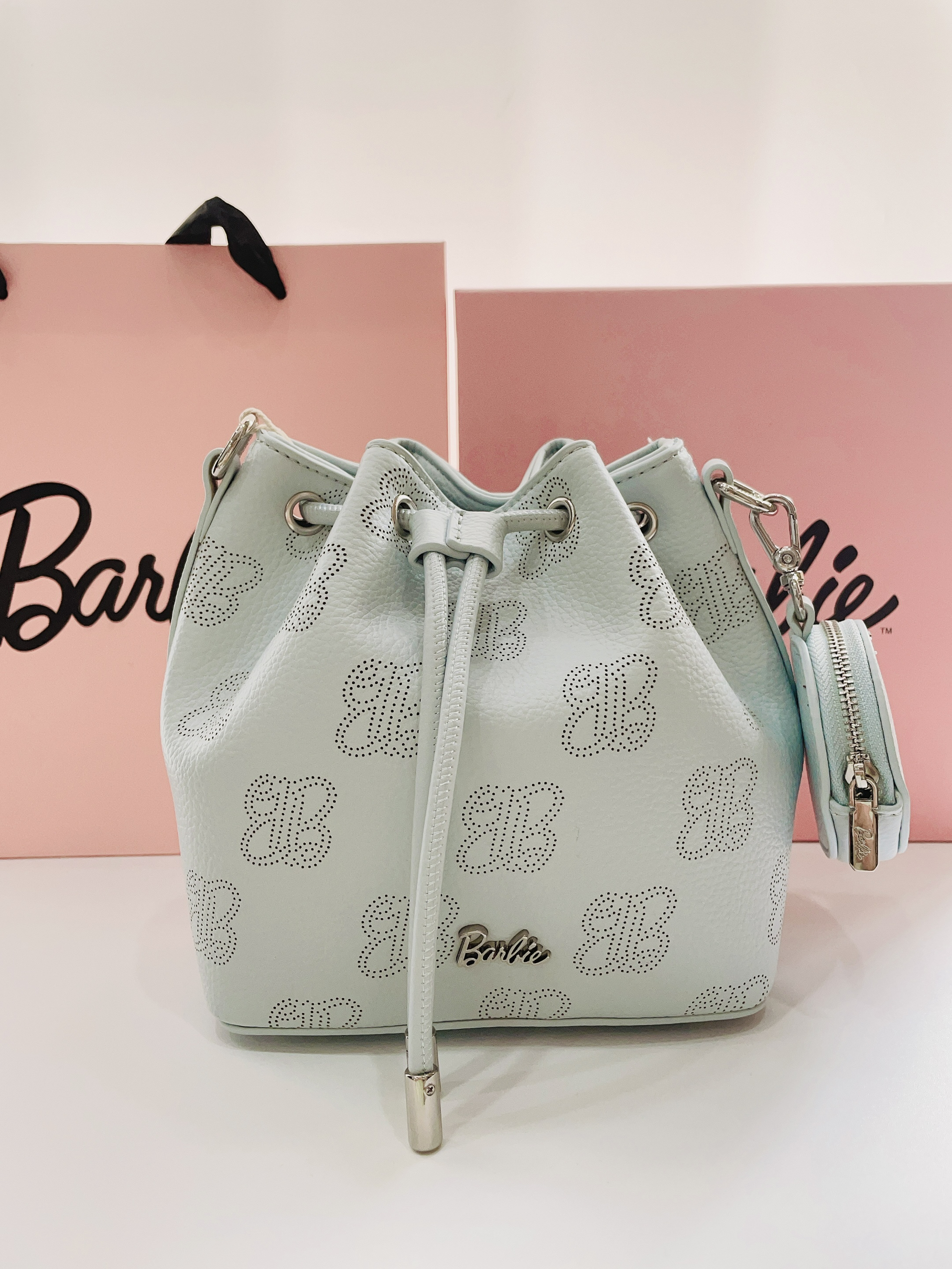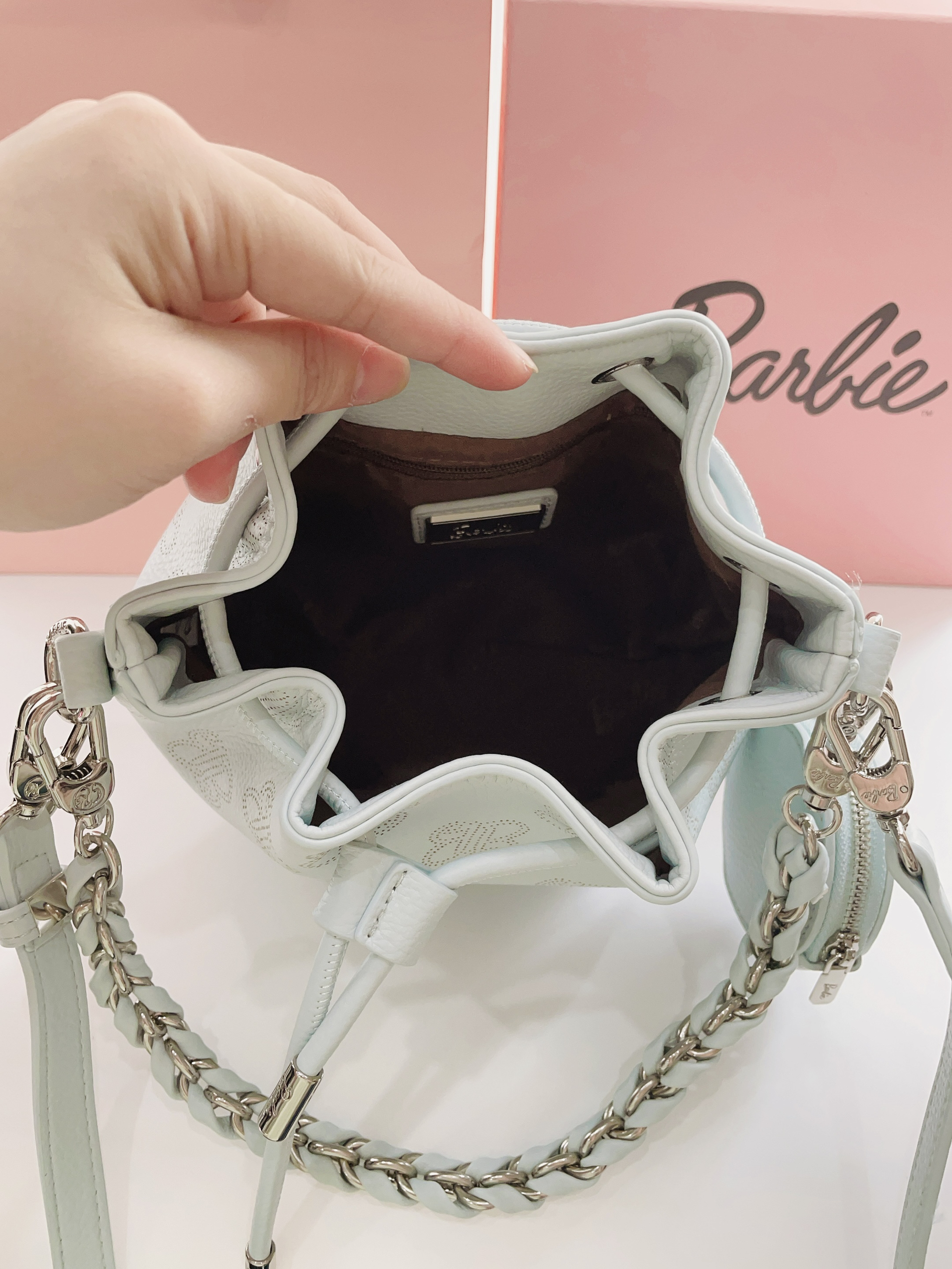 现在是六月天毕业季到啦 提前给对象安排了礼物 是Barbie芭比手提水桶包 颜色奶fufu的蓝很好看 抽绳设计hin特别 内里容量大 日常用品都可装 可手拎可背带斜挎很方便 日常随便搭衣服嘟可