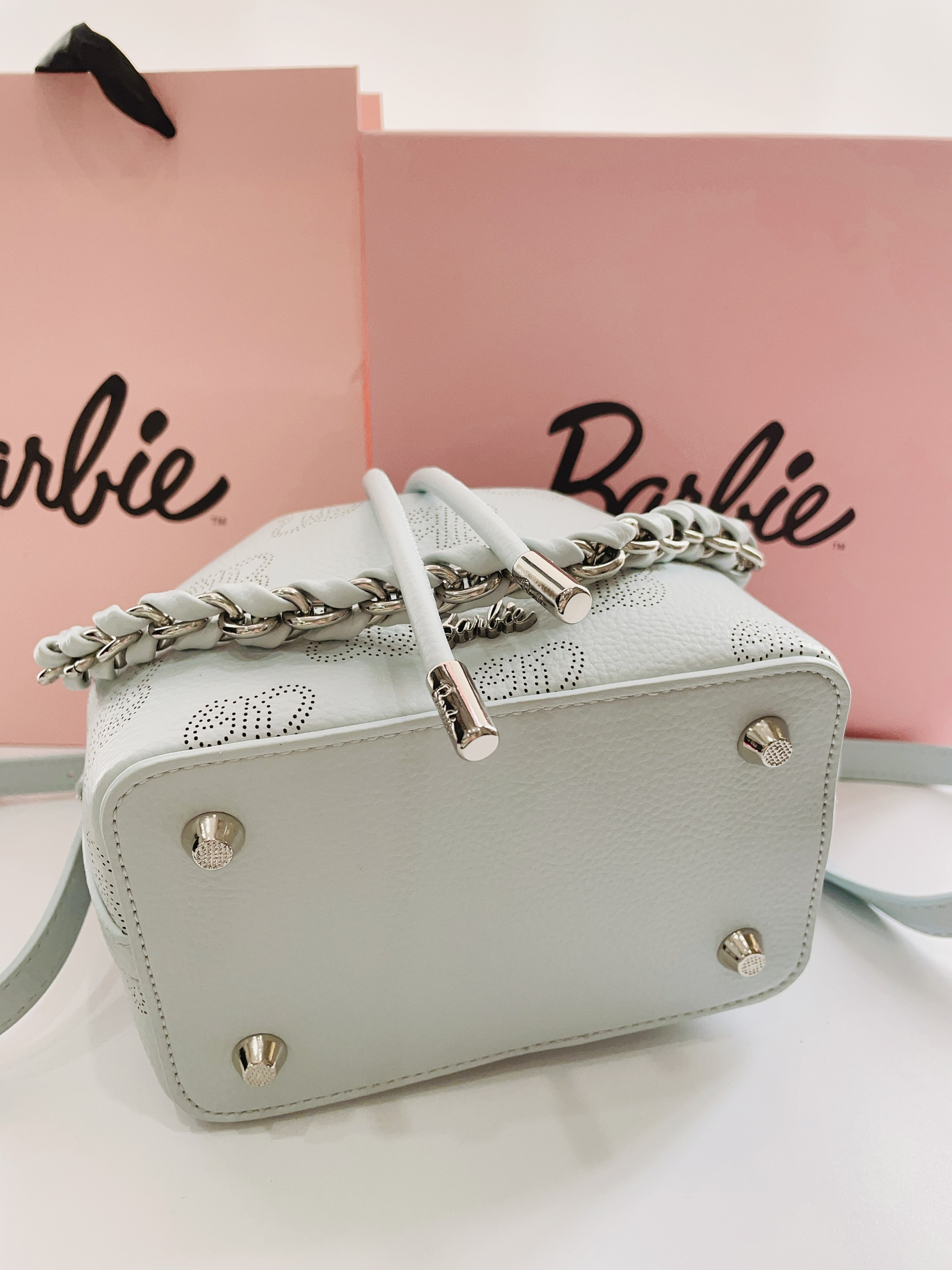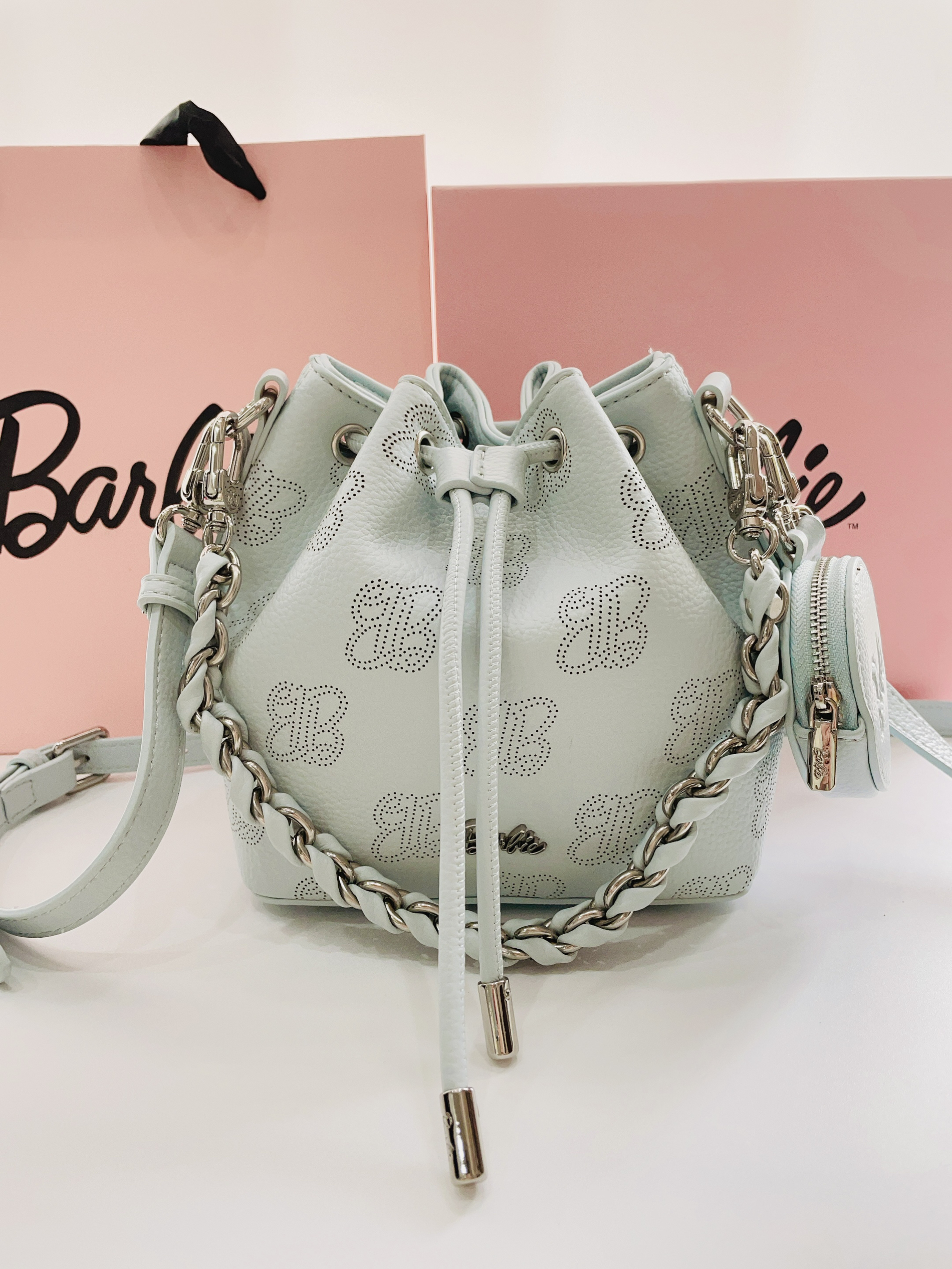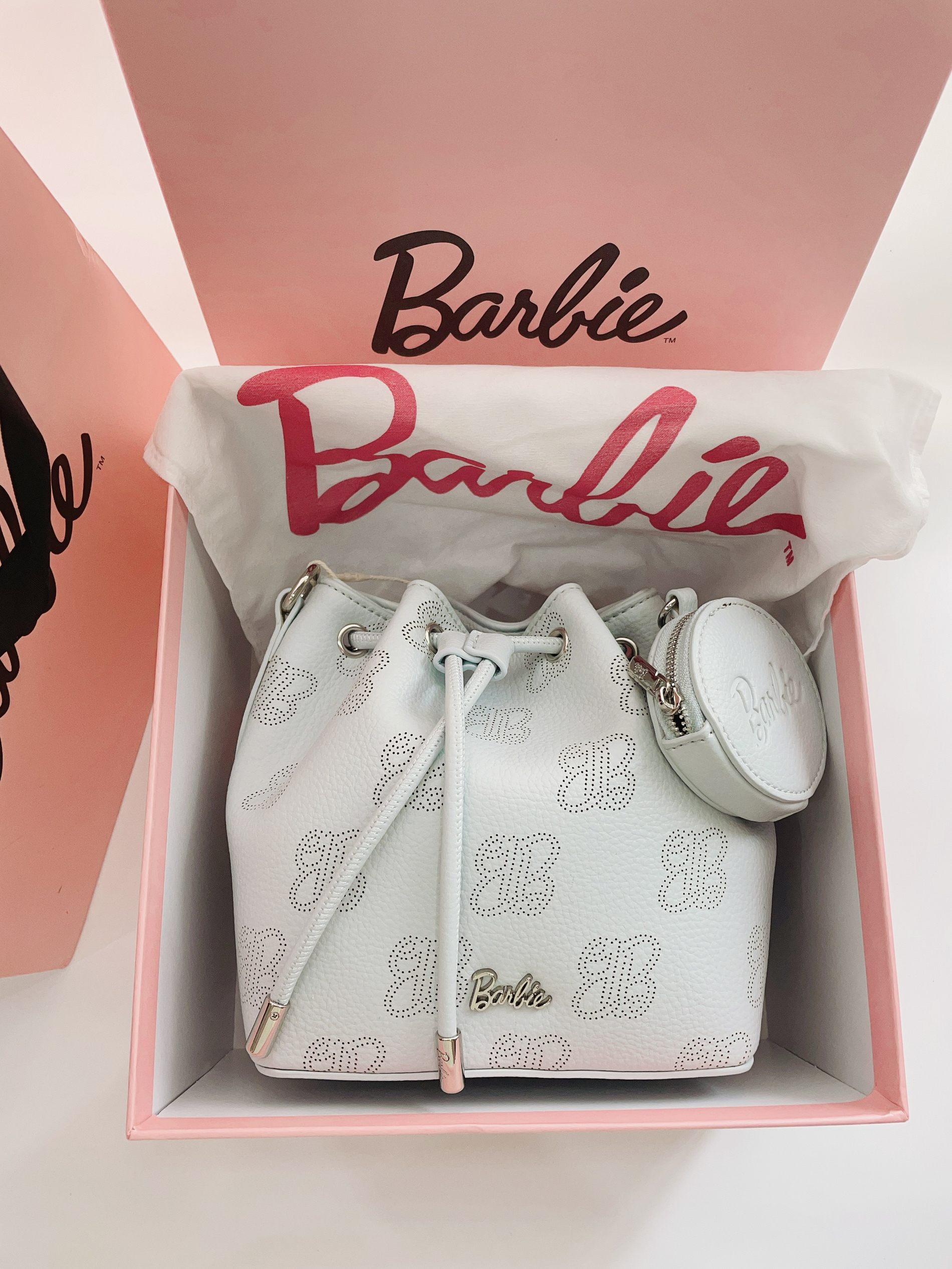 现在是六月天毕业季到啦 提前给对象安排了礼物 是Barbie芭比手提水桶包 颜色奶fufu的蓝很好看 抽绳设计hin特别 内里容量大 日常用品都可装 可手拎可背带斜挎很方便 日常随便搭衣服嘟可
