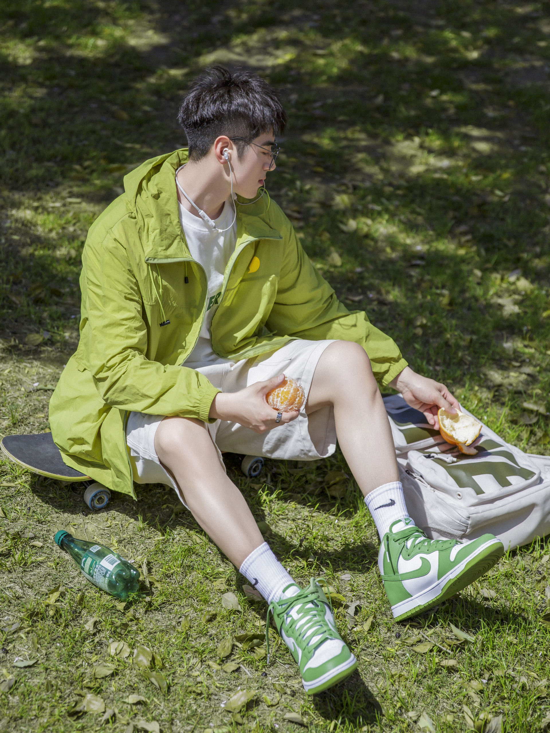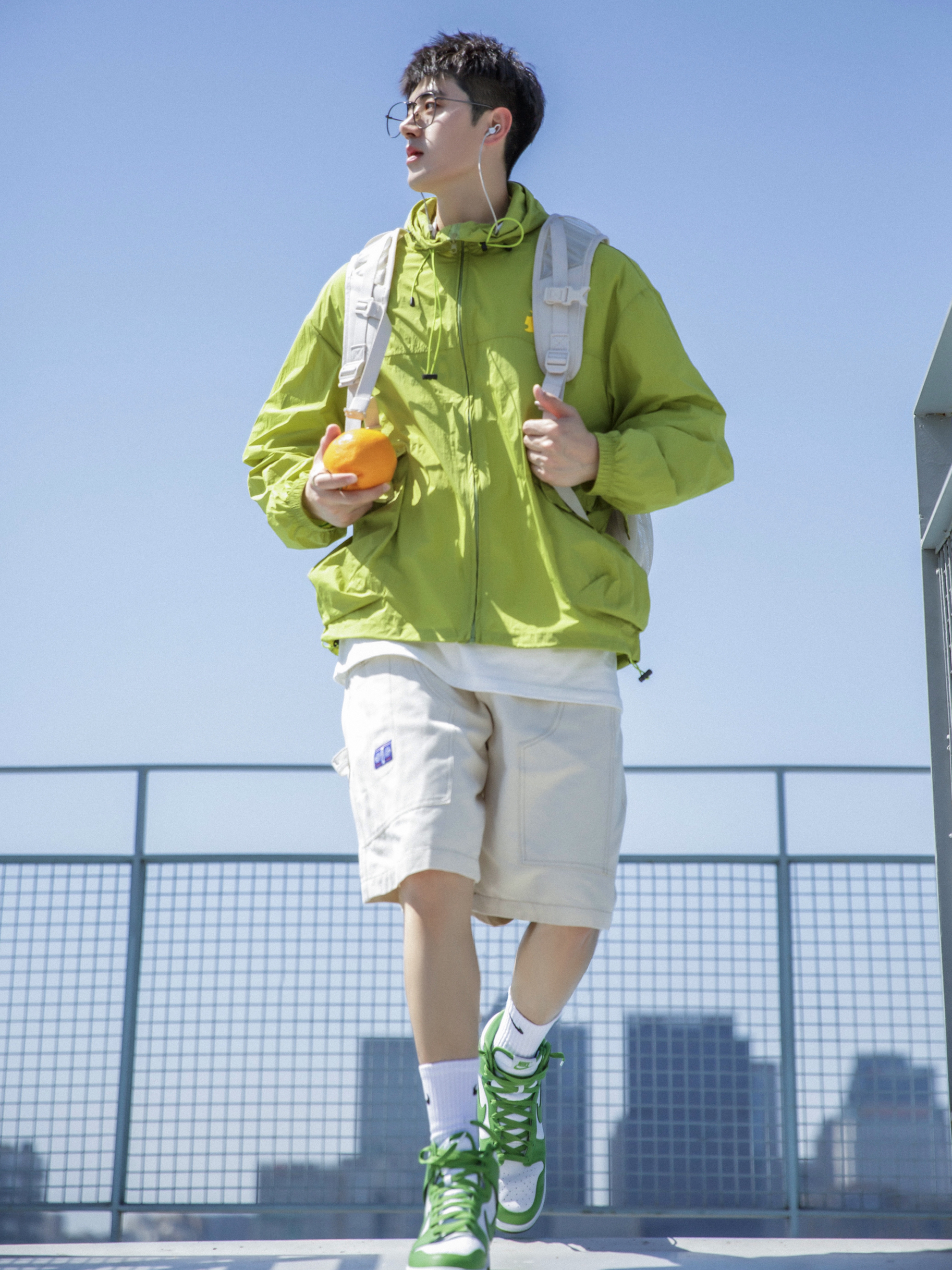 🍃夏天,除了“蓝色”就是“绿色”!都是很适合夏天的两个色彩搭配!🌈✨……今天分享一套“绿色系穿搭”!🧩✨……搭配我的“苹果绿”高帮Dunk!和防晒衣色彩呼应!一整个就是“夏日多巴胺穿搭”!帅的!帅的!💚💦…… — 🎒:Nike;✨ 👔:PD大人;✨ 🩳:DONTSTOP;✨ 👟:Dunk;✨ —