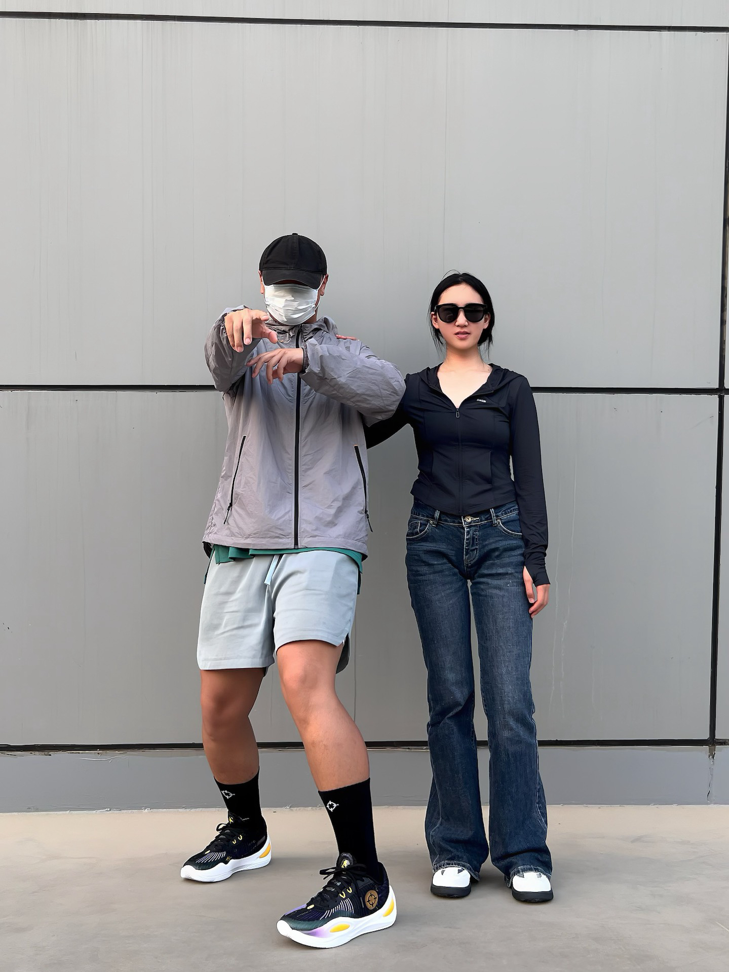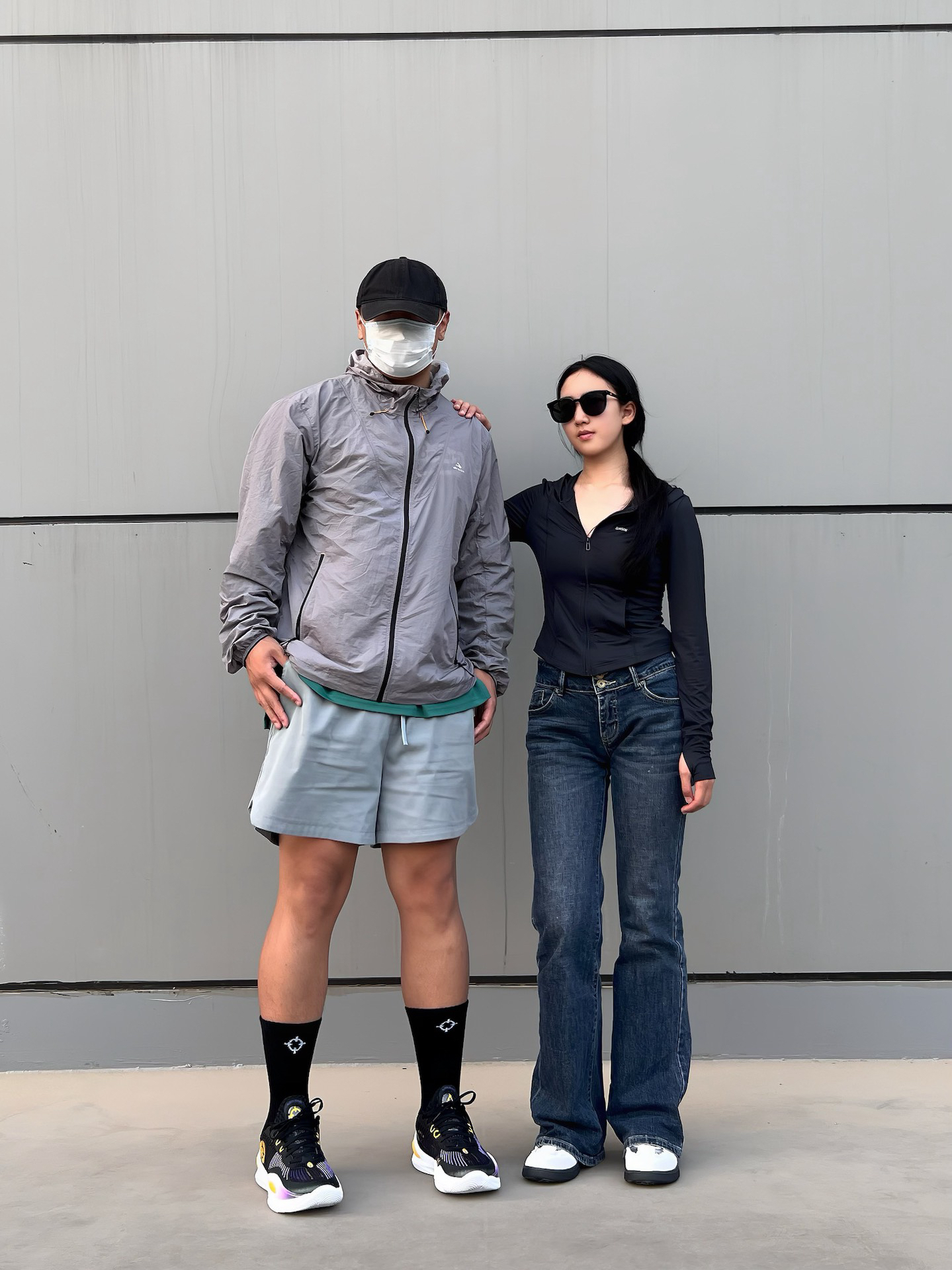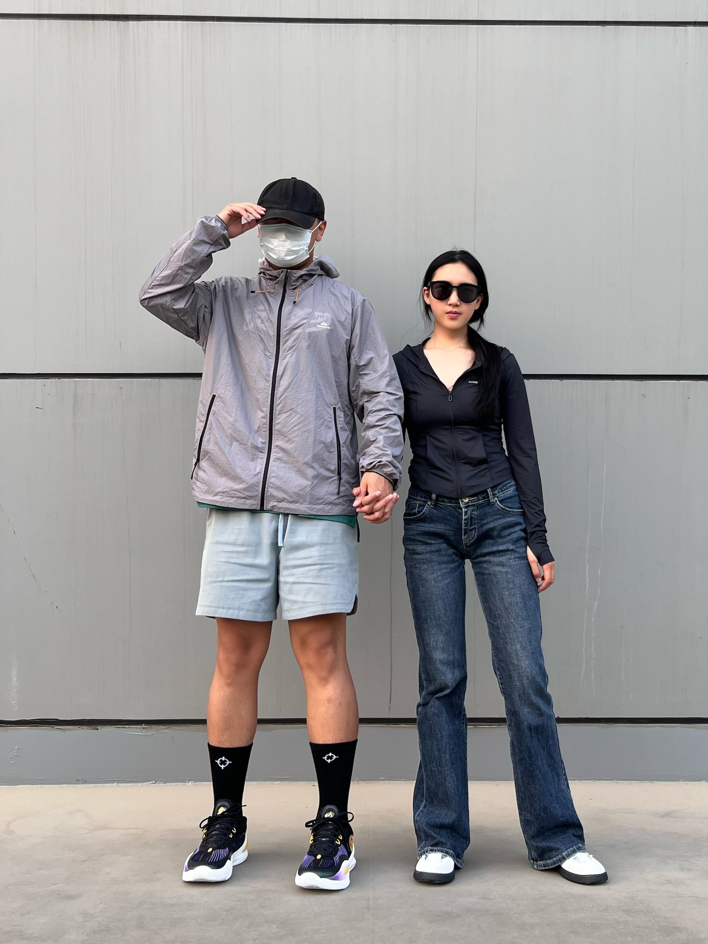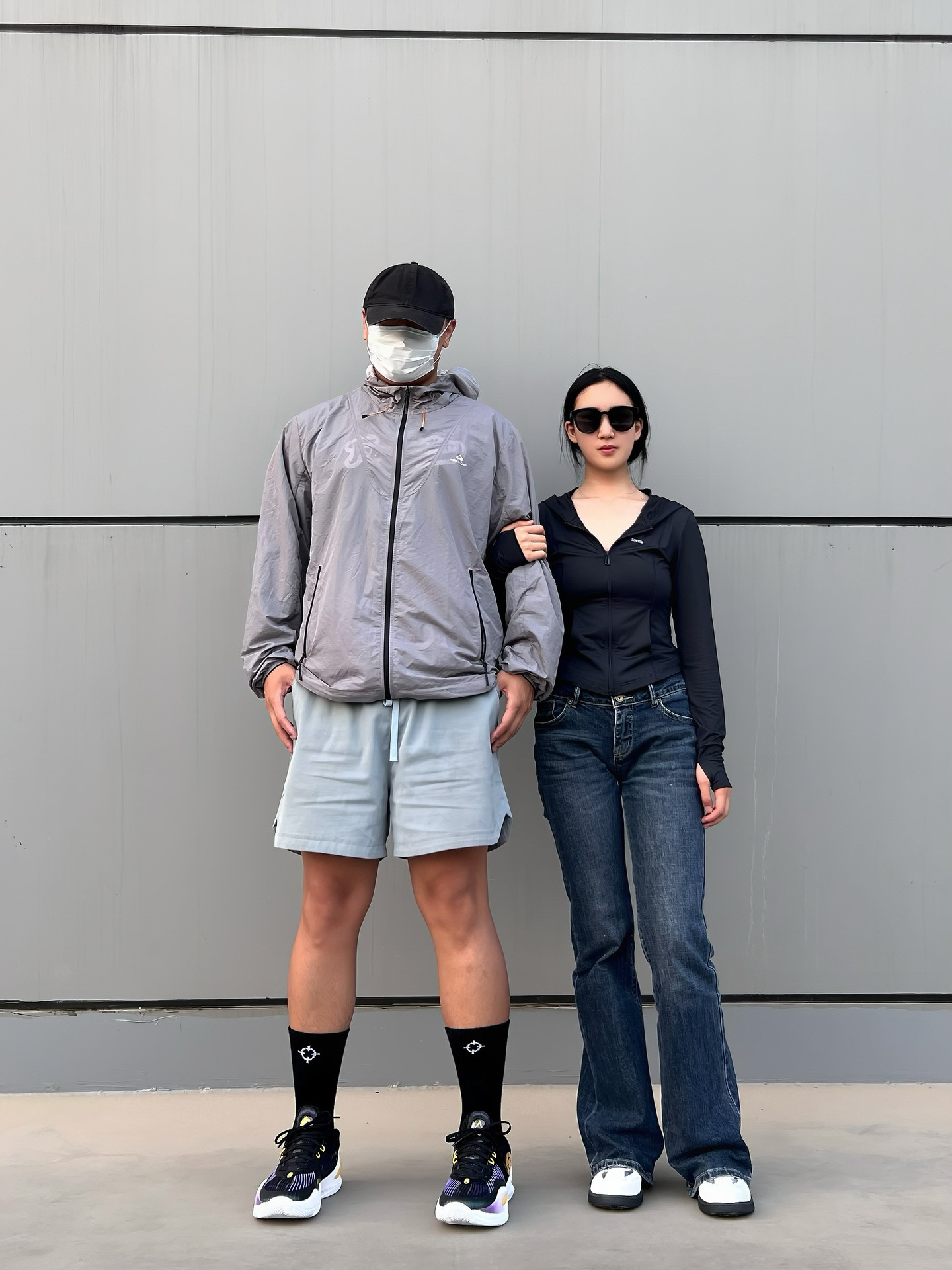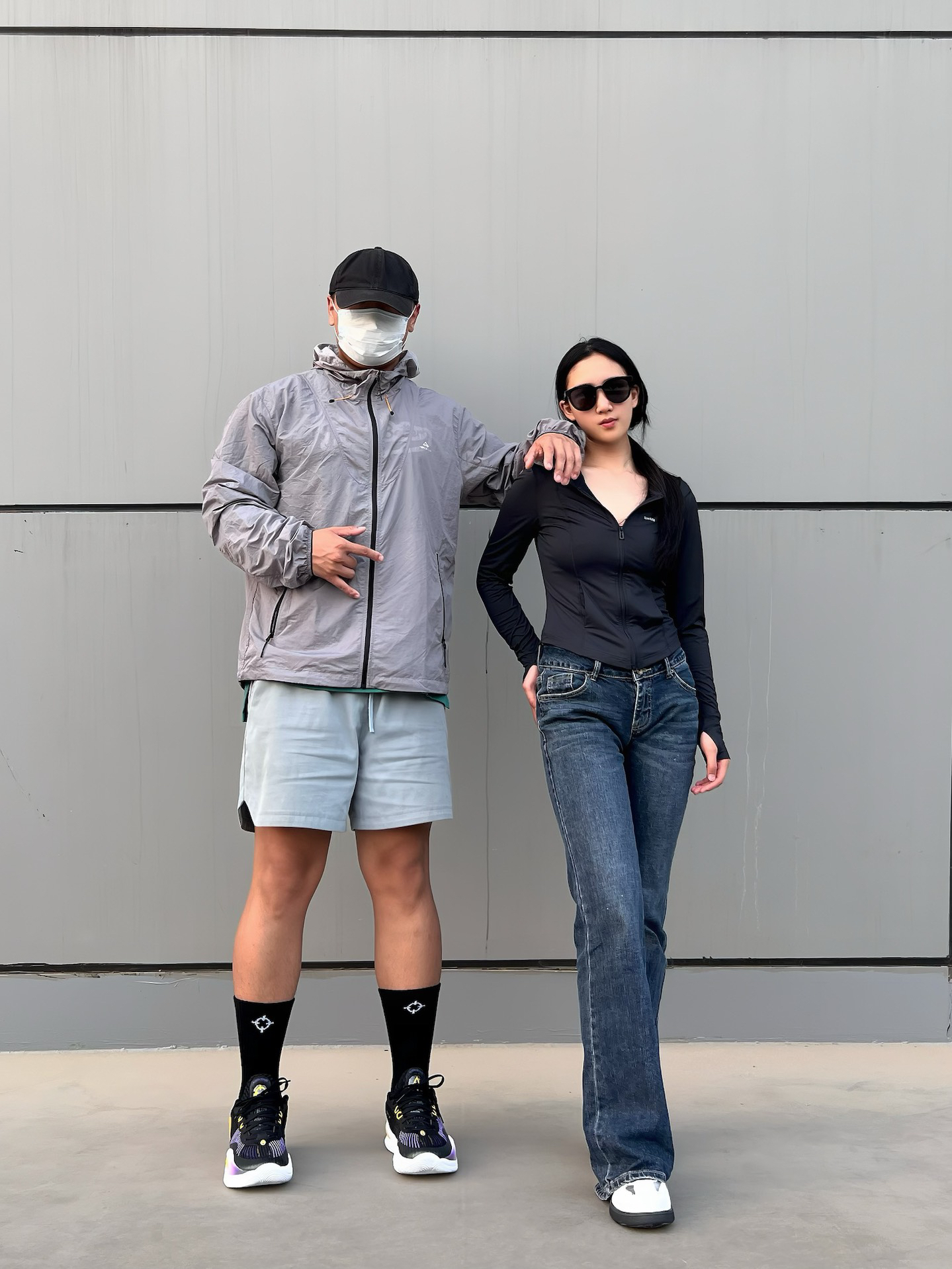 今天是夏季户外情侣休闲穿搭日常 🧑🏻深灰色的防晒衣,裤子选择一条纯色四分美式复古短裤,纯色搭配,休闲简约风,搭配一款黑色球鞋,今天是休闲运动风男孩儿! 👩🏻黑色修身防晒衣,夏季出行单品,裤子选择一款深蓝色修身牛仔裤,同样是纯色简约系穿搭,鞋子选择一双银白色德训板鞋,拿捏夏季休闲女孩儿! 这里是每天穿搭不重样喜欢留个关注吧!