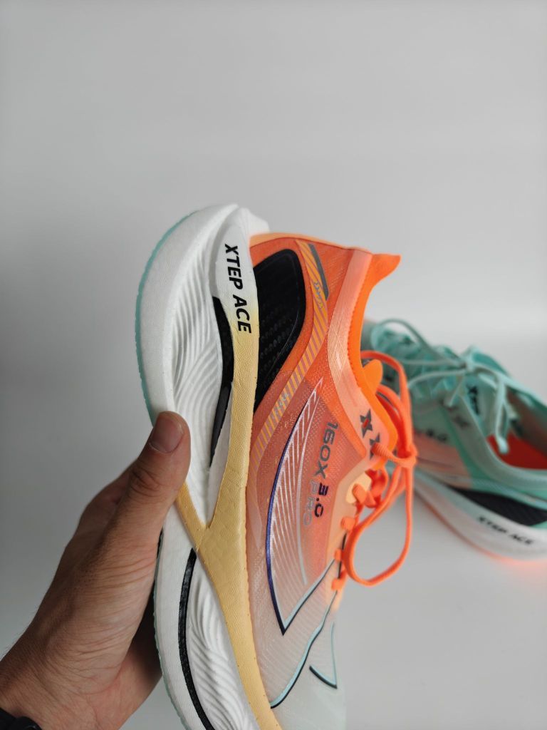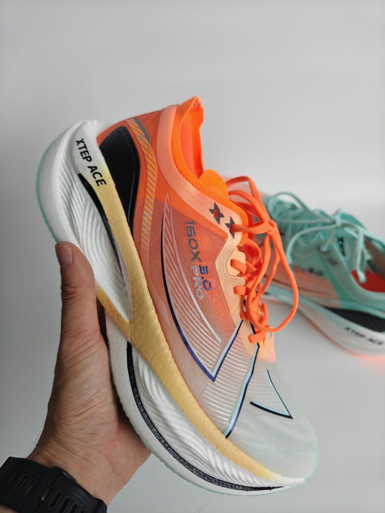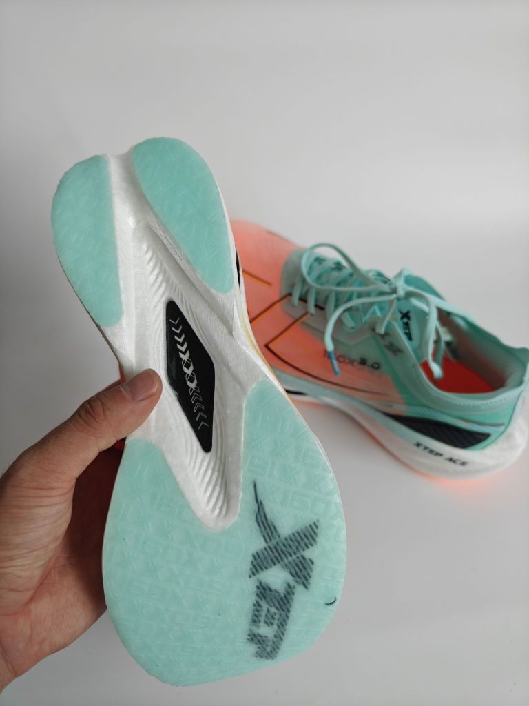 为什么说特步160X3.0PRO是国产跑鞋天花 板呢?看完你就知道了它的中底搭载特步最新研发STEPACE缓震科技!使用的是全球首创PISA超临界发泡技术发泡,PISA泡棉中底颗粒密度0.8g/cm,比头 发还轻盈15倍,根据特步提供的实验室数据,回弹率高达85%。加上马拉松级CPU大底的采用,可以说这是目前防滑和耐磨性能最出色的大底之一,它的耐磨里程可达到1500公里以上,彻底告别了以往碳板竞速...