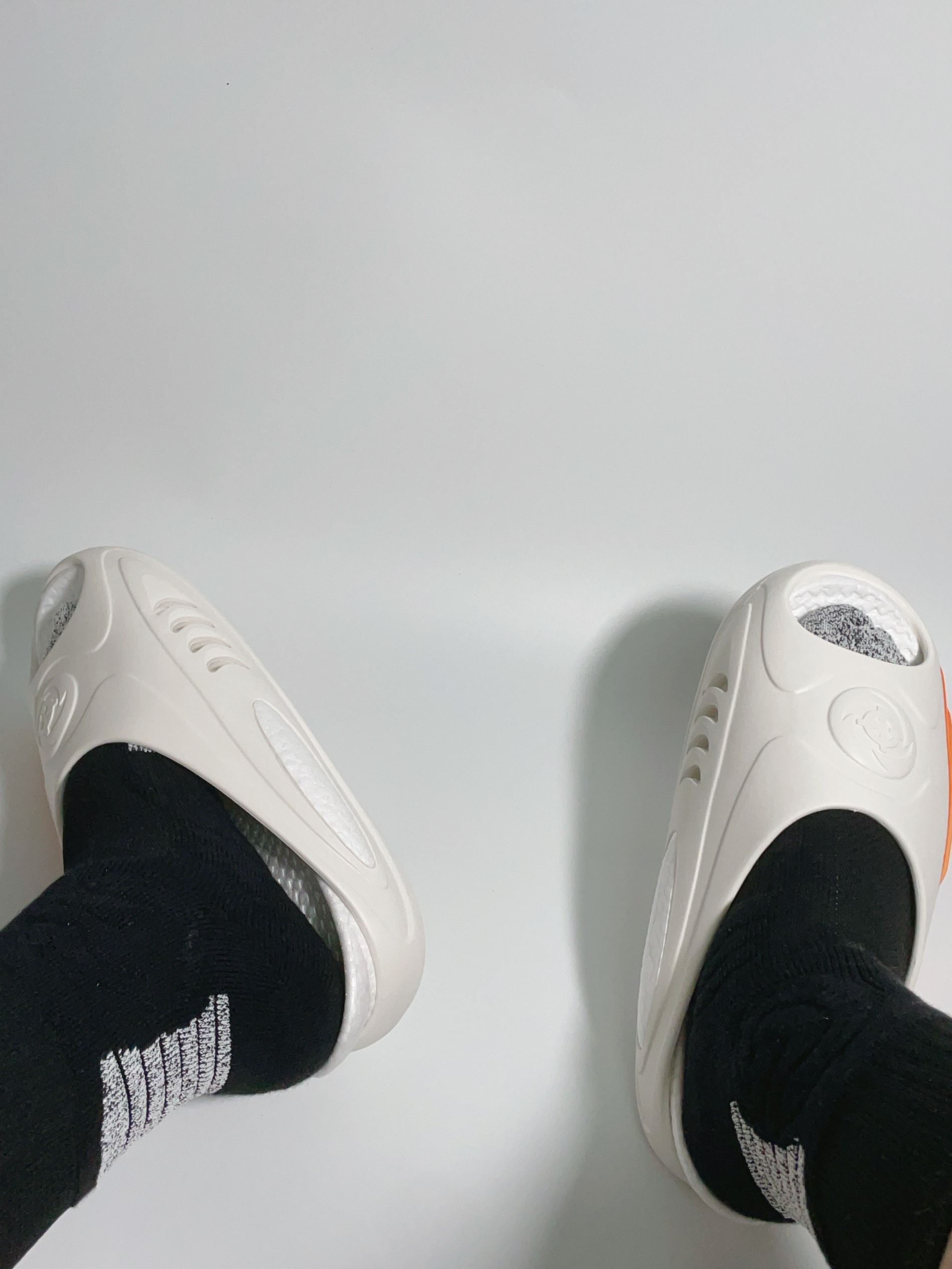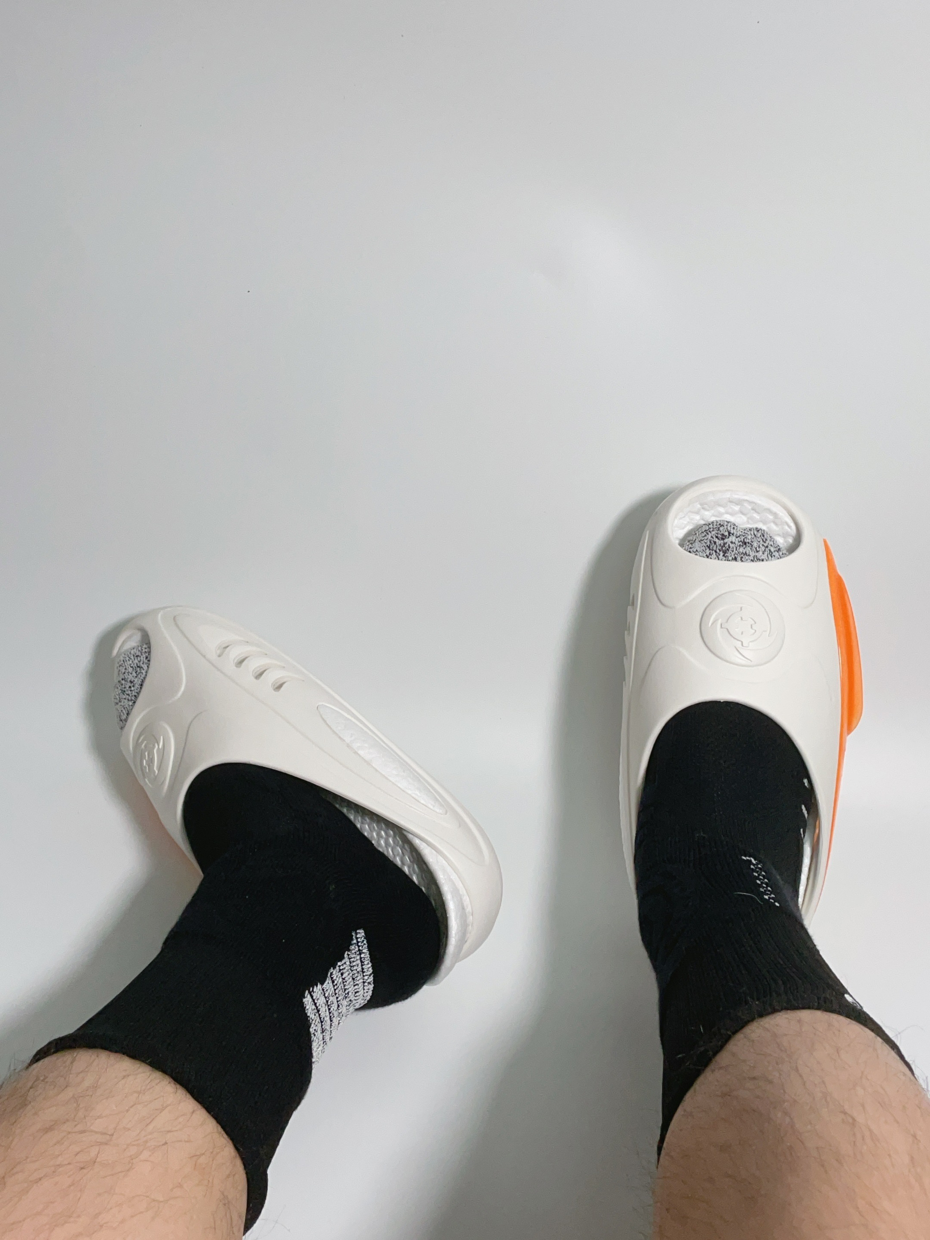 Oi!这里是每天都不想打工的打工仔 今天推荐的是准者的拖鞋 白橙的多巴胺配色真的太适合夏天了 不得不说准者在配色上动了心思的 而且上脚的舒适度也很不错 爆米花的鞋垫,上脚是很舒服的踩屎感 后跟还做了翘起的设计,可以防止鞋子经常掉 总的来说,100多价格,性价比很不错,推荐入手