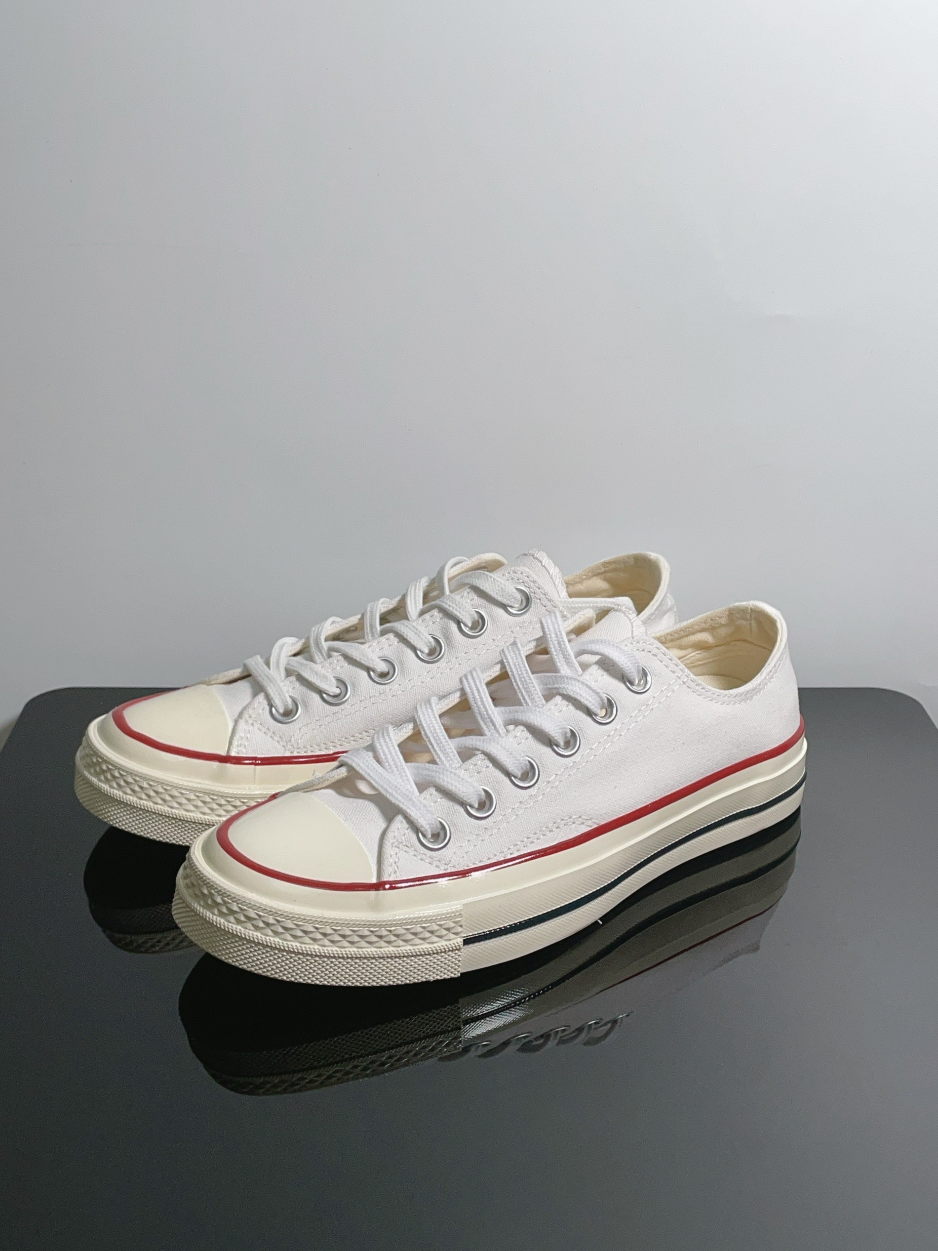 Oi!这里是每天都不想打工的打工仔 今天推荐的是MISTERY的帆布鞋 拍毕业照怎么少的了一双帆布鞋呢! 很喜欢这双小白鞋,很经典的日系复古风 白色的配色搭配红色的封边,这部妥妥校园剧男女主 上脚也很舒服,而且到手才2位数,很推荐入手