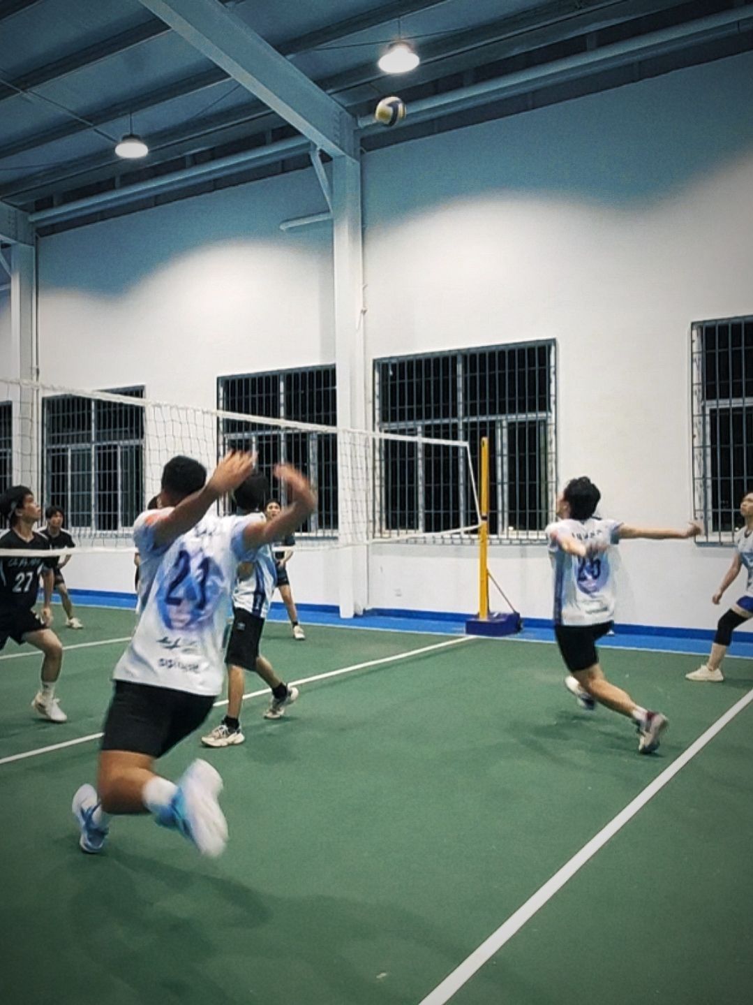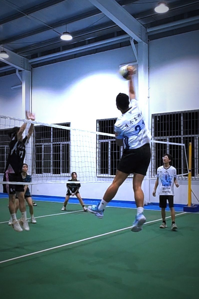 蓝色带给人一种活力青春的感觉,或者是舒服愉悦的大海。 在运动场上的蓝色更具有活力四射。 排球服是队伍定制的,主打透气速干,大面积印花尽显潮流。 短裤是准者的运动休闲裤,4分裤的感觉,不过膝显得腿长人高,日常百搭款。 Uzis家的袜子,带来更好的运动感,好穿不闷脚。 字母哥3篮球鞋,穿上感觉有点轻,前掌气垫回馈感觉不错,平时弹的多的朋友穿会事半功倍。