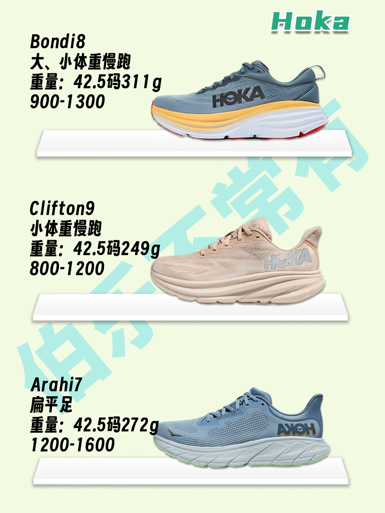面对琳琅满目的跑鞋,该如何挑选呢? 继上一篇李宁、nike、安踏、asics、阿迪、索康尼慢跑鞋,第二批品牌慢跑鞋来了! 希望能帮助大家,找到合适的跑鞋❤️ 其中大体重跑者是指体重大于180斤或BMI大于28。 BMI=体重(kg)/身高的平方(m2) 1⃣️Hoka Bondi8 Clifton9 Arahi7 2⃣️361度 Spire6 Centauri SE 赤焰3SE 3⃣️中乔 ...