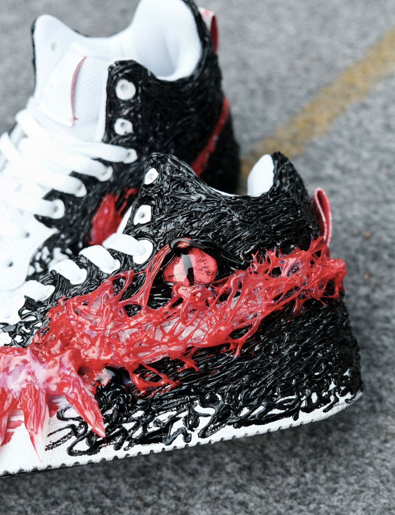 给我一种神秘感COOL👍 这款球鞋的外侧设计了尖牙立体装置,真的是太炫酷了! 每次我穿上它,都会感觉自己仿佛化身为恐怖电影中的人物🤩 球鞋的血红色logo质感也很棒,看起来非常有品质感。 每次我看到这个logo,都会被它的细节所吸引 最让我惊喜的是,这款球鞋侧面的眼睛设计。 每当我低头看自己的鞋子,都会感觉到一种神秘的力量在召唤我😎