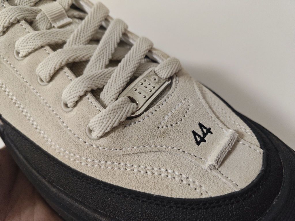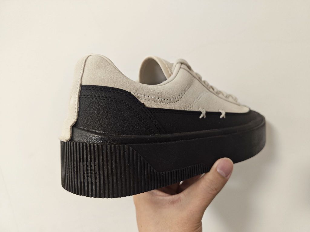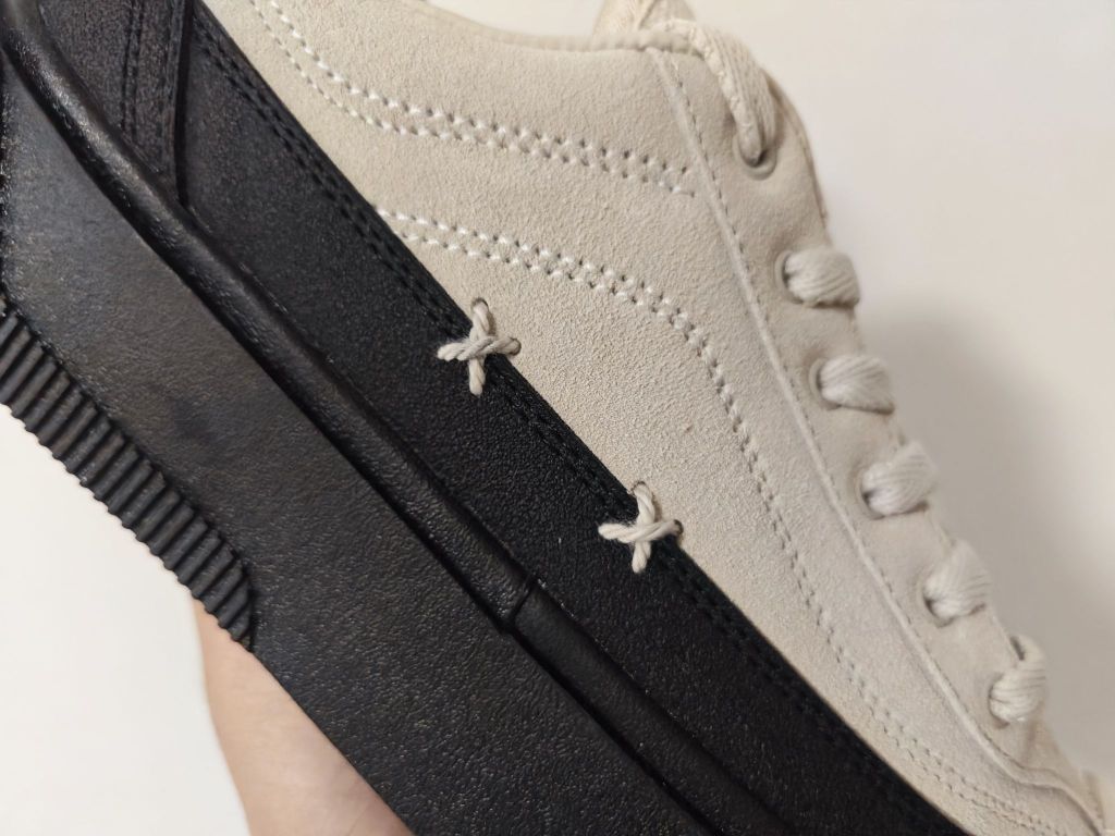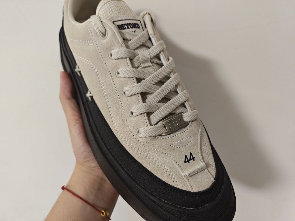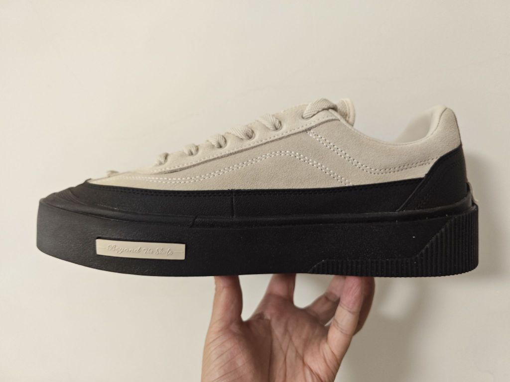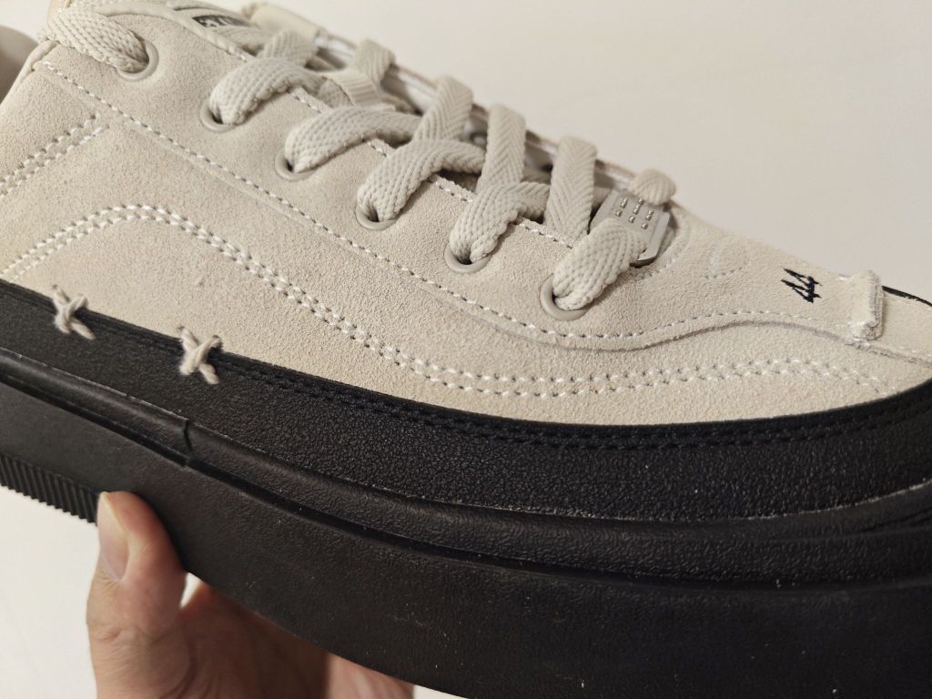 618刚刚入手的小板鞋,简约中带一点小个性,侧面的两个××很喜欢,鞋码也是直接刺绣在了鞋头上。 应该算是带点增高的鞋款了,看着鞋底非常的厚实,橡胶大底也兼顾了耐磨与防滑,黑色大底➕浅卡其的鞋面怎么搭都不会出错!!