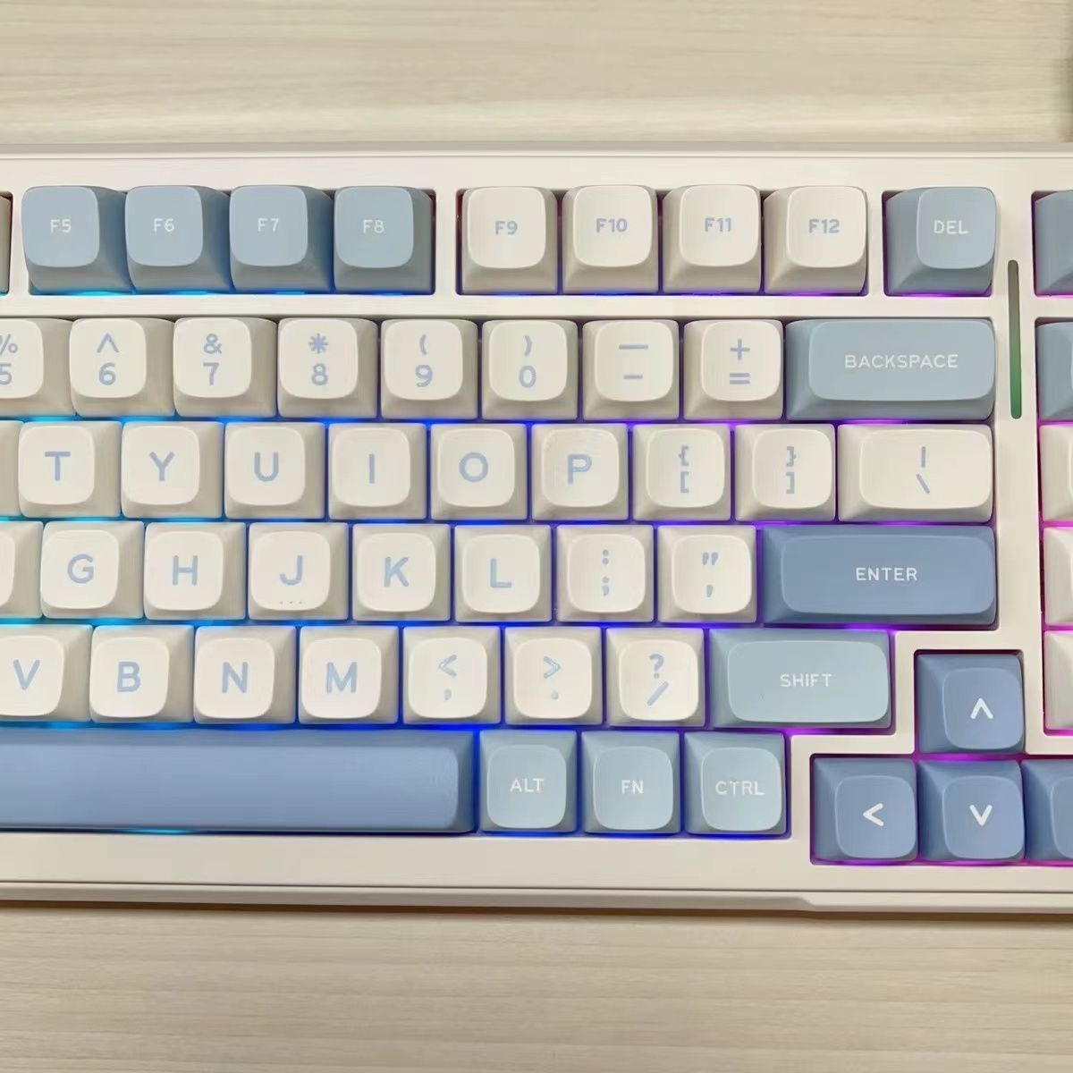 这是迈从K99,客制化机械键盘,挺好看的,平时都是用来打游戏很舒服,声音清脆,手感回弹力度刚刚好,对比迈丛的k87我觉得好不少,当然价格也贵一点,不过相对性价比还是不错的