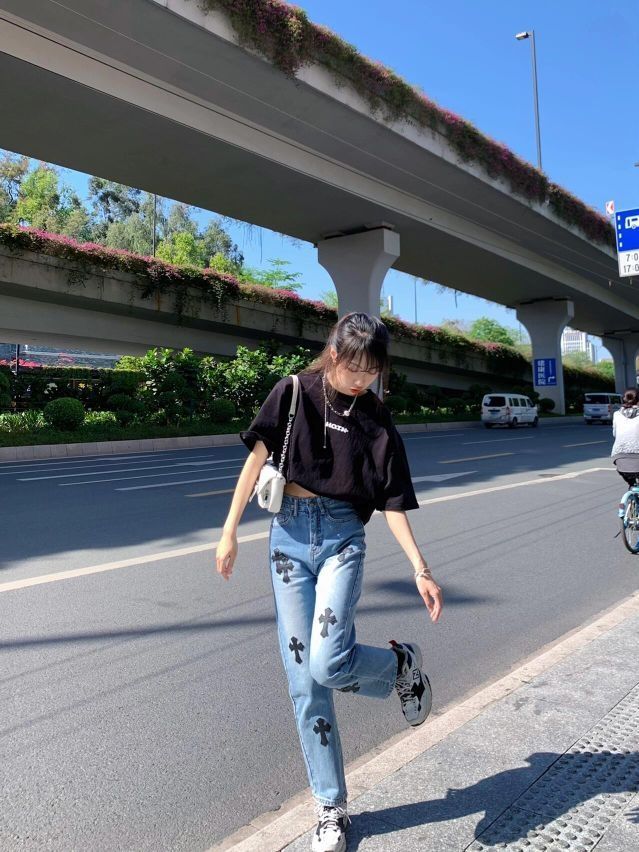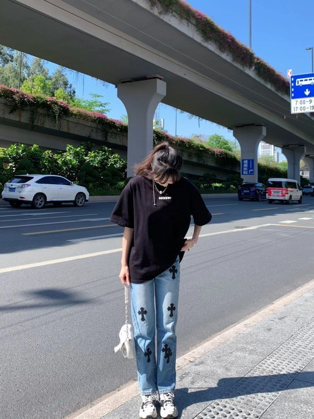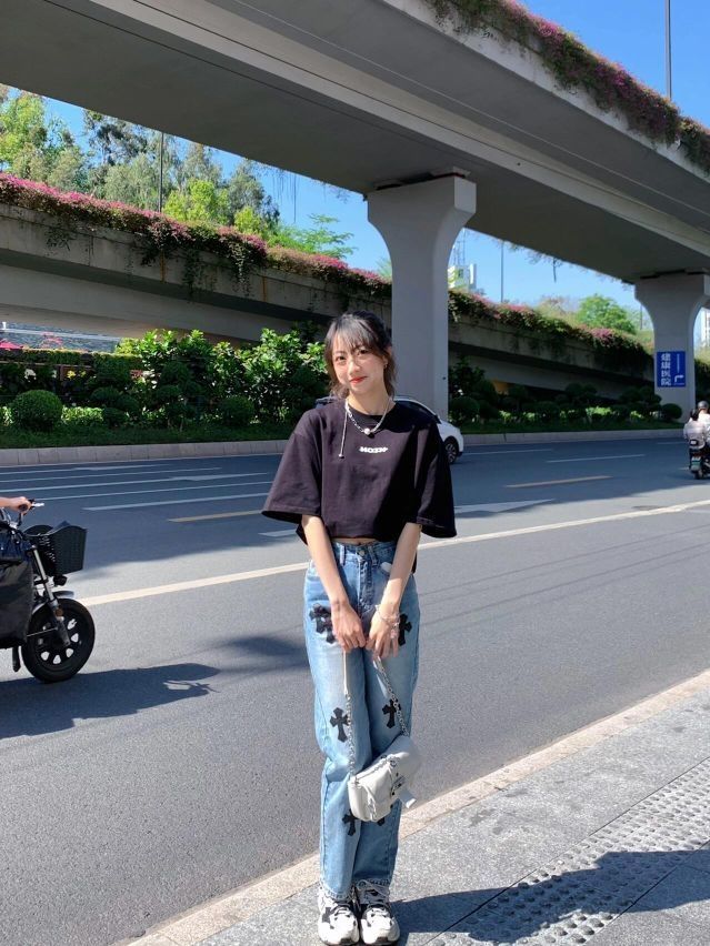 T恤的质感没得说~足足270g!喜欢后面的图案! 克罗心裤子也很绝!酷辣妹来!小个子高个子都🉑️! - 👔:HoverTrain(HOTN) 👖:木卡森
