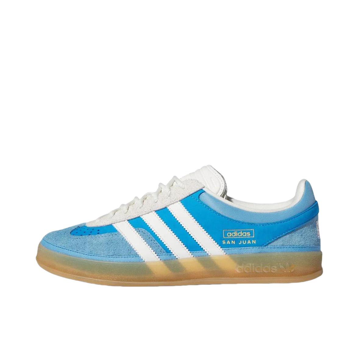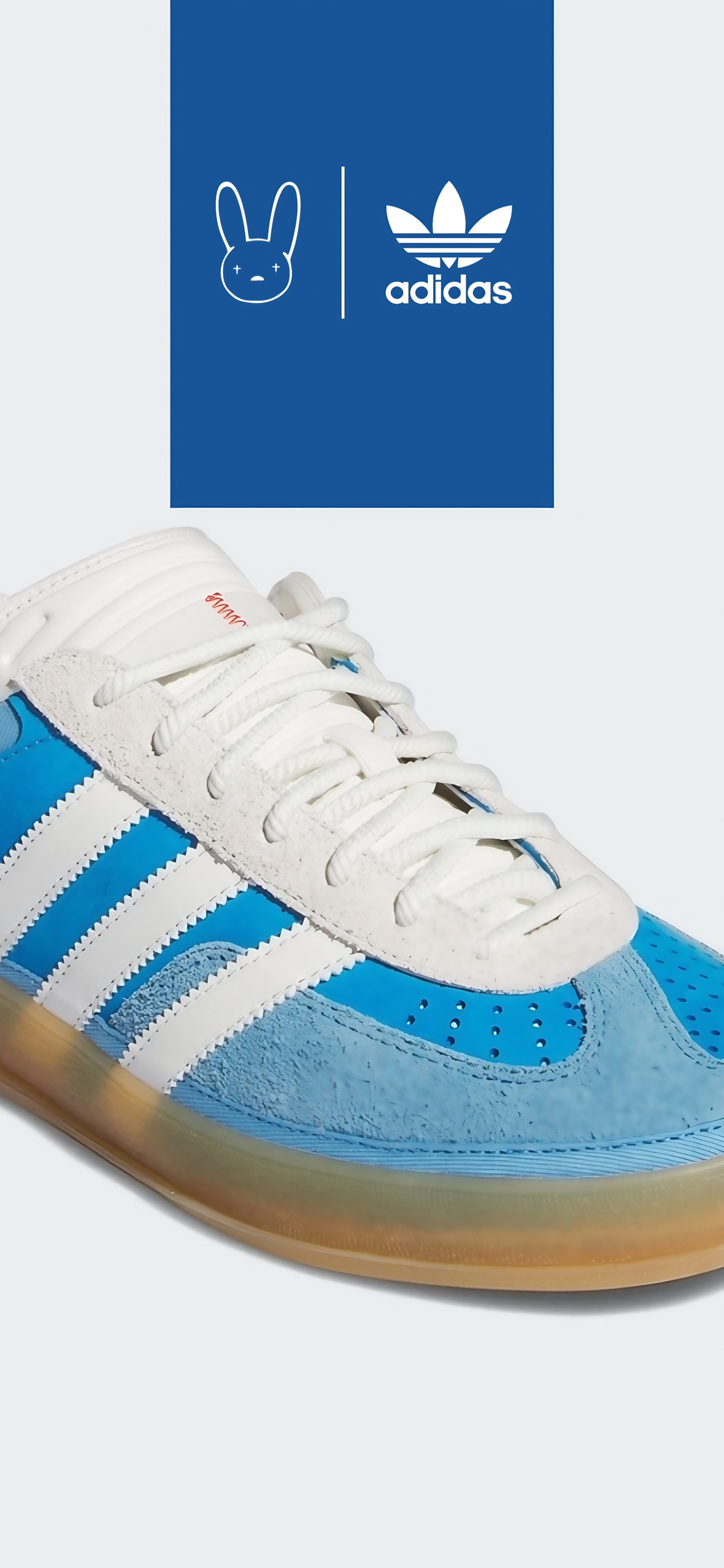 Bad Bunny x adidas Originals GAZELLEINDOOR 是阿迪达斯与说唱歌手 Bad Bunny合作推出的一款运动鞋。 整体采用蓝色为主色调,搭配白色的三条杠和半透明生胶外底。与常规 Gazelle Indoor 相比,该鞋型进行了加宽加厚处理,整体廓形更具“面包鞋”的味道;此外,还采用了“歪头”设计,对鞋面构造进行了大胆改动。
