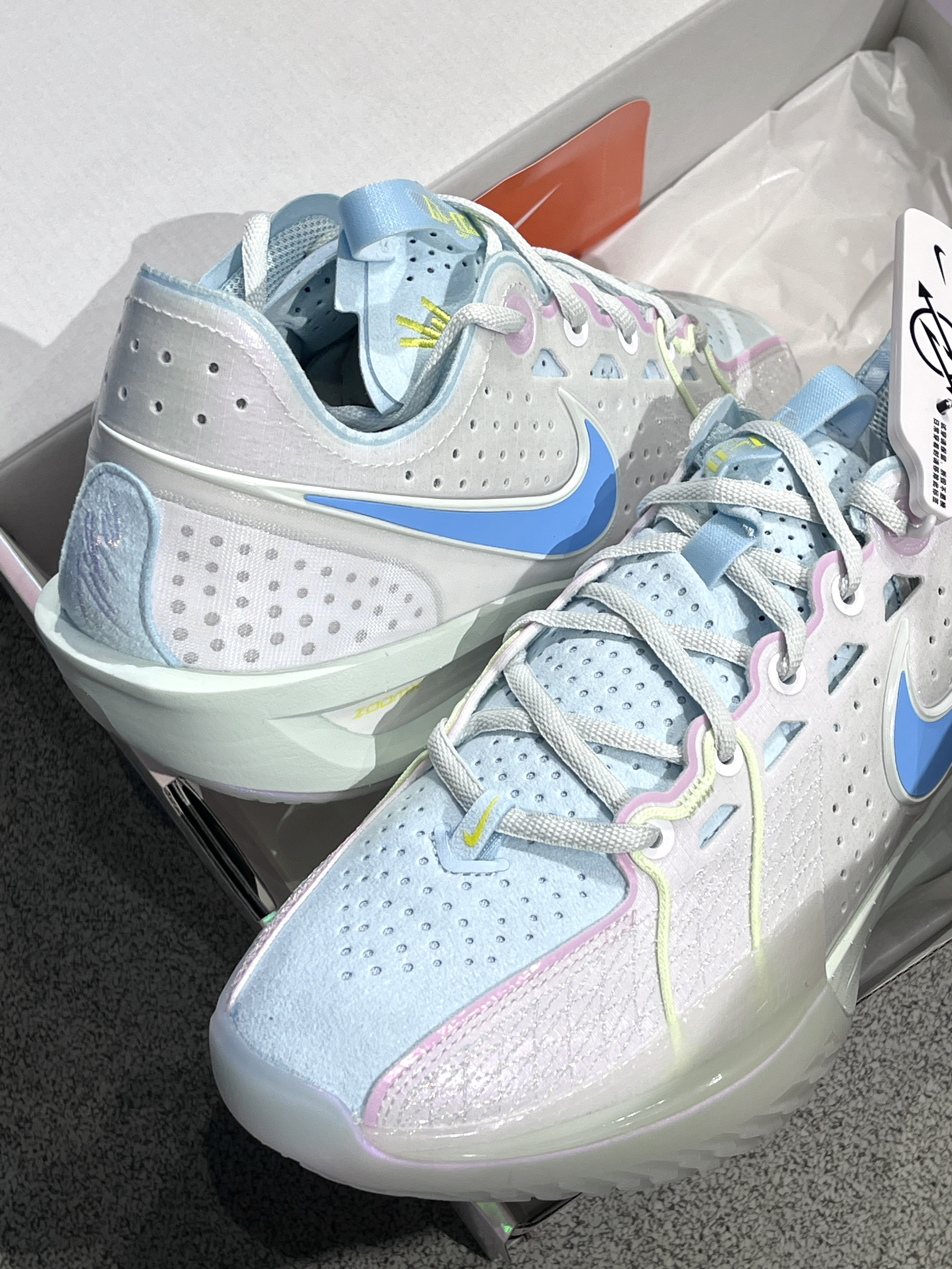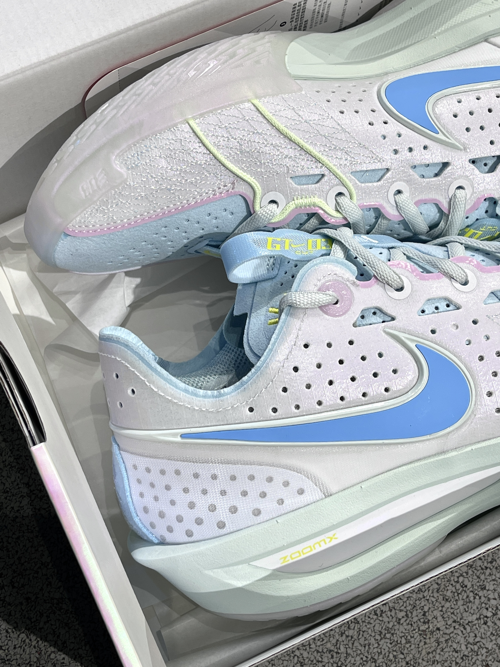 最新发售的Gtcut3你关注了吗,女篮队长杨力维专属定制!⛹️♀️ Nike|Air Zoom G.T. Cut 3 EP 低帮篮球鞋“粉色”💗,经典能打的cut3代鞋型,鞋面灵感来自杨力维家乡七彩祥云,不同角度有不同的色彩!细节满满~🥰