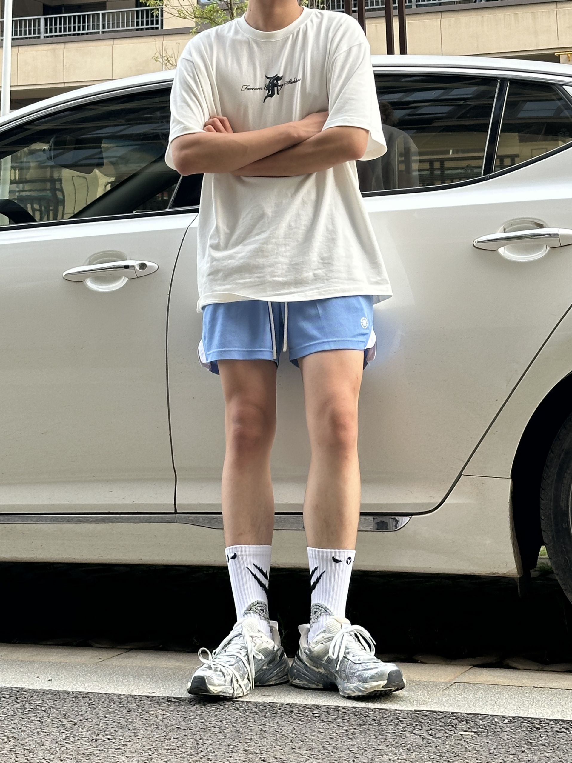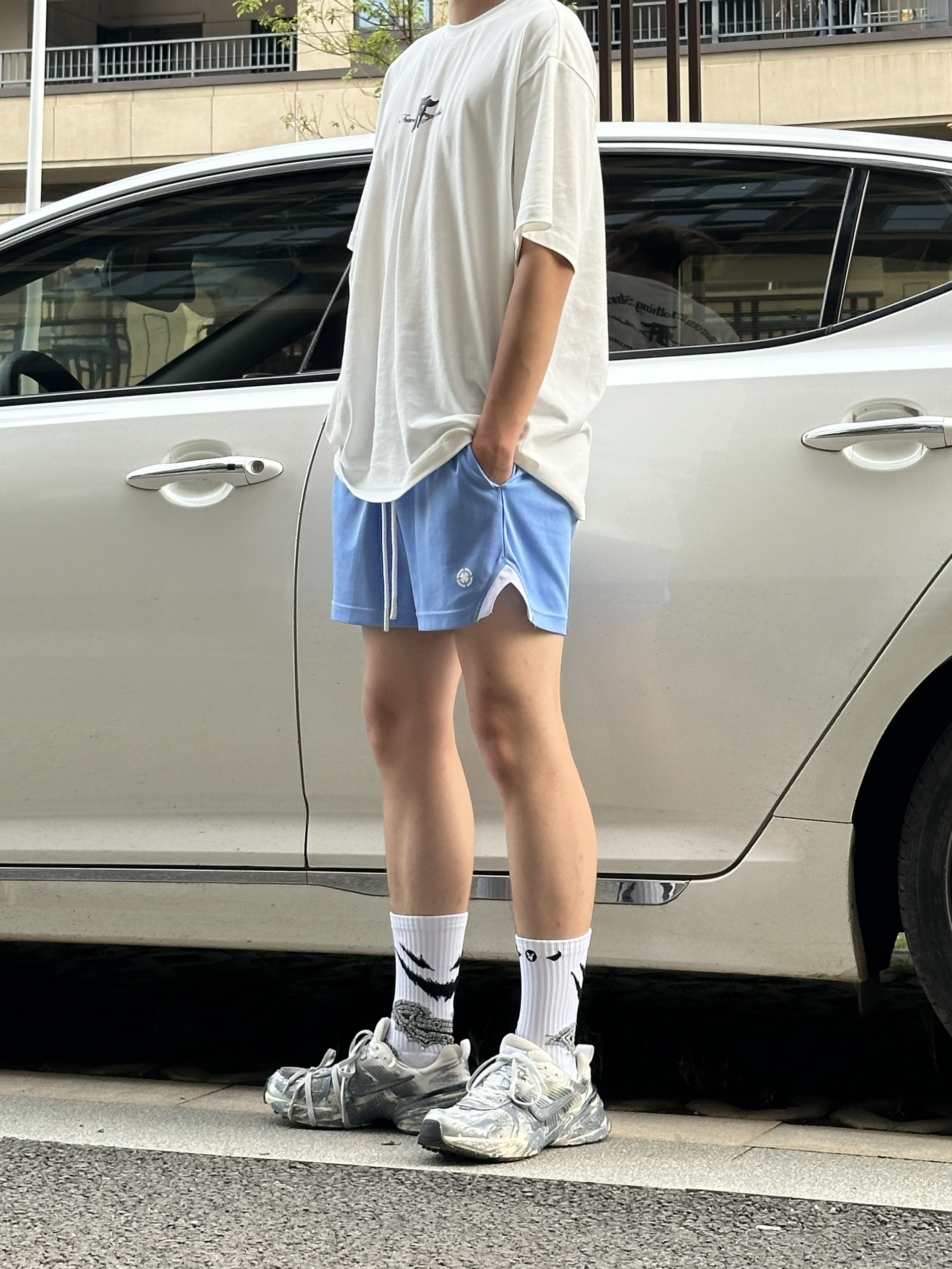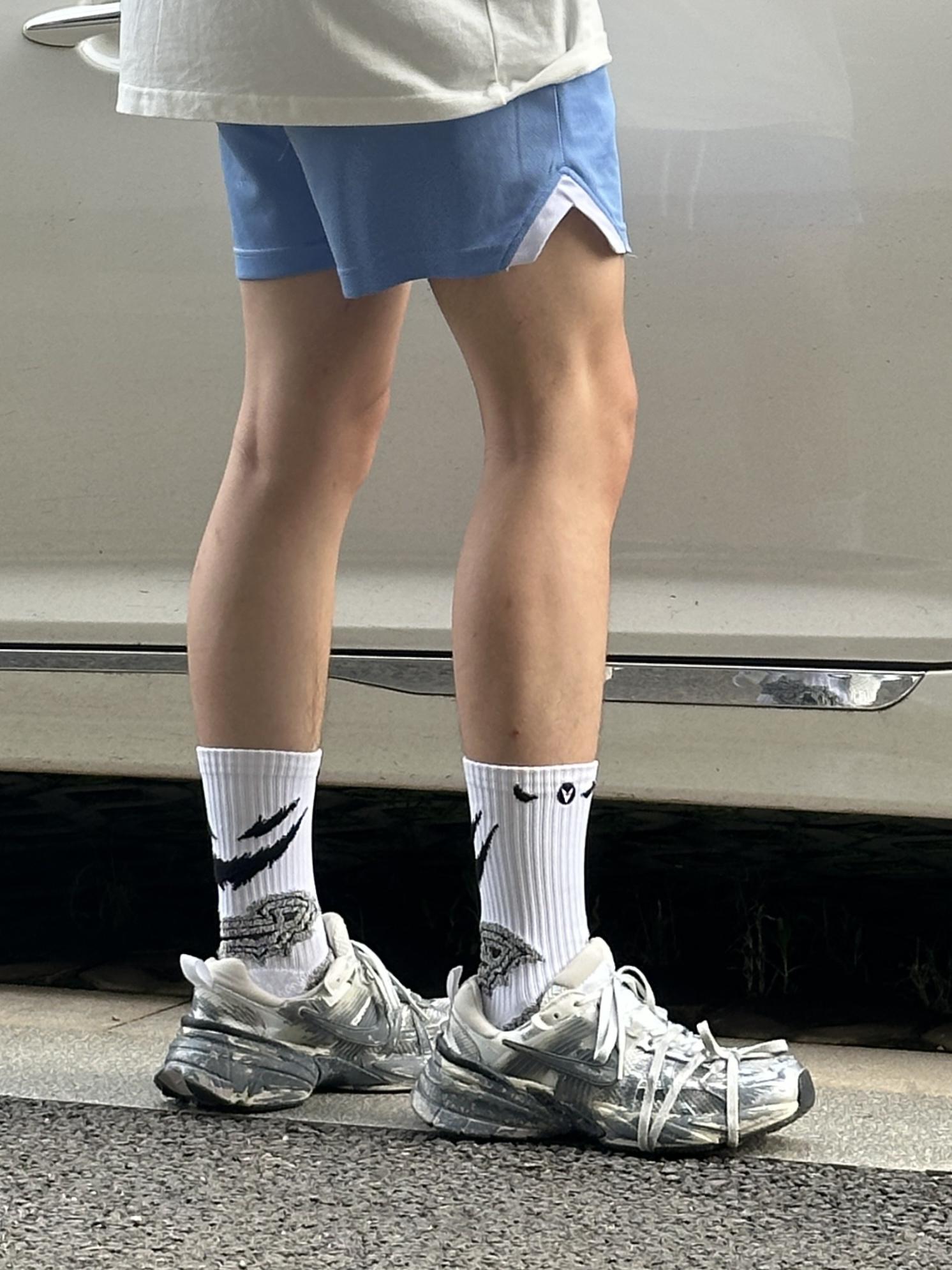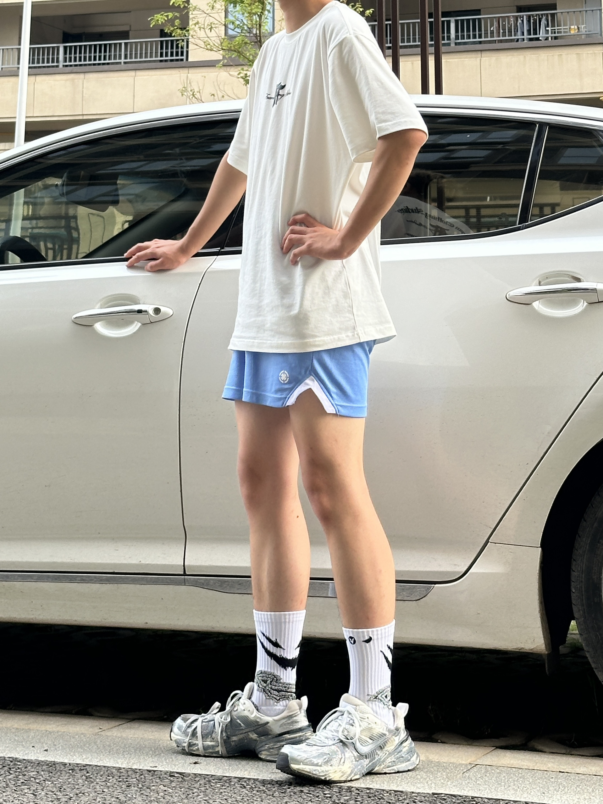 今天份穿搭分享 今天是一套简单的夏季穿搭 特别是这双nike的老爹鞋 这款是脏脏设计的鞋子的绘画 非常有味道 穿在脚上很帅气 也很舒服 还有很强的增高效果