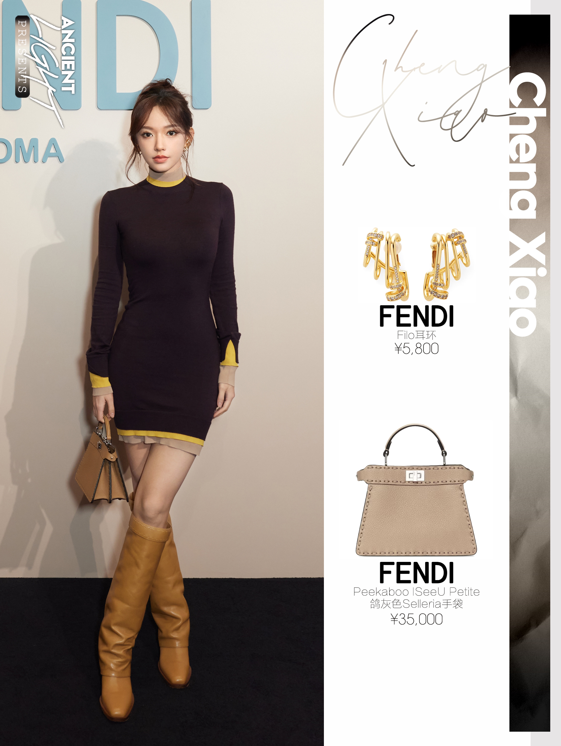 棕黄撞色被Fendi品牌挚友程潇提前演绎秋日物语,身着FENDI 2024秋冬系列撞色连衣裙搭配Peekaboo手袋,受邀出席FENDI 2024 秋冬系列预览活动。玲珑有致的好身材被裙装加持下显得愈发有看点。 服饰|FENDI FALL WINTER 2024 LOOK 31 耳饰|FENDI Filo耳环 货号8AK596A44GF089U 手袋|FENDI Peekaboo ISee...