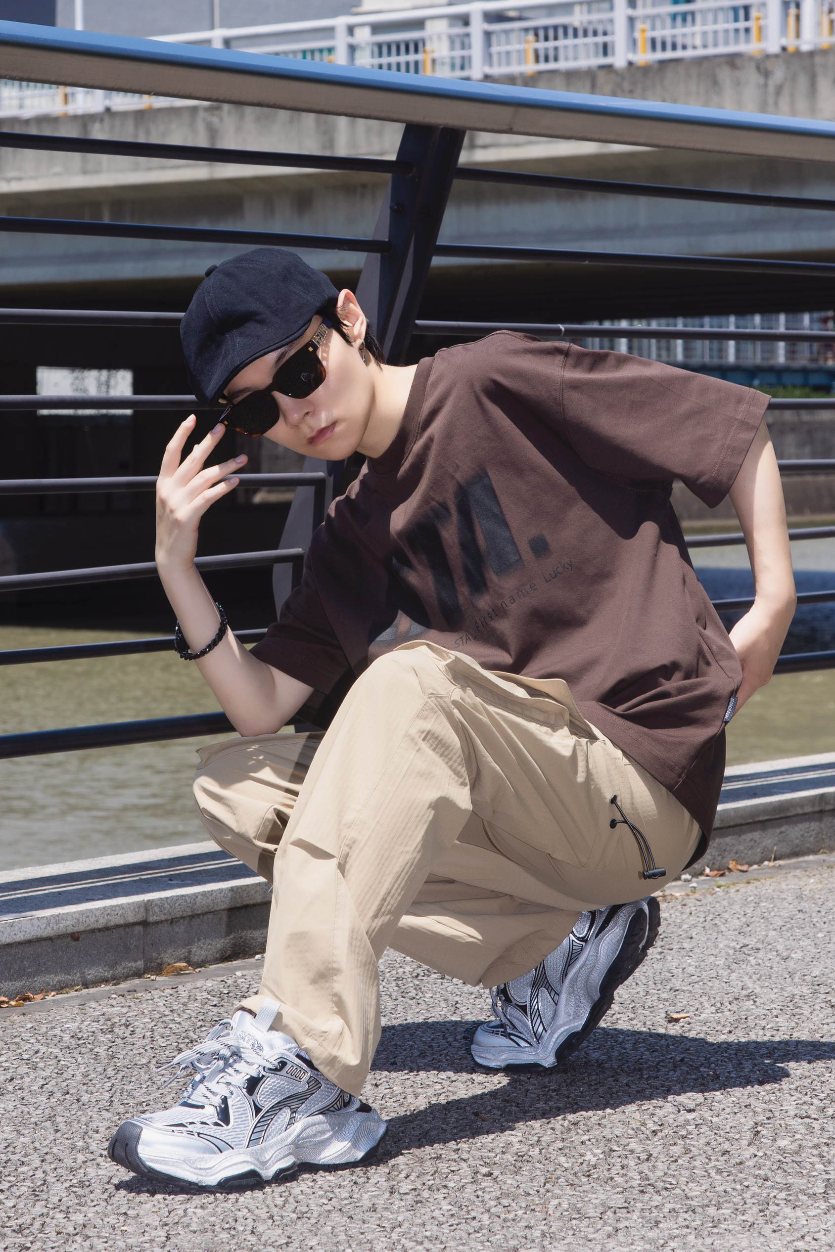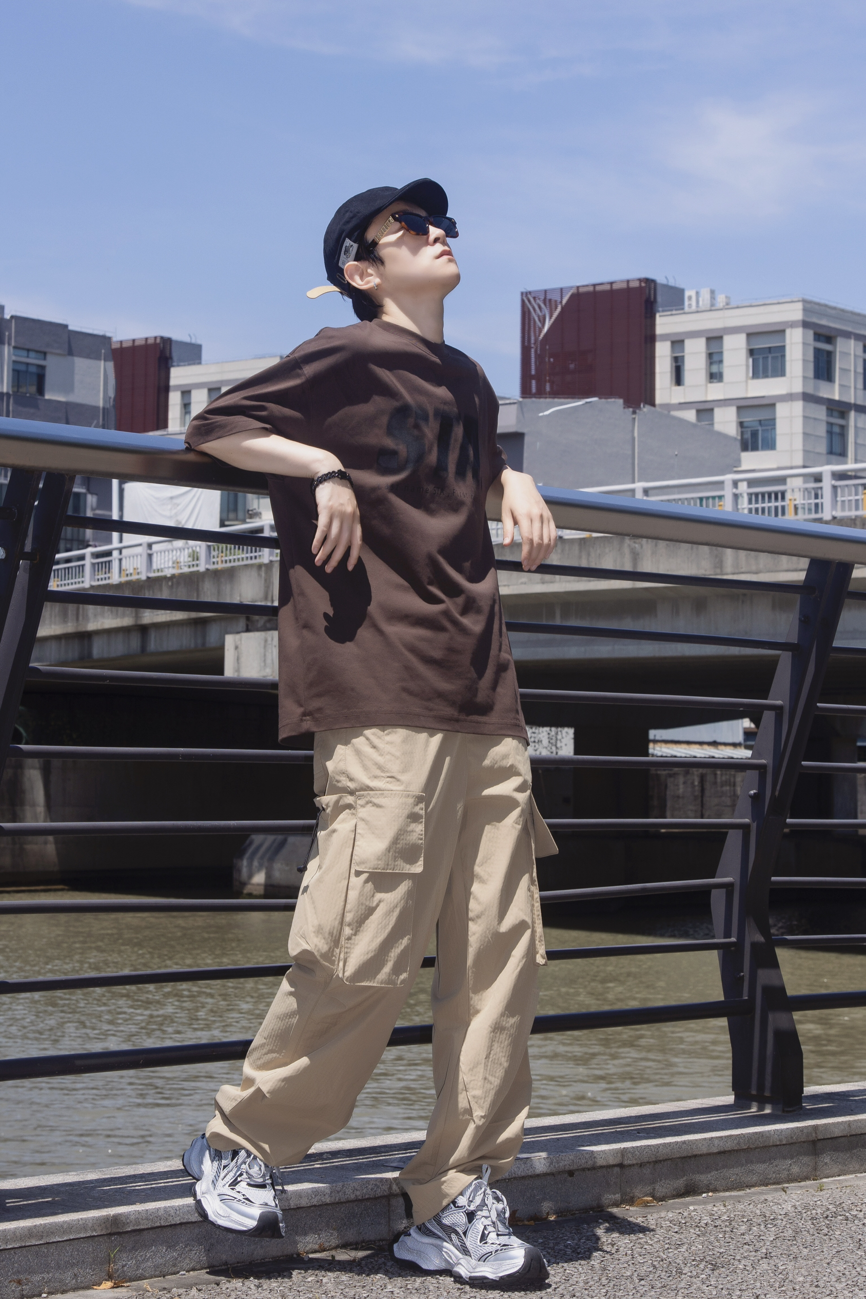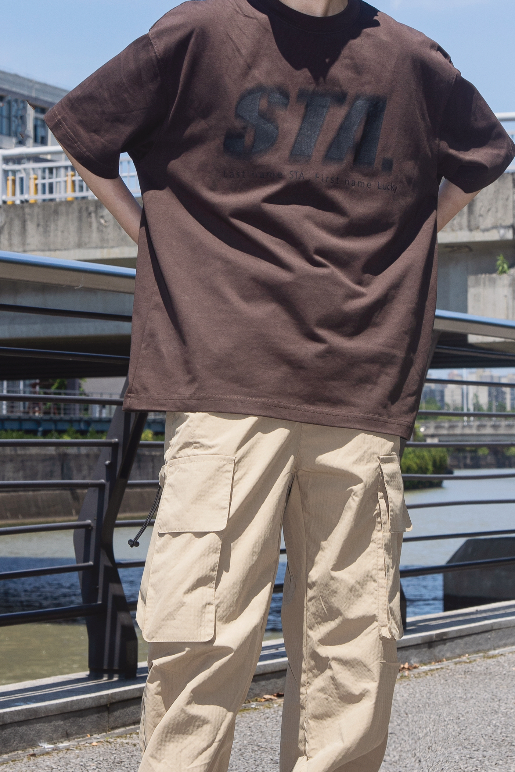 夏日一杯冰拿铁 活力满满一整天 分享一套奶咖味的复古街头穿搭 穿搭指南: 上身一件棕色短袖T恤 宽松的版型搭配黑色字母印花复古随性 下身搭配一条卡其色工装裤 大口袋设计 休闲舒适 很有街头味 戴一顶黑色复古贝雷帽点缀一下 整套大地色系 同色系不同色调搭配很夏天