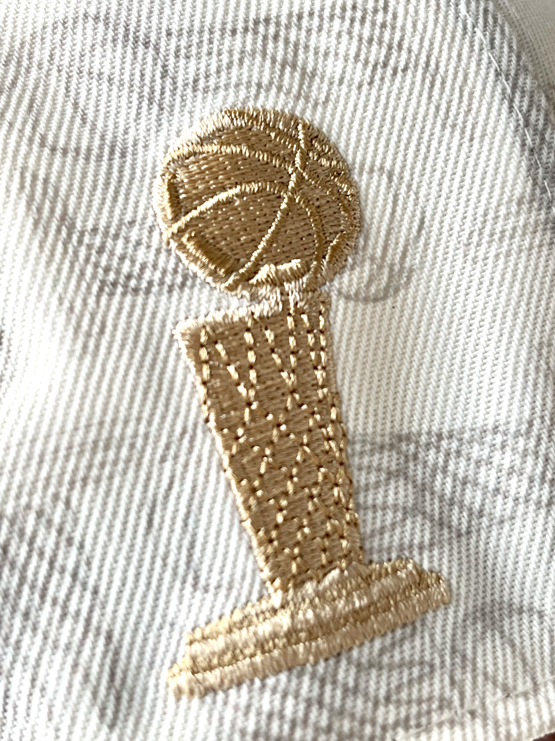 2023—2024NBA总冠军的纪念帽 测评了一下其他周边,出了两件T恤、一个徽章、金球票。个人感觉这个帽子是最具性价比的。T恤虽然便宜,但仔细看夺冠球员版的是钩子的,NBA出的只是球迷版。图案和球员版前后对掉了。而这顶帽子是真真正正的球员版!重工的针织图案!冠军奖杯的底纹加上金闪闪的奖杯🏆图案和冠军字样的刺绣,无一不彰显世界之巅的荣耀!质感非常棒!作为纪念品也非常有收藏的价值! 潺潺流水终于又穿...