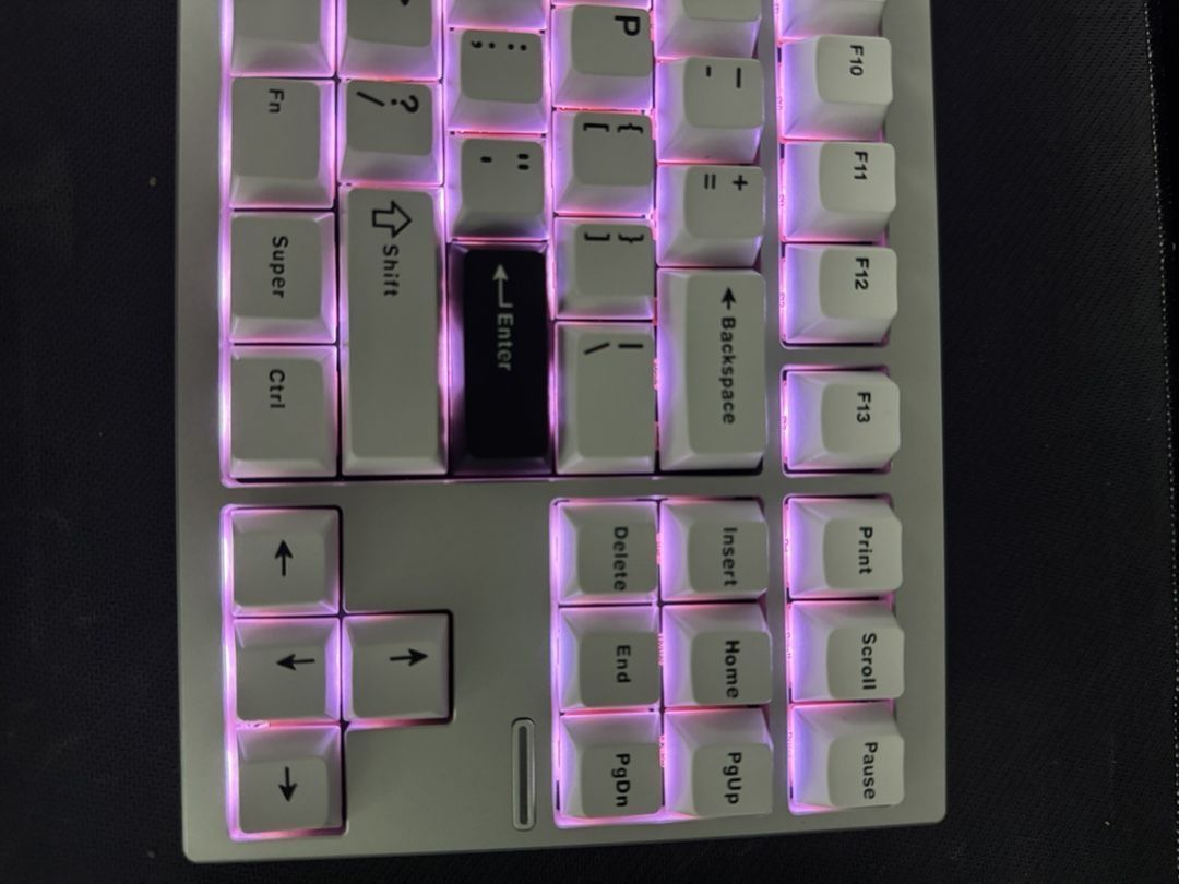 这是迈从Gx87 极简银 烈焰橙轴 纯CNC一体成型,质感做的很好,想要质感的很值得入手 还有就是rgb灯效我觉得做的非常好看,不晃眼但是很炫酷 它的几个配色都做的很好看