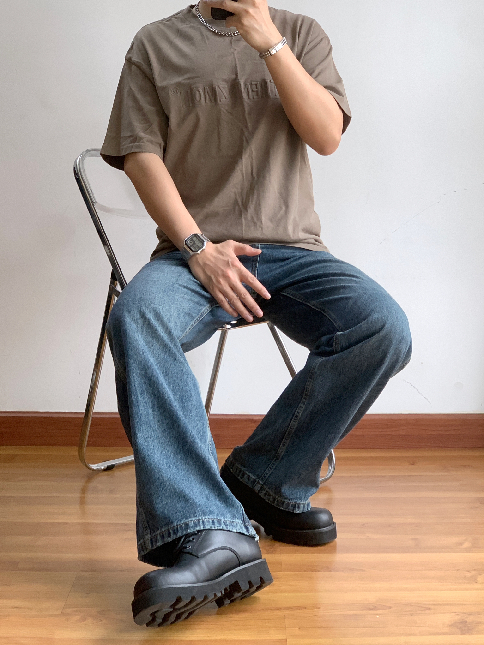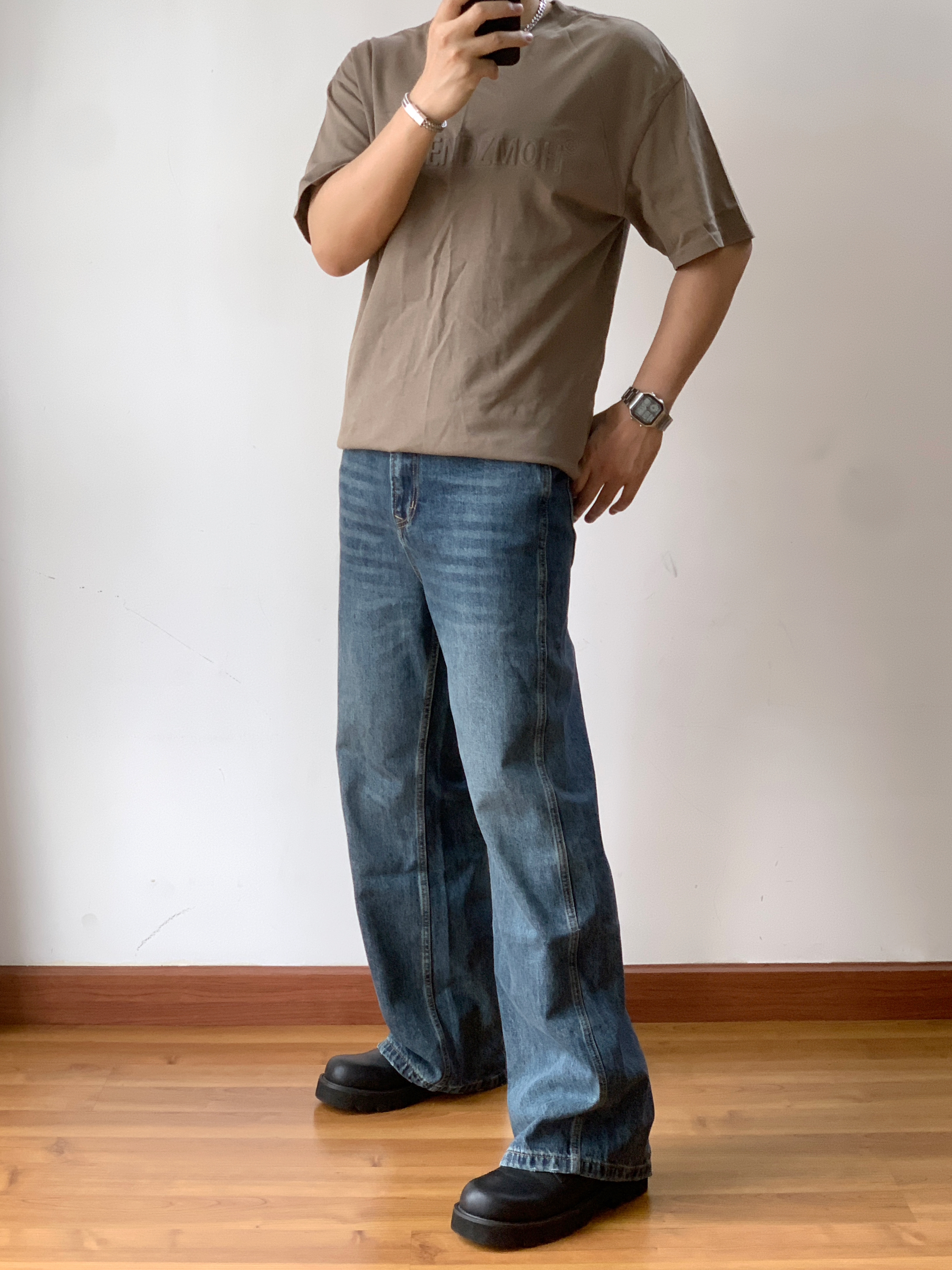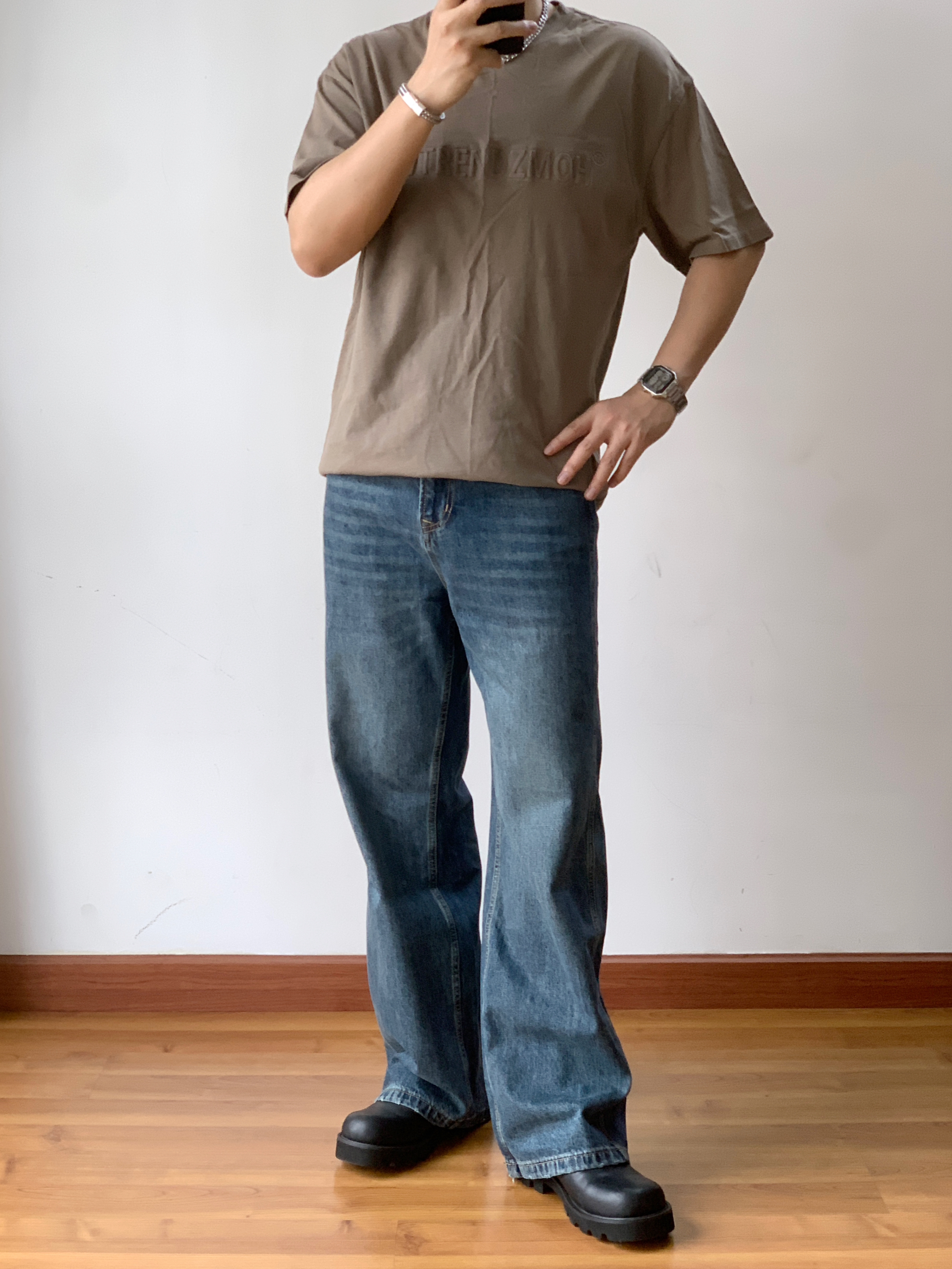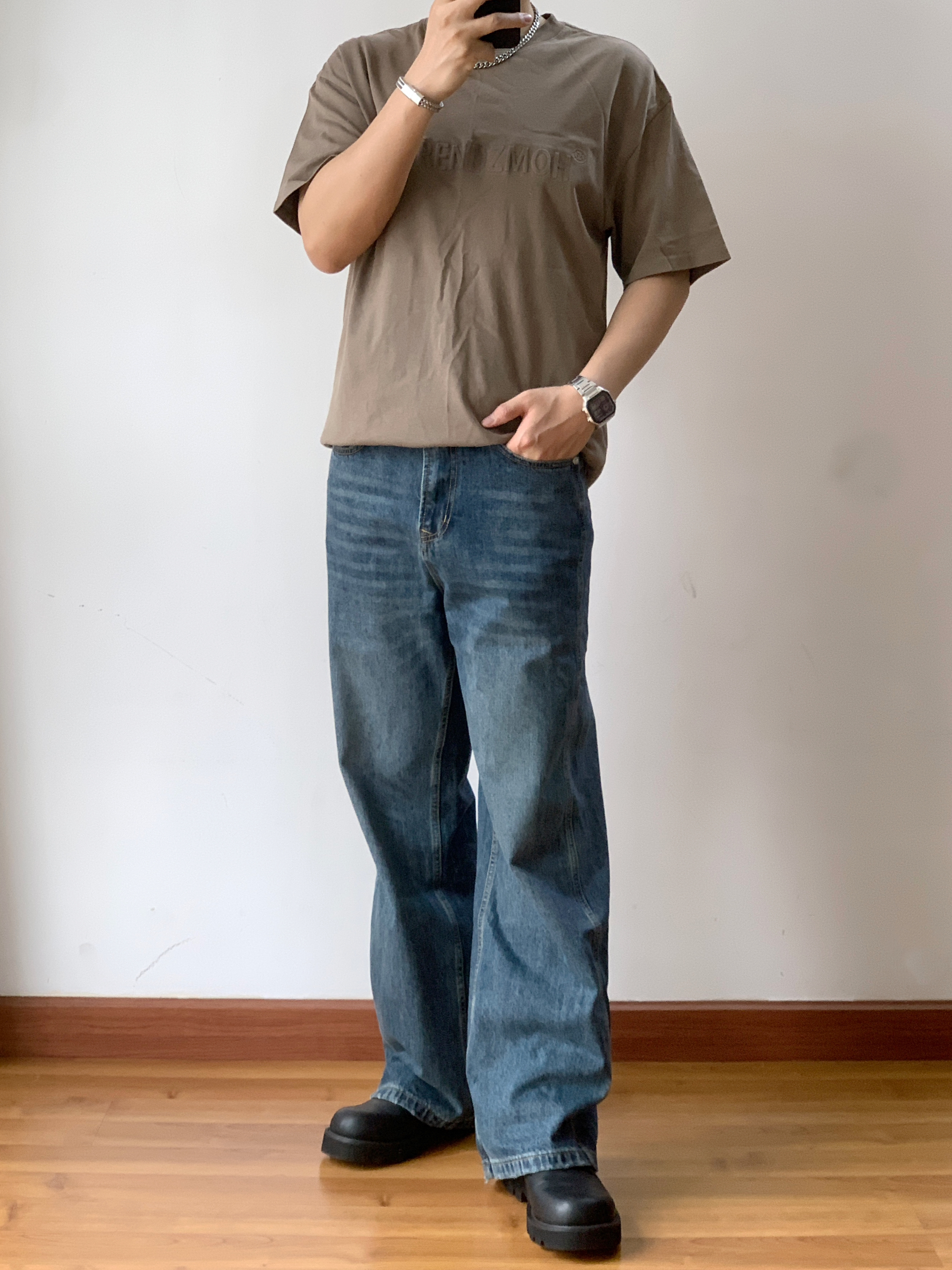 🌟灰绿色钢印T恤:时尚又不失个性🔥 首先来说说这件灰绿色的钢印T恤吧!👕这款T恤的颜色非常独特,既不是传统的黑白灰,也不是烂大街的鲜艳色系,而是这种很有质感的灰绿色。穿上它,就仿佛拥有了一种低调而又不失个性的魅力。😎而且,这款T恤的面料也很舒服,穿在身上感觉超级舒适!😌 复古阔腿牛仔:复古风潮再起!🌊 然后是这套搭配的另一大亮点——复古阔腿牛仔裤!👖这款牛仔裤的设计非常复古,阔腿的设计既可以遮挡...