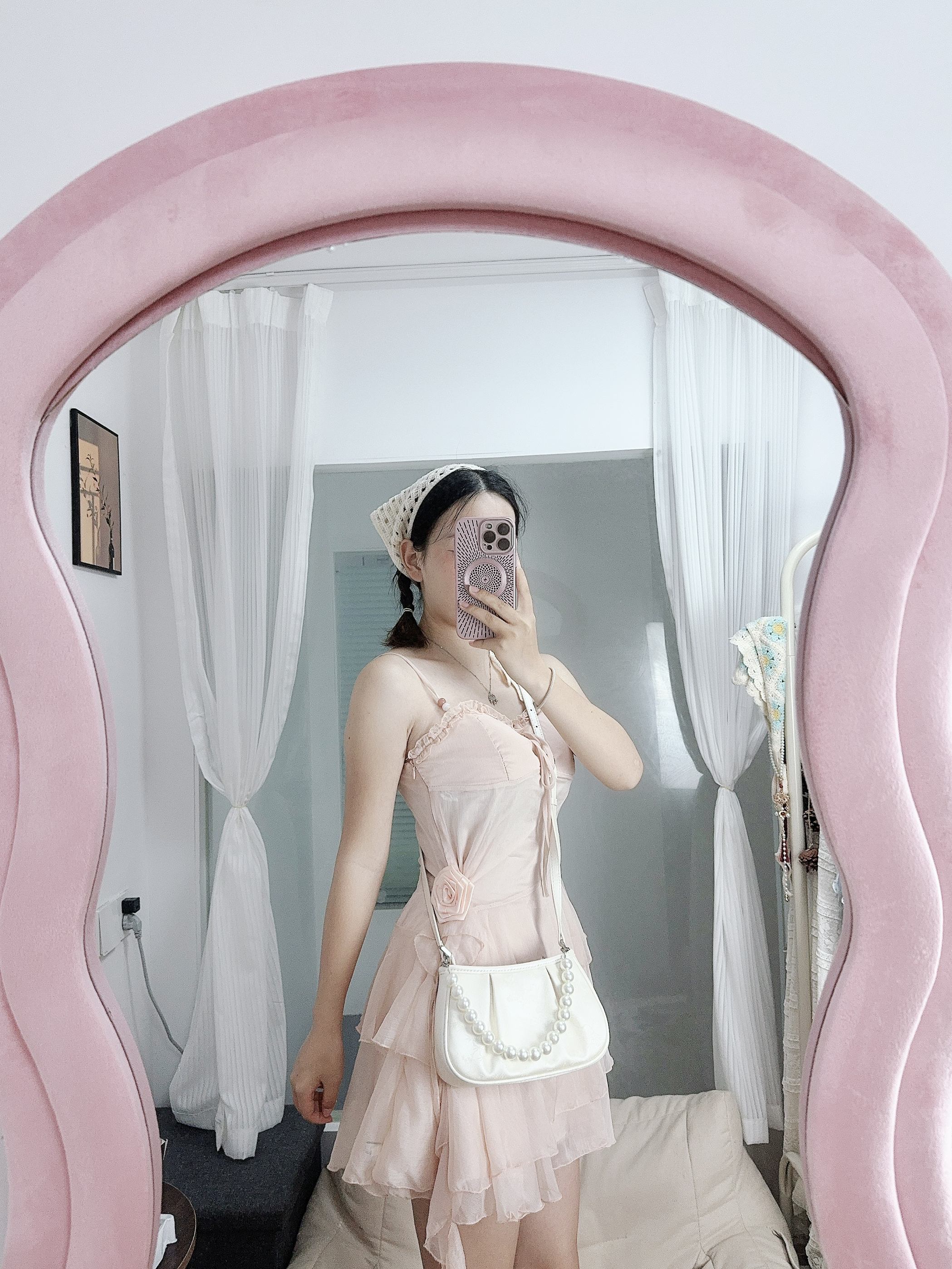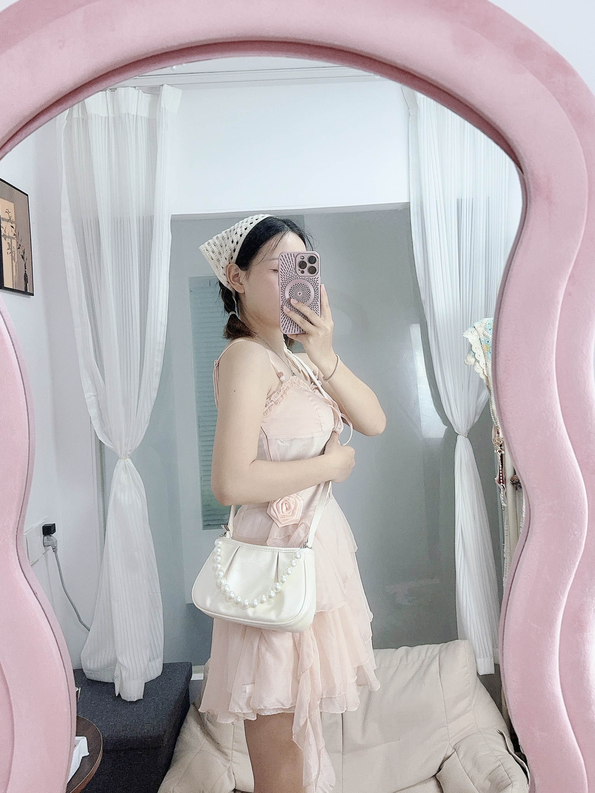 今天是大梦梦的新中式小包包 包包整体都是花纹刺绣图案 若隐若现的新中式特色加上了珍珠链条&更加优美 背上好好看,搭配小裙子很美