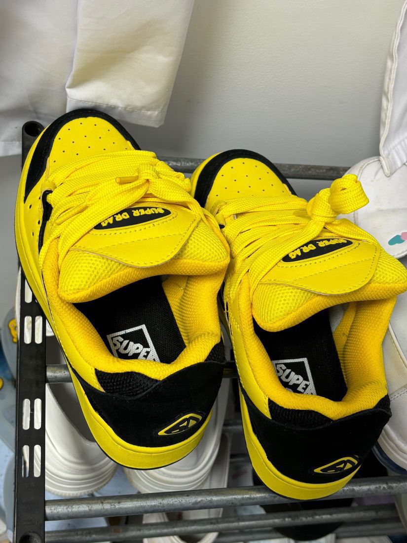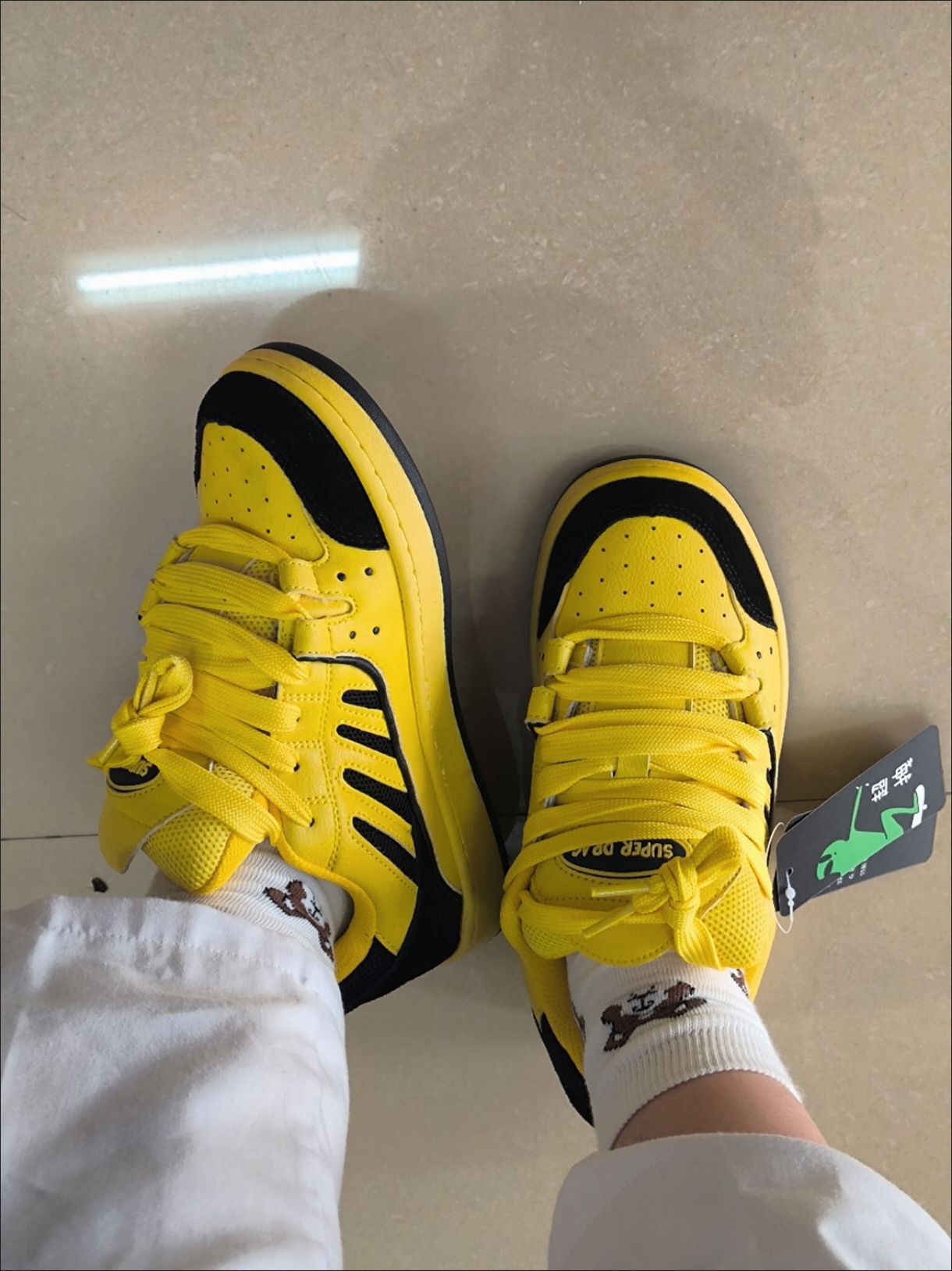 🛒好物名称:超拽SUPERDRAG 面包鞋原创 🤔推荐理由:超拽SUPERDRAG的面包鞋以其独特的设计和复古风格,成为了不少时尚潮人的选择。这款黄色的情侣板鞋,以其百搭的特性,无论是搭配牛仔裤还是休闲装,都能展现出青春活力和个性风采。