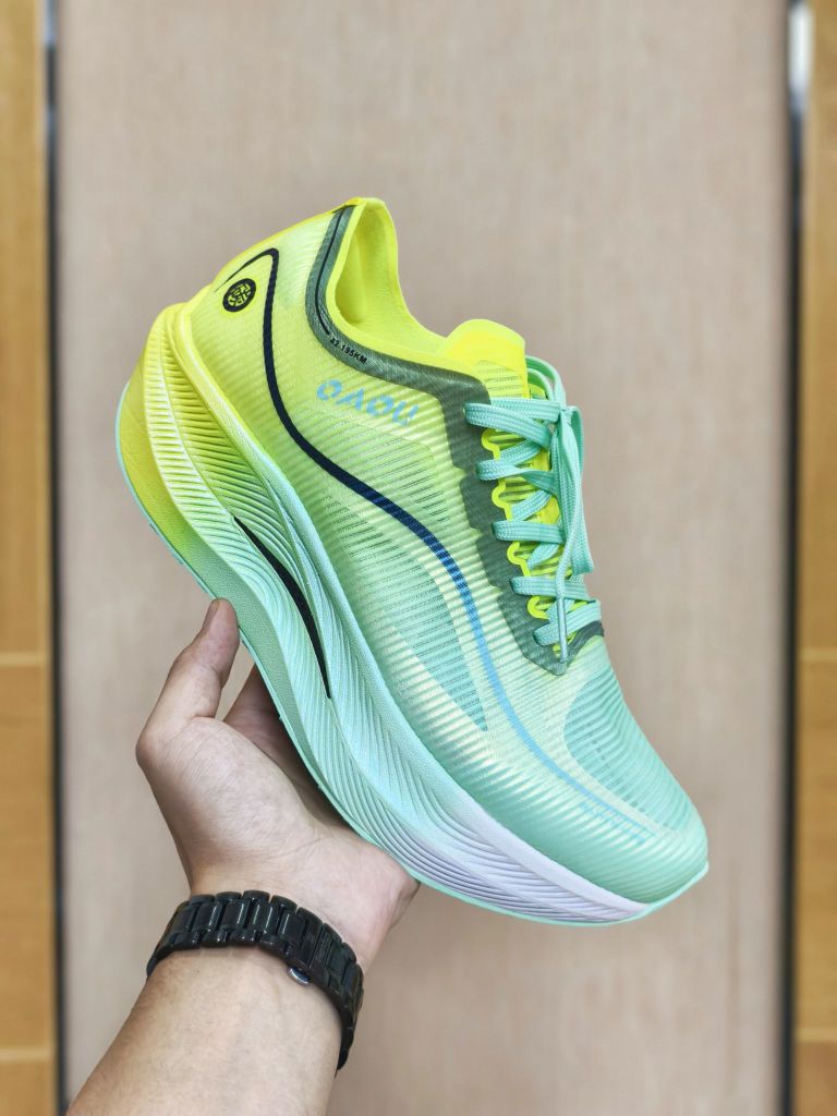 鞋底做的很炫酷~一眼心动 碳板底设计轻松开跑 织物网面夏天穿也不会热 脚感韧弹舒服 跑步不会hin费力~