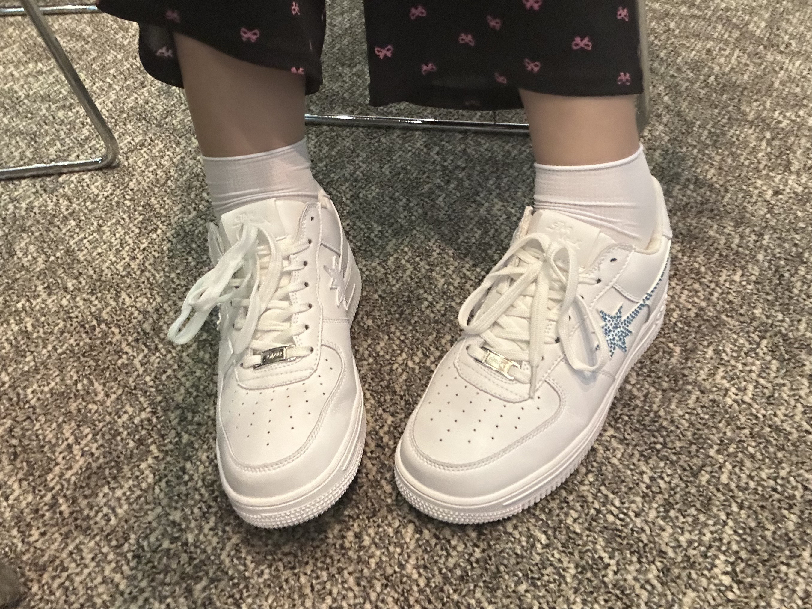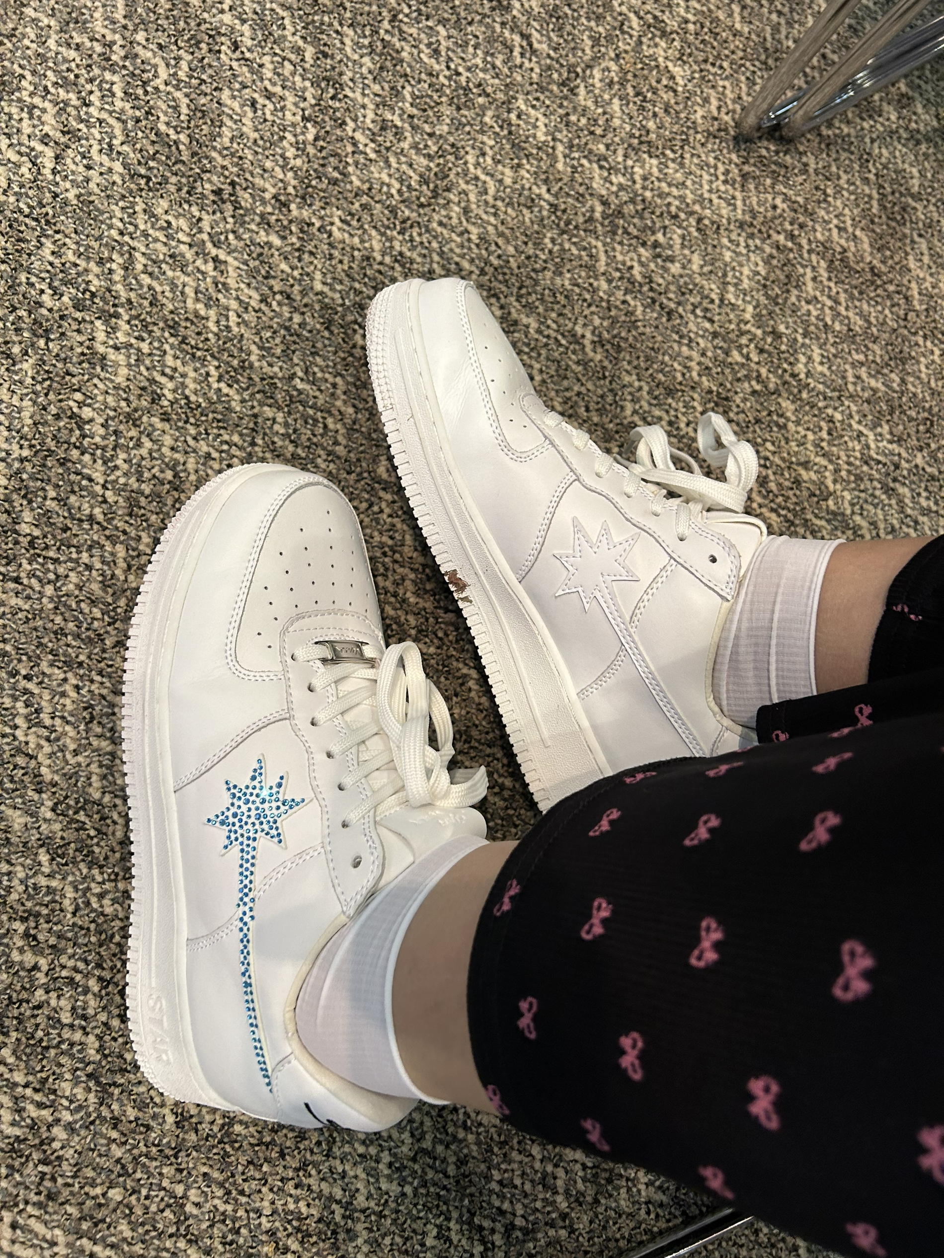闪闪的蓝钻 低调又时尚 整体白色很好搭配 属于中高帮的款式