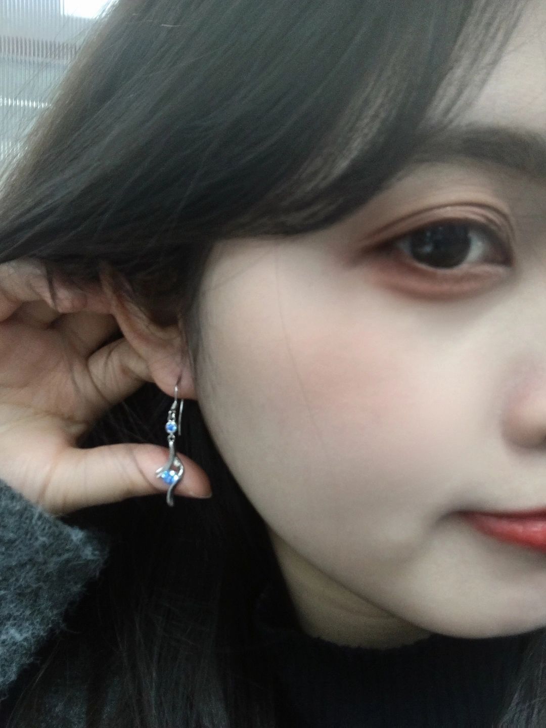 今天分享一款最近天天戴的耳环。 材质是纯银的,很适合我这种敏感耳,造型有点像一小片羽毛,中间镶了颗小蓝钻,很梦幻的感jio。 挂钩款的,不用担心会掉,穿戴很方便,一挂就可以了。重要的是很百搭,搭什么衣服看起来都很有质感,出门耳饰就它了。