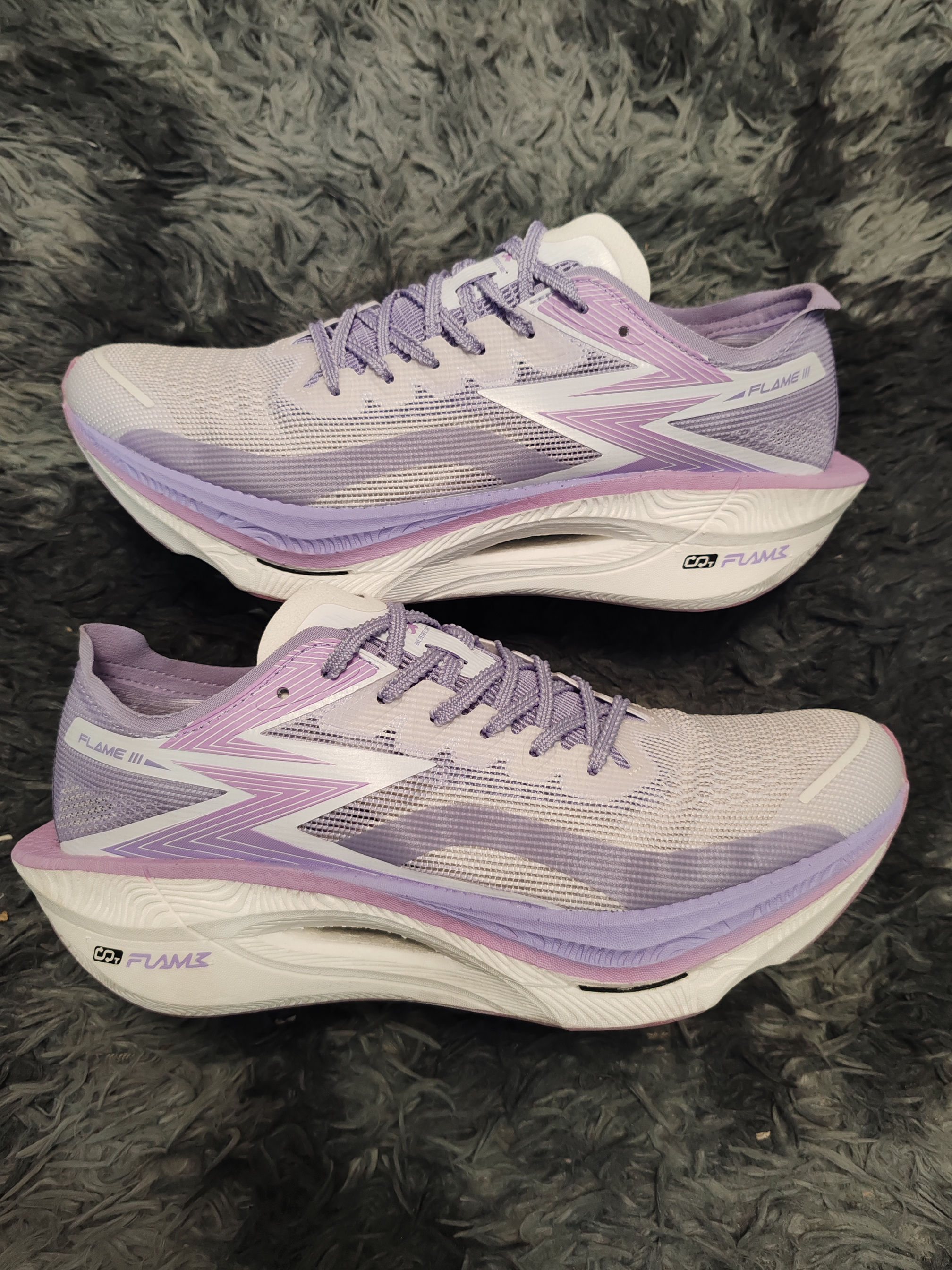 今日分享: 哈喽,大家好,这里是上进呀!今天给大家带来的是飞燃3!配置:中底超临界搭配一块碳板,脚感偏韧弹!上进认为这双鞋适合体测体考!目前价格偏高,这双鞋不适合入门的新手喔!