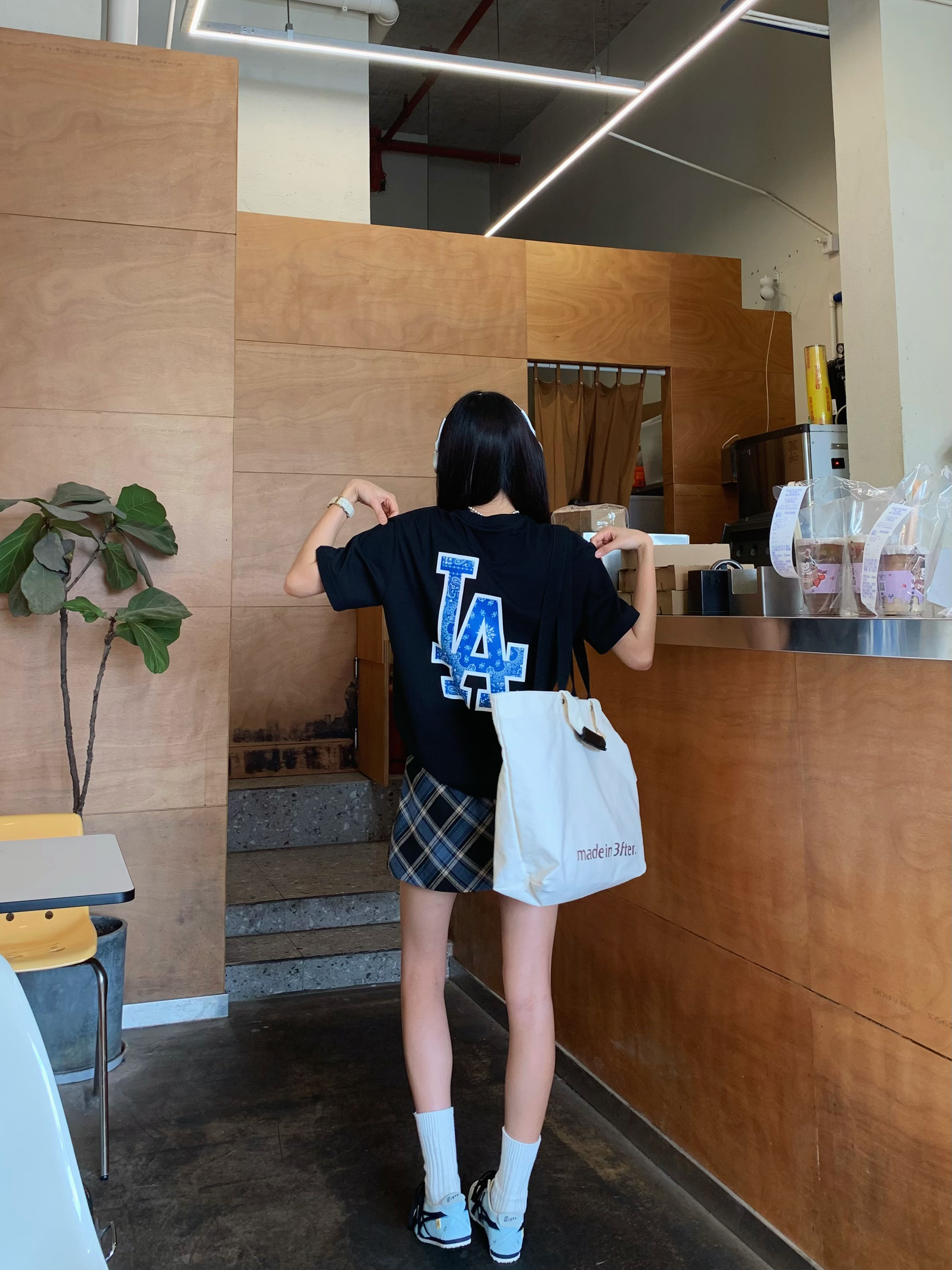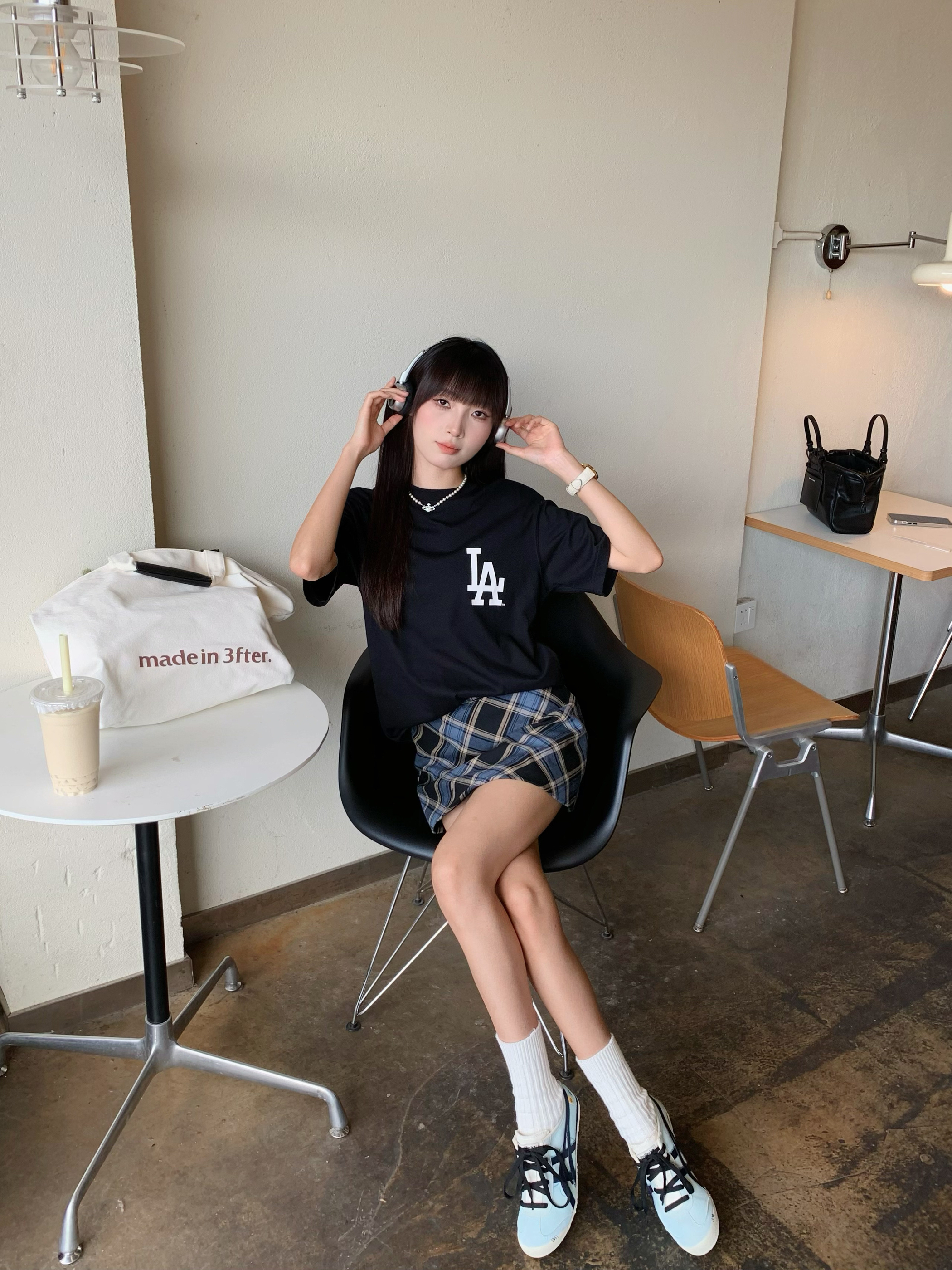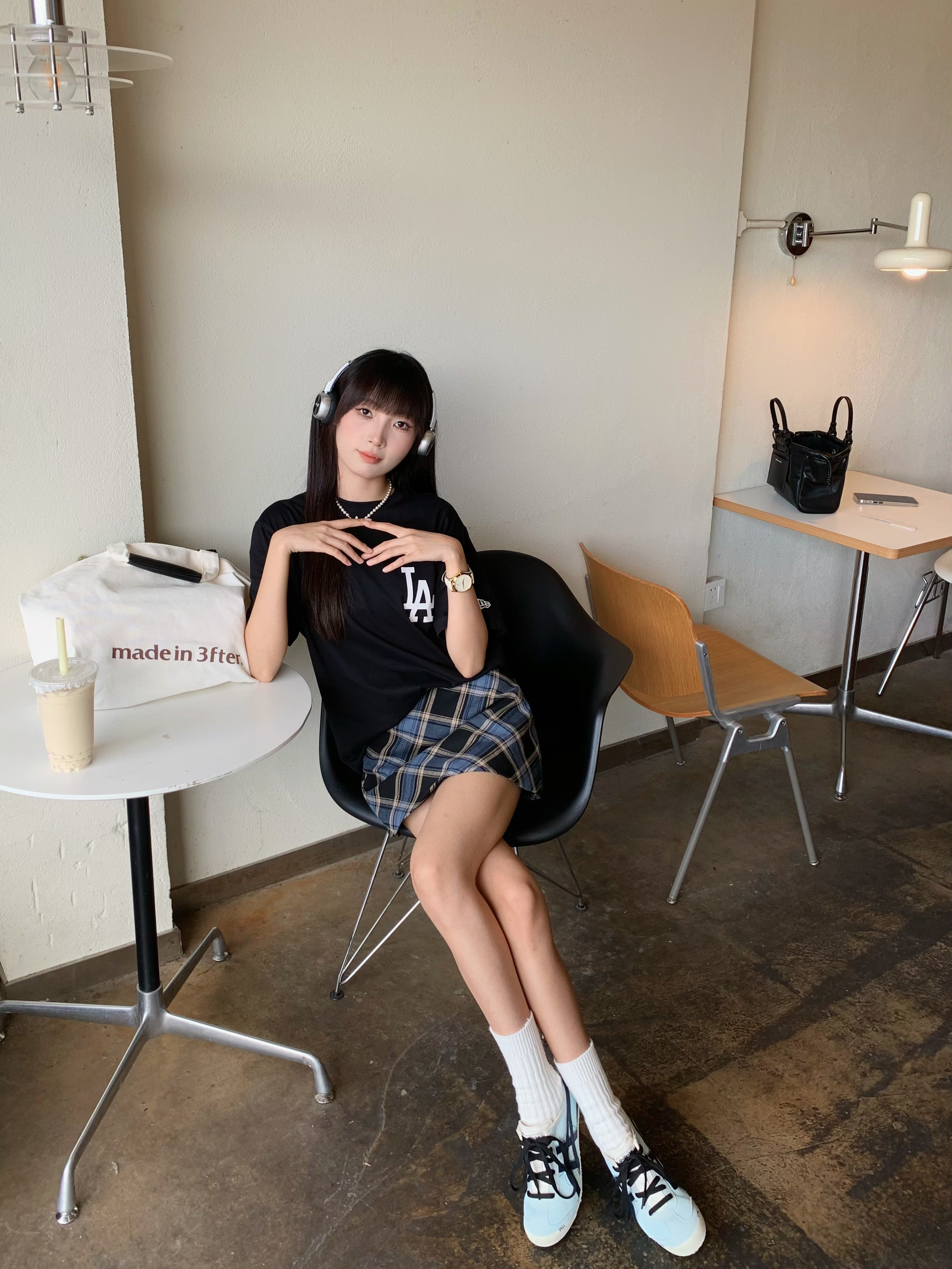 身高|体重: 🧍♂️ 穿搭风格:甜酷少女风 👔 上衣:MLB T恤 👖 下装:格子小短裙