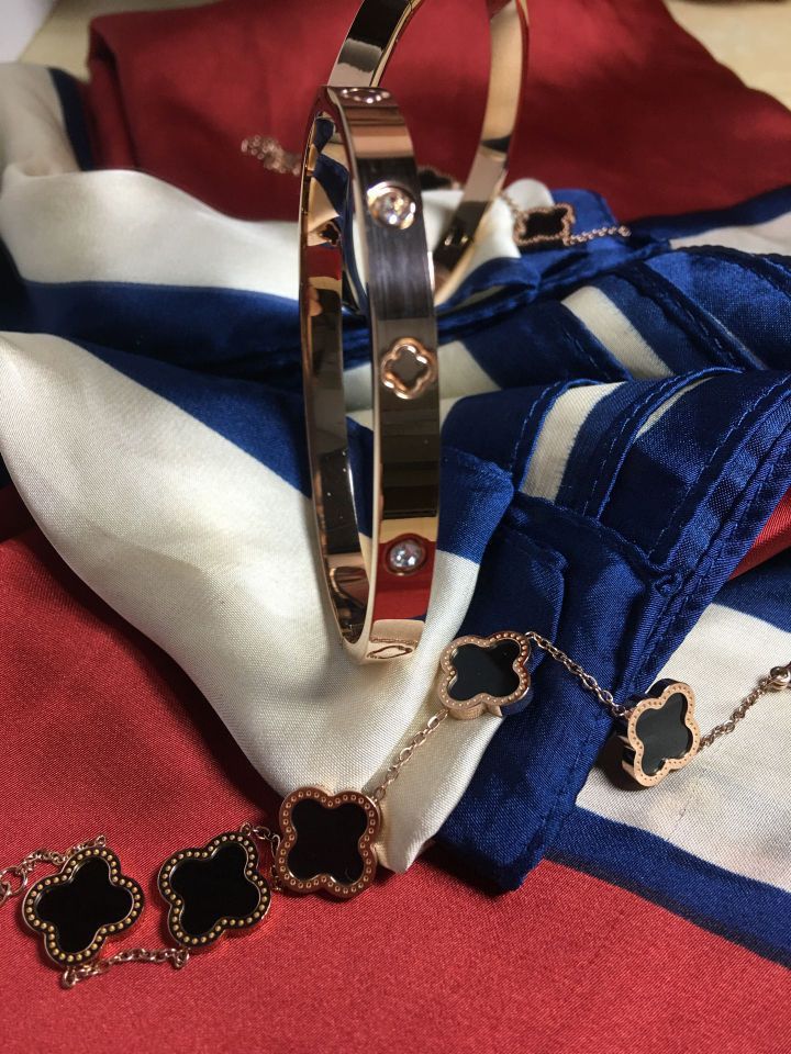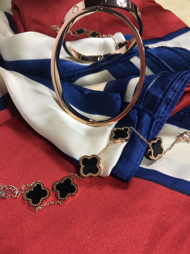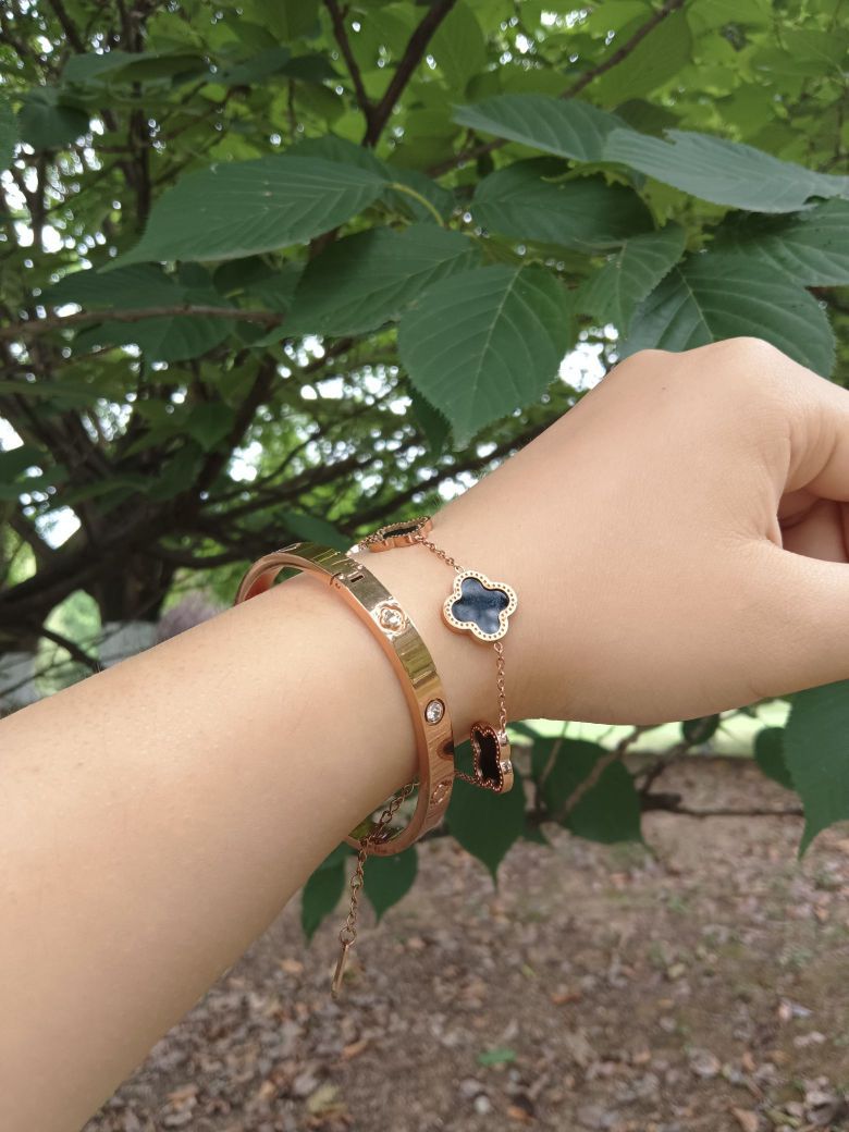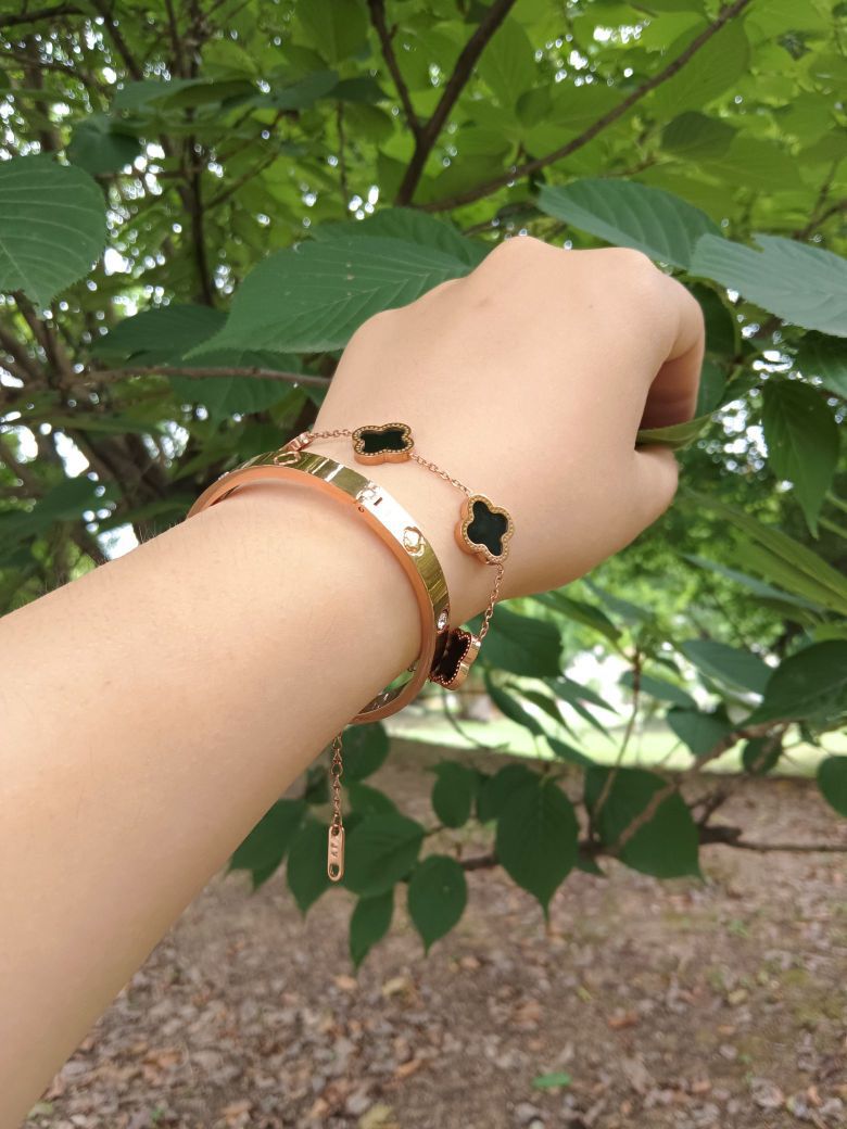 毕业季啦!! 大家又在苦恼送点什么好呢? 特别是相处了四年的室友们, 感情就是又爱又恨, 这个罗马假日手镯就很nice, 既有手镯又有手链,可以单戴也可以双戴, 关键是很配衣服, 四叶草🍀寓意着幸运,好运, 就祝愿我亲爱的室友们前途似锦, 带上好看的手镯有一个好的“钱” 途吧!