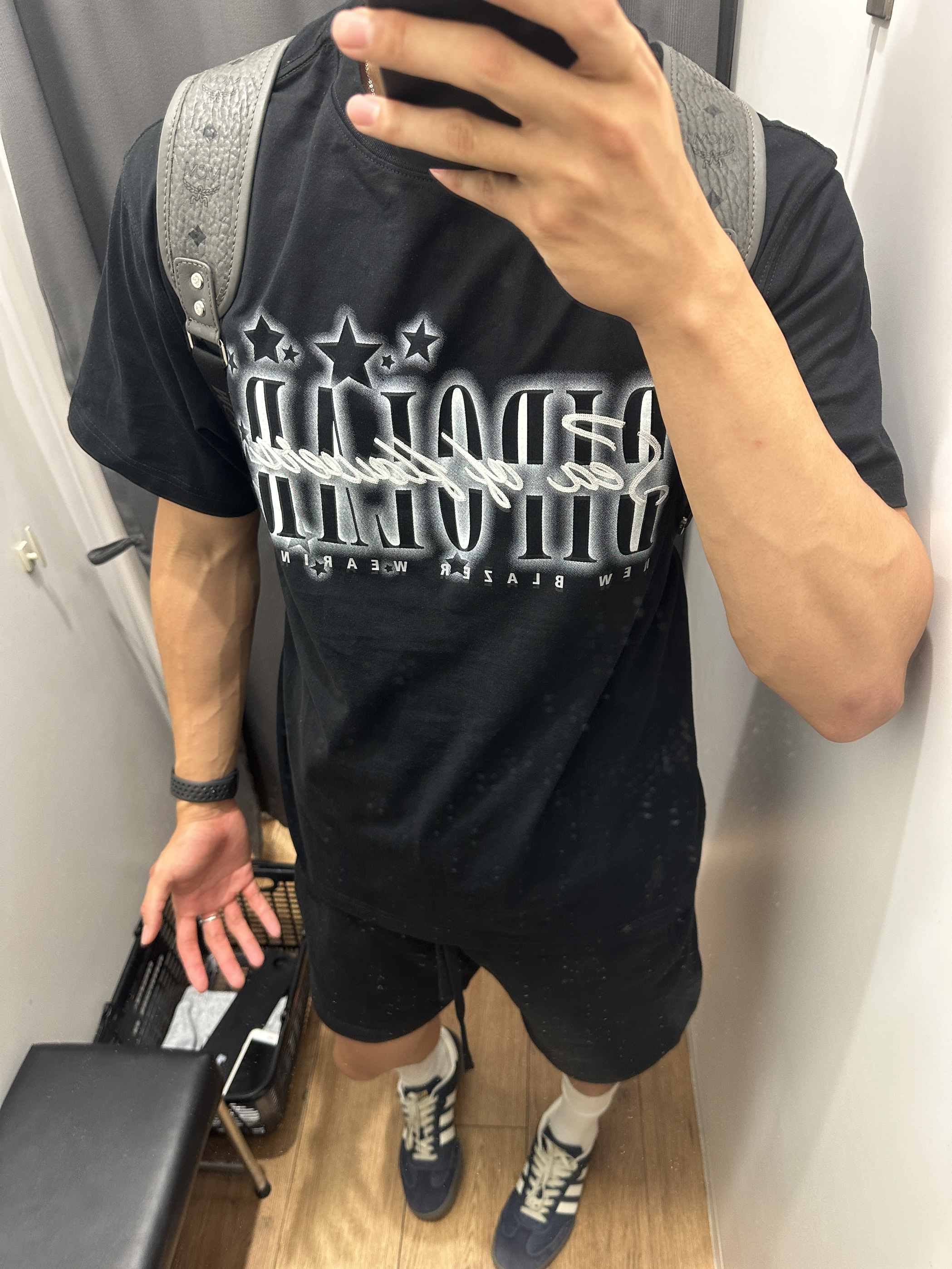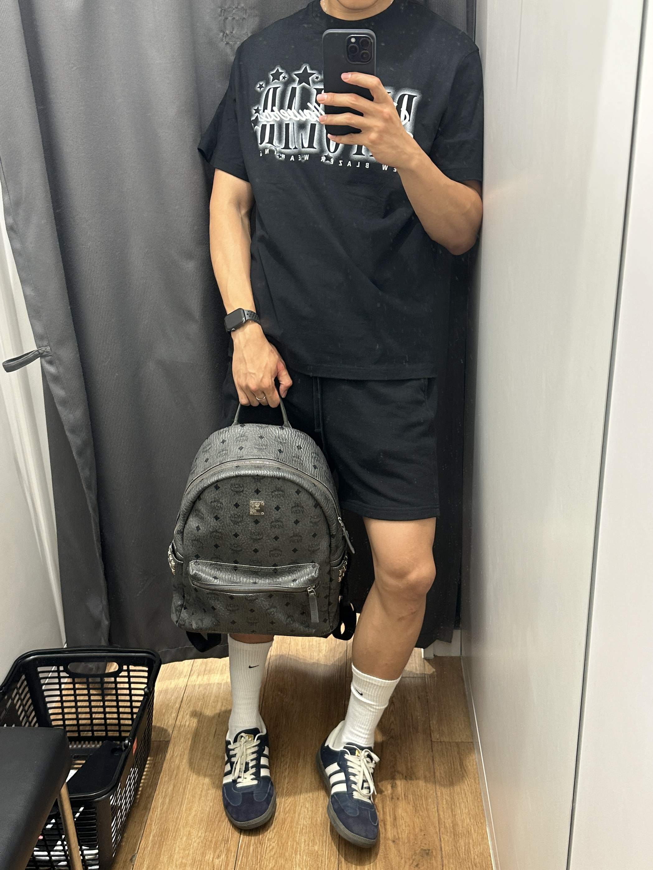 身高|体重:190/83kg 🧍♂️ 穿搭风格:美式潮流 👔 上衣:bipolar 👖 下装:重磅休闲短裤 👟 鞋子:samba 🎒配饰:mcm书包