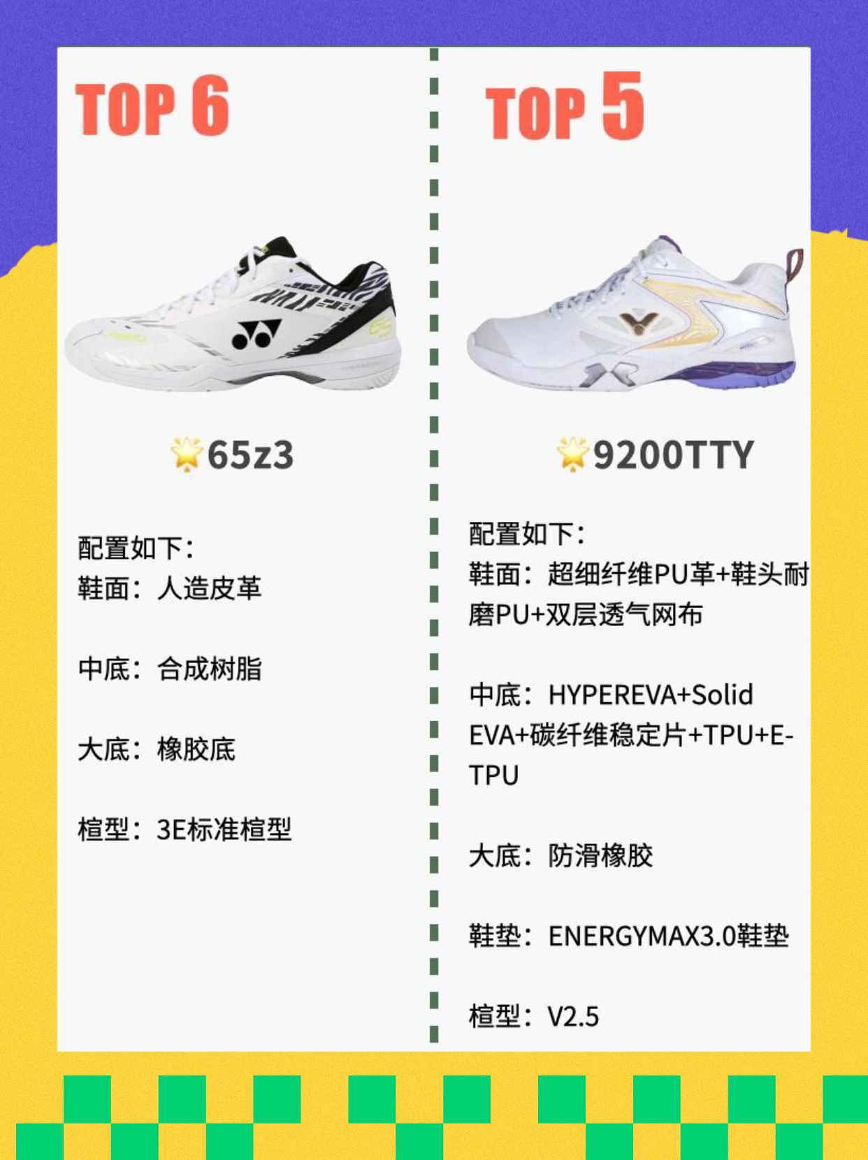 打羽毛球六年啦! 这一年里寻寻觅觅了好久好看又好穿的羽毛球鞋 入了退了好多双 下面给大家分享一下 比较多看颜值和$以及舒适度不喜勿喷 图源自博主郑大钱(九哥) 侵删