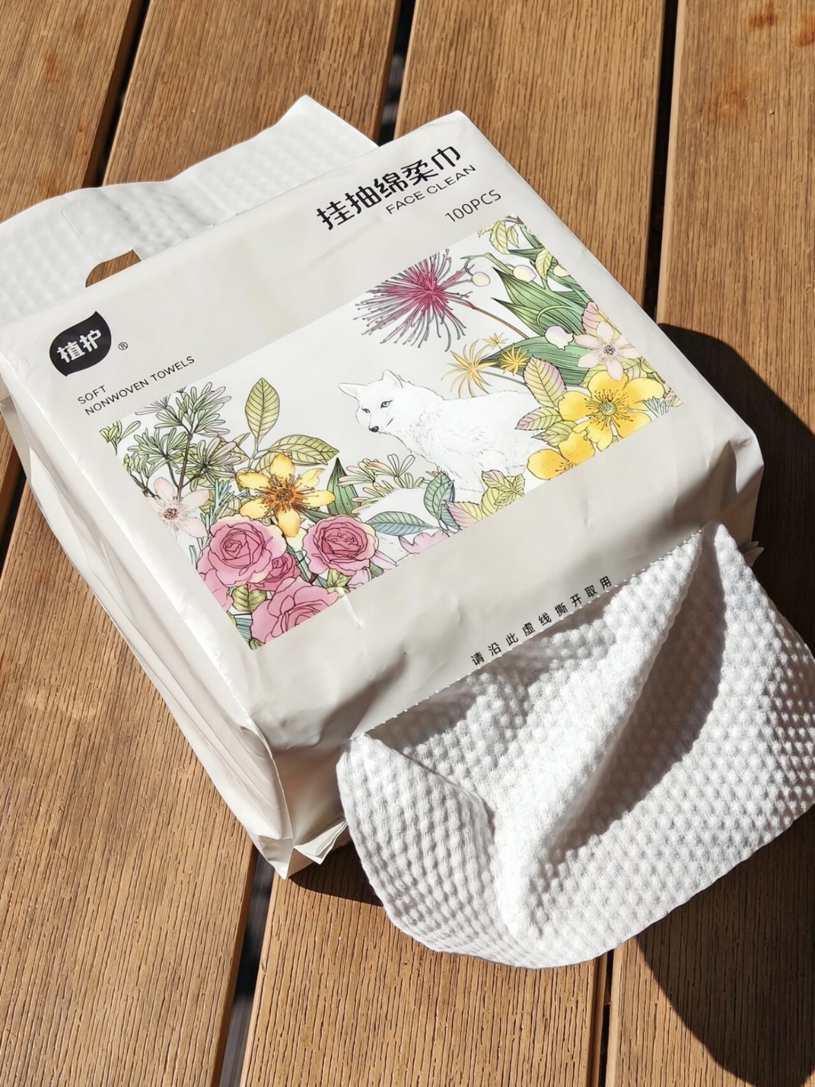 巨大巨好用巨便宜 miniso洗脸巾,包装设计超级精致,给我萌翻了! 悬挂抽取式设计,一抽一张真的很方便! 双面设计,一巾多效!! A 面珍珠纹🌟 立体珍珠纹,凹凸触感 可更好清洗涂抹式面膜 使用不打滑,洁面更出色 B 面丝滑面🌟 减少擦拭时的摩擦 亲肤细腻,避免皮肤泛红 💓采用植物纤维,不掉毛,不掉絮!!更加贴合皮肤! 都给我买!!