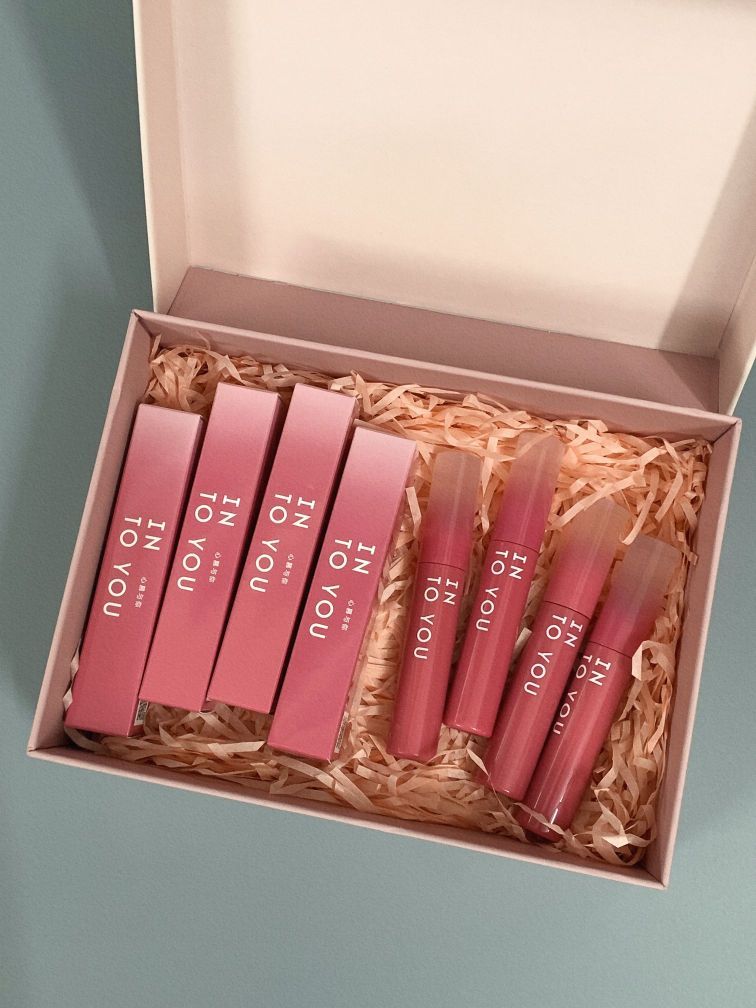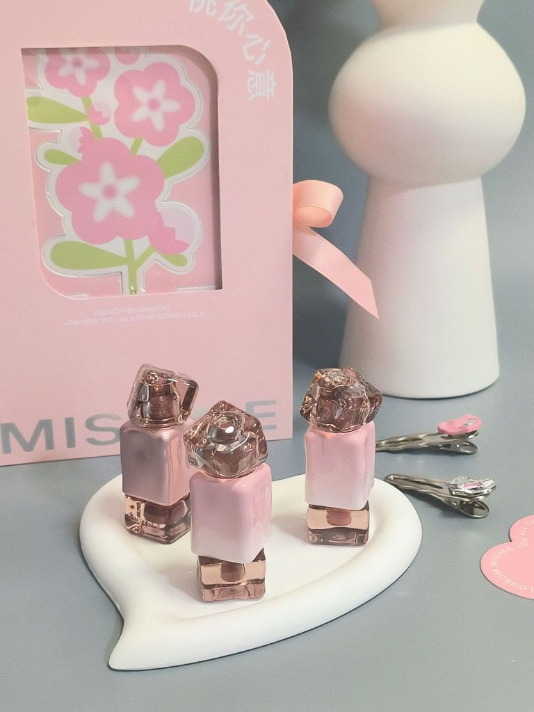 说到送女生礼物!我想它很不错 粉色礼盒搭配桃花,一整个公主的礼物 三只唇釉➕可爱发卡➕小镜子 唇釉壳子很特别,不规则的样子很有质感 每一个颜色都很沦陷,是日常随便涂都不出错的颜色 一整个巨实用 送女孩子盲选不错呢!